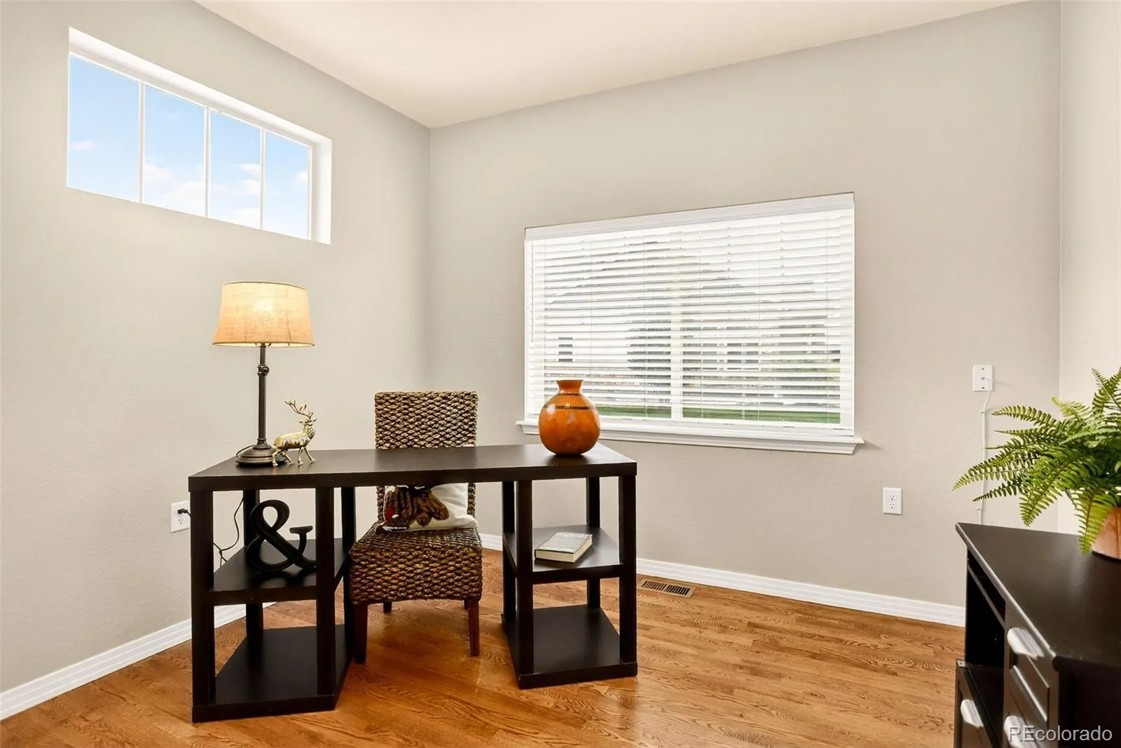Welcome to the wonderful Eastlake Lifestyle Community! This 2 bedroom unit is the largest floor plan offered in the community. It provides 2 bedrooms, 2 baths and an office with beautiful hardwood floors running throughout the main living areas. The corner unit setting has many large, beautiful windows making the interior bright. The location is ideal as it is looking out over a community park with a gazebo where you can meet your friends and take in the amazing landscaping, and trails leading to the clubhouse and pool. The open floor plan features a large living/family area connected to a dining room and all adjoining an open and nicely appointed kitchen with granite counters and stainless steel appliances. There is a steam humidifier system to keep the interior comfortable and a new Class 4 shingle roof to provide peace of mind on the exterior. The laundry and mud room are off the kitchen and have ZERO steps into the attached and oversized 2 car garage. Just a short walk away to the clubhouse, it ia easy to attend the many community events, or relax at the outdoor pool for Summer enjoyment.