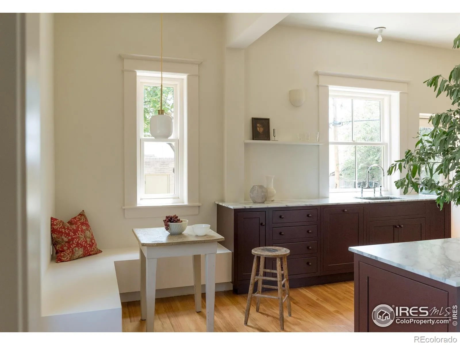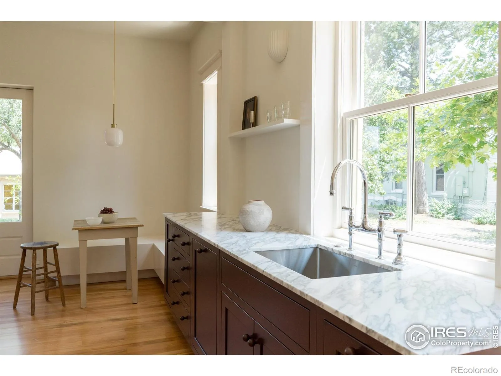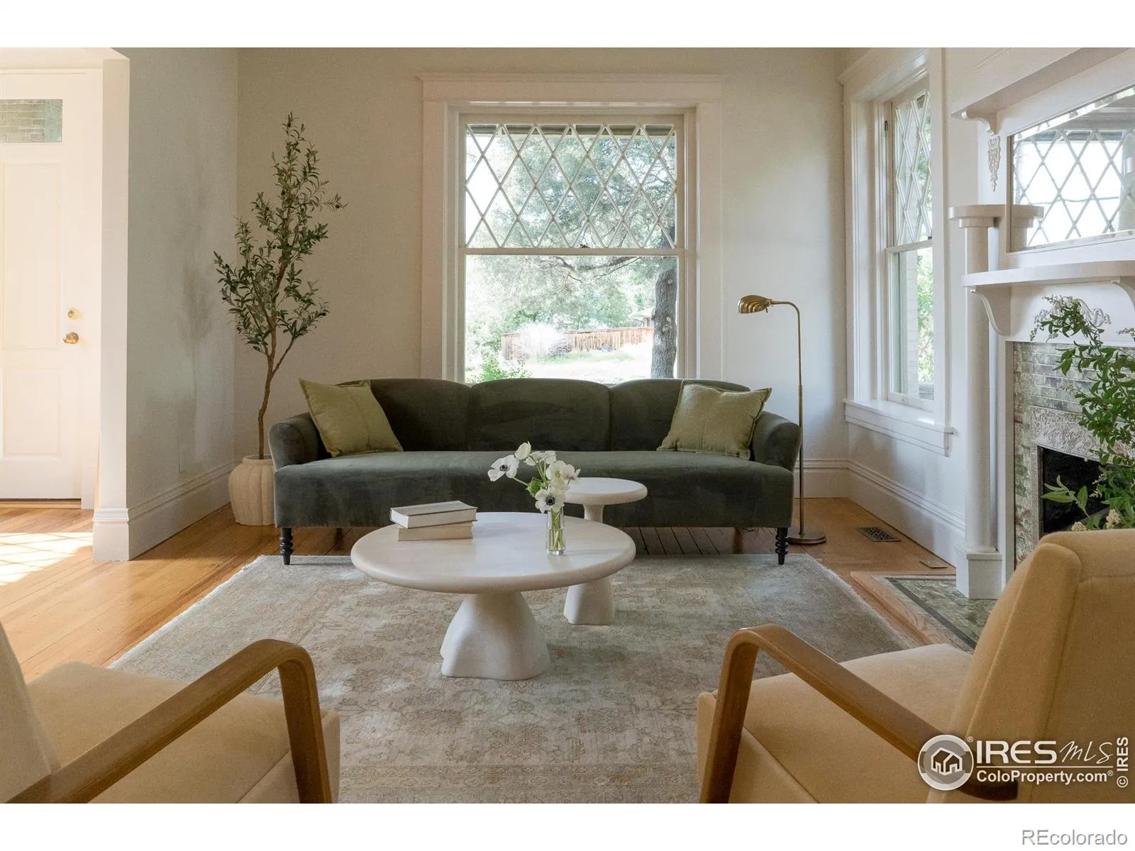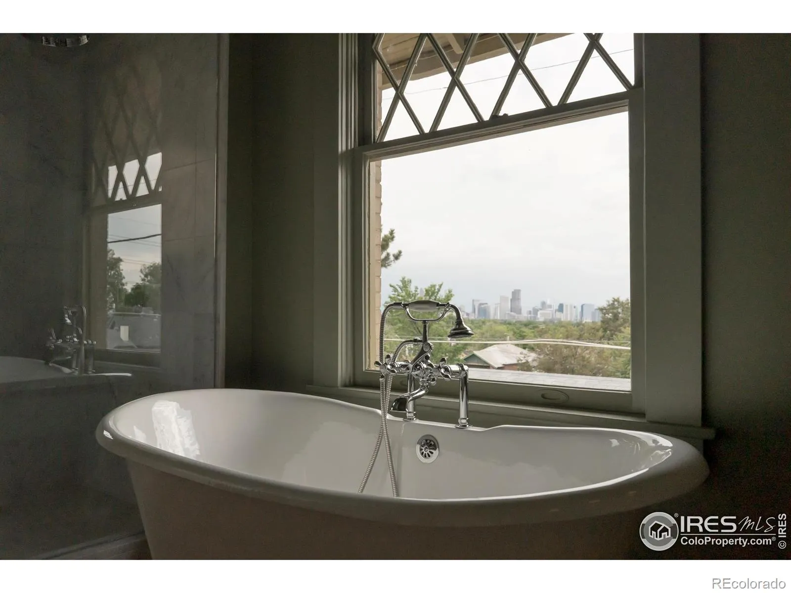 Perched at the top of the hill in the Clayton neighborhood, this historical brick home c.1898 has undergone a complete restoration, envisioned by nationally recognized interior design firm Larapin Design. The home sits on a large 7,810sf lot and is nestled amongst a variety of mature trees & shrubs including pine, maple, oak, apple, lilac, and Russian olive. With unobstructed exposure on all sides, natural light pours through to fill the interior, while sweeping views of downtown Denver and the Rocky Mountains can be enjoyed from the second floor. An extremely thoughtful approach went into the renovation, combining preservation of the original features with a fresh modern design. Historic features include diamond lite wood windows, tiled fireplaces (2), wood floors, woodwork throughout, high ceilings (9’10” first floor / 8’10” second floor), and a spectacular curved wood staircase at the entry. Updates to the home include all new electrical wiring, HVAC, and plumbing throughout. The kitchen was completely remodeled with new custom cabinetry, Calacatta marble counters & backsplash, new appliances and fixtures, Kolbe windows, and custom French doors that open to the expansive yard. Upstairs, the primary suite includes a secluded bedroom with new Kolbe windows, and a generous sized ensuite bathroom with walk-in marble tile shower, custom vanity with marble counter, and a clawfoot tub that sits perched at the west facing window. The laundry closet is conveniently located on the second floor hallway, central to the remaining three light filled bedrooms and shared updated bathroom. The unfinished yard offers endless landscape possibilities, with an abundance of space to create a private outdoor retreat for gardening and entertaining. The detached 2 car garage received a new roof and garage door. Centrally located in the heart of Denver, the lucky new owners of this home will enjoy restaurants, cafes, and breweries all within walking distance.