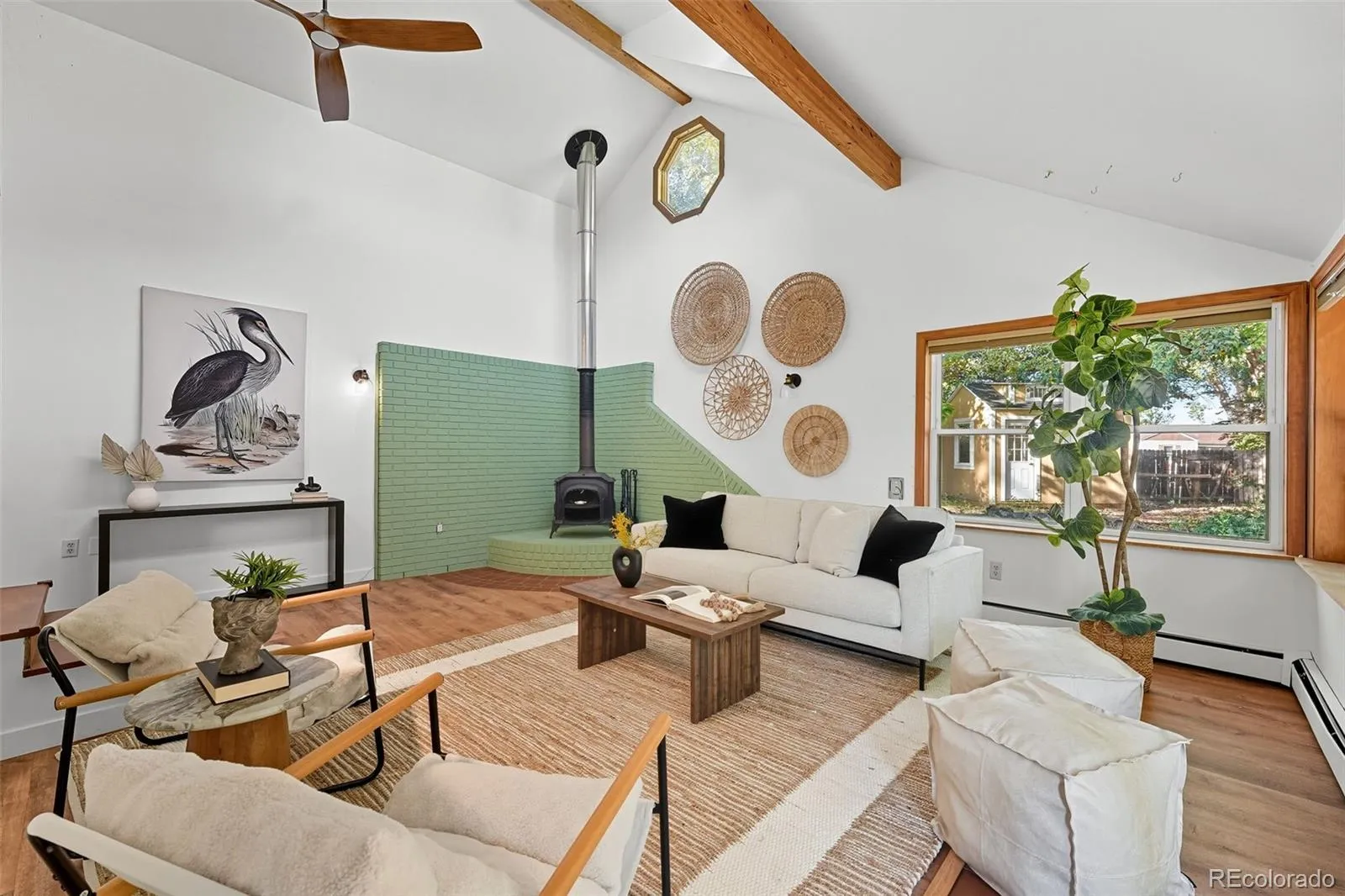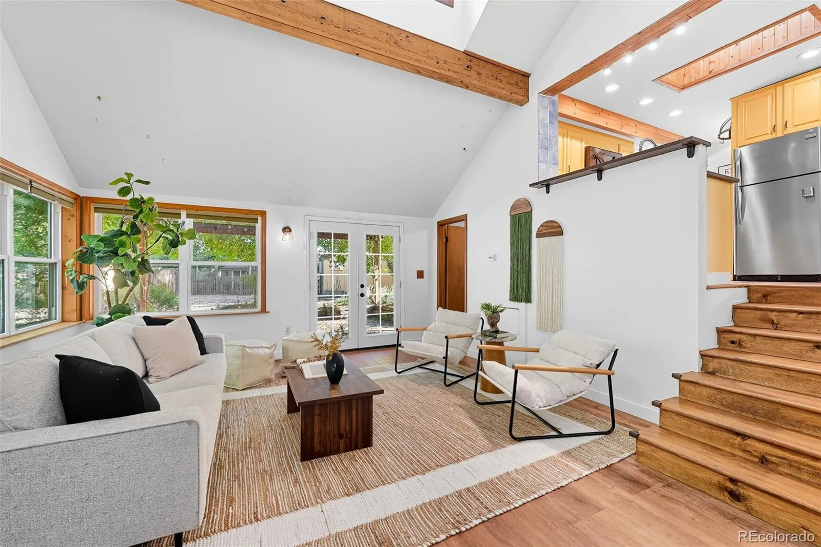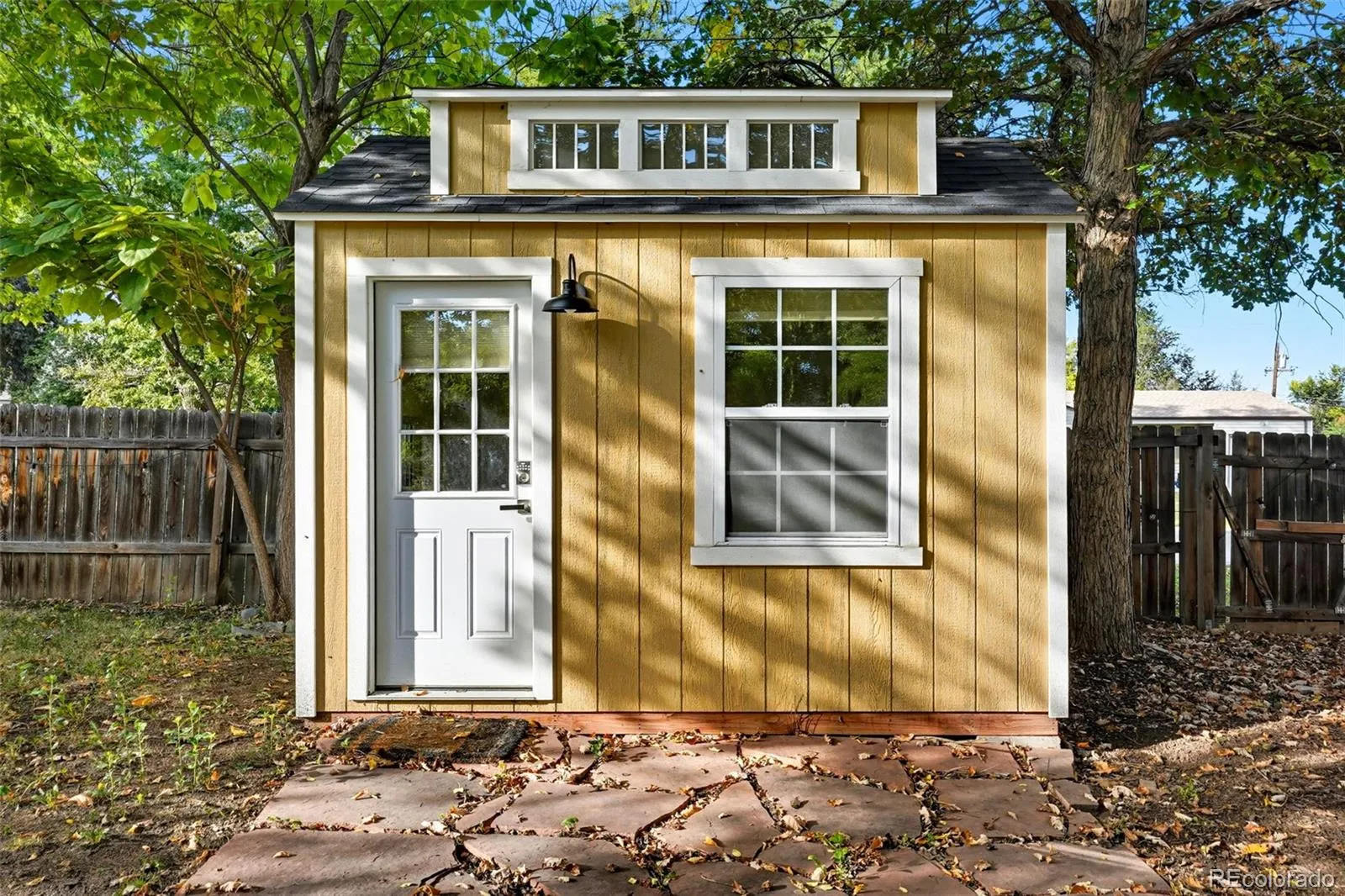 Farmhouse Charm Meets Modern Comfort in the Heart of Lakewood.This beautifully updated 3-bedroom, 3-bathroom home sits on a generous one-third acre lot, offering privacy, character, and over $100,000 in thoughtful upgrades. Nestled in central Lakewood, the property blends rustic farmhouse warmth with modern design and functionality, making it truly move-in ready. Inside, you’ll find a remodeled kitchen with new countertops, sink, and expanded counter space—enhanced by skylights that fill the room with natural light. The sunken living room features vaulted ceilings, multiple skylights, and a cozy wood stove, creating a space that feels both airy and intimate. French doors extend the living room outdoors to a pergola-covered deck, shaded by a decades-old trumpet vine that bursts with vibrant color every summer and fall. The private primary bedroom includes expanded closets, while the fully finished basement now offers a third bathroom, egress window, and versatile living space. Updates throughout include new flooring across the entire home. Outdoors, the property is designed for both relaxation and recreation. A fully landscaped yard includes raised garden beds (12 in total), a chicken coop, and a luxurious sauna. A powered outbuilding with heating, cooling, and electrical makes the perfect home office, studio, or flex space, while an additional shed adds extra storage. Conveniently located just steps from the W Light Rail, this property offers easy access to Belmar’s shopping and dining, downtown Denver, Golden, and the Colorado mountains. It’s a rare opportunity to enjoy peaceful, private living while staying close to the best of the city and the outdoors.