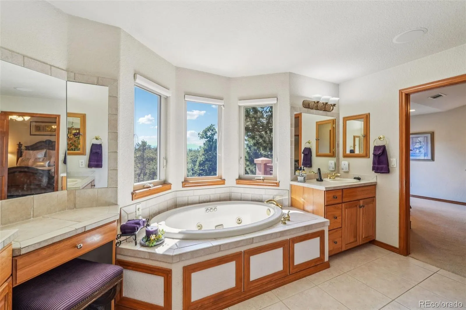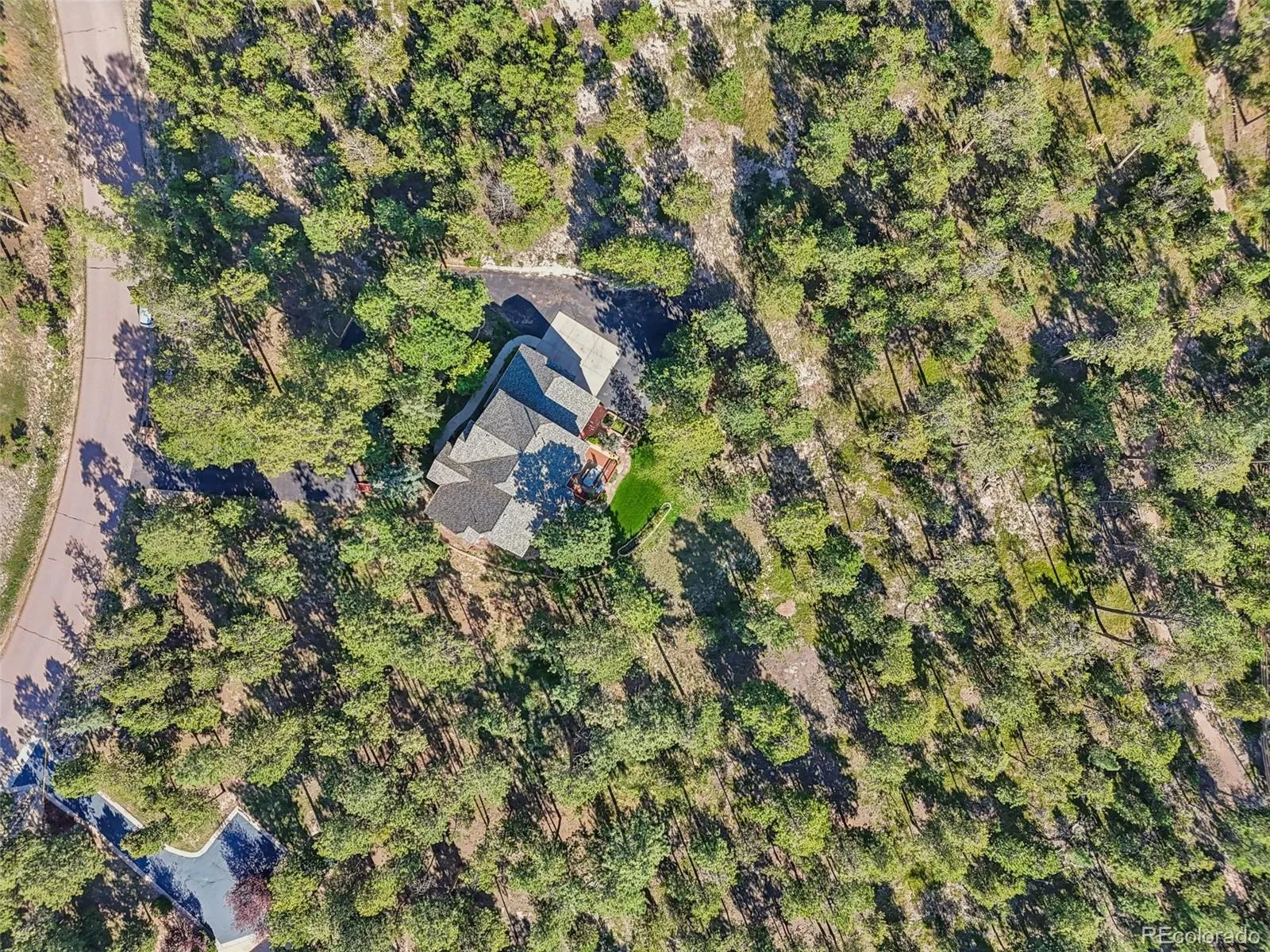 This Custom-Built Equity Home is nestled on 2.5 heavily treed acres in the sought-after Higby Estates community. This stunning home offers over 4,500 sq. ft. of living space in a private and peaceful setting. Backing to the area trail system with a walking trail bordering the property, it provides direct access to nature while remaining just minutes from town. Enjoy mountain views and views of Pikes Peak from multiple vantage points, including a private deck off the primary suite. Inside, the home features 5 bedrooms and 5 baths. Rich natural oak hardwood floors flow throughout the main level, complemented by two fireplaces that create warmth and character. The gourmet kitchen showcases pecan cabinetry, granite tile counters, double ovens, a tile backsplash, and a butler’s pantry. A spacious laundry room and mudroom add convenience. Private dining room, A grand staircase, and a main-level office with hardwood flooring, a wine cellar, and ample storage. The walk-out basement is designed for entertaining with a wet bar, wine cellar, and includes 7’ pool table. Including two garden-level basement bedrooms, each with walk-in closets. Thoughtful details include a second furnace for the upper level, central A/C, water filtration system, and natural gas heating and stucco exterior. Outdoors, beautiful landscaping, a covered front porch, a private deck off the primary, two ponds (seasonally maintained), a 3-car garage, and an additional shed. A well and septic serve the property with two leach fields. This home combines craftsmanship, comfort, and Colorado living at its best.