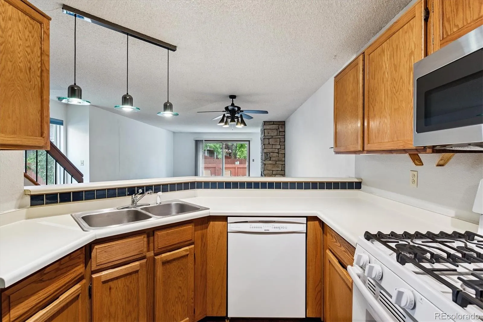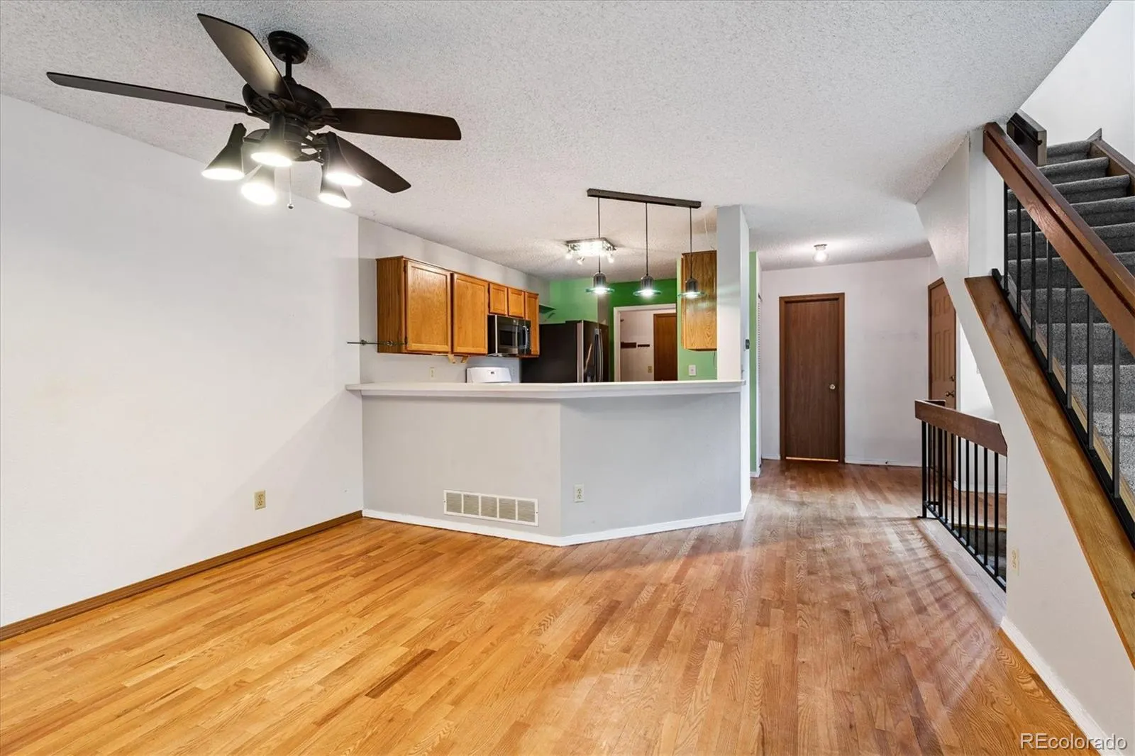 Rarely available end unit townhome in the desirable Windsong Community, featuring one of the largest floor plans and a 2 car attached garage l Backing to a tranquil greenbelt and within close proximity to the Highline Canal, Cherry Creek bike path, Cook Park & Garland Park l This 2 bedroom 2.5 bathroom home boasts over 1500 SF of finished living space that is flooded with natural light and is situated in an unbeatable location within the Cherry Creek School District l Thoughtfully designed for both comfort & functionality, with a clear separation between living & sleeping spaces l The main level is dedicated to daily living and entertaining, with its open floor concept that seamlessly connects the kitchen, dining area, and spacious living room l Ideal for lounging by the gas log fireplace, gatherings, or enjoying the indoor/outdoor flow to your private patio l A powder room and laundry room completes the main floor l Upstairs, the two generously sized en-suite bedrooms create a peaceful retreat, each with vaulted ceilings, skylights, and ample closet space – perfectly suited for restful privacy away from the main living areas l The primary suite has been thoughtfully updated with a remodeled bathroom featuring dual sinks, quartz countertops, walk-in shower, and modern brushed stainless fixtures l The lower level offers incredible potential with a head start: egress window, rough-in plumbing for a full bath and partial drywall provide an easy path to increase finished square footage and your homes value l Enjoy peace of mind with copper plumbing and updated mechanical systems, including newer furnace and A/C l Roof is approx. 9 years old l Newer Refrigerator & Garage Door l Energy-efficient features include newer double pane windows & Nest thermostat l Private fenced patio backs greenbelt & is a short walk to pools and tennis courts l HOA covers exterior maintenance, water/sewer, lawn care, snow removal, trash, clubhouses, tennis courts & pools