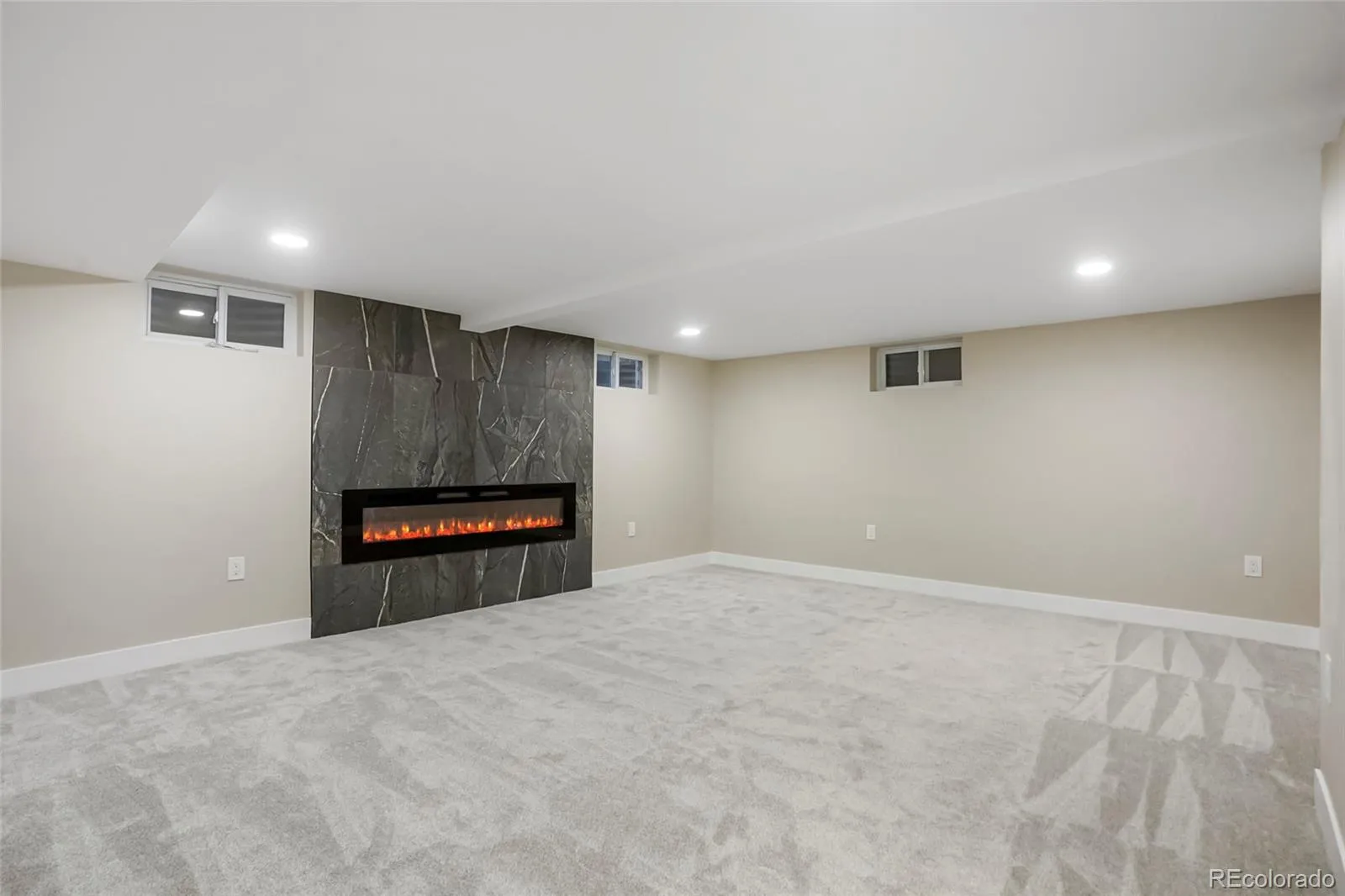 Two modern linear fireplaces for cozy ambiance