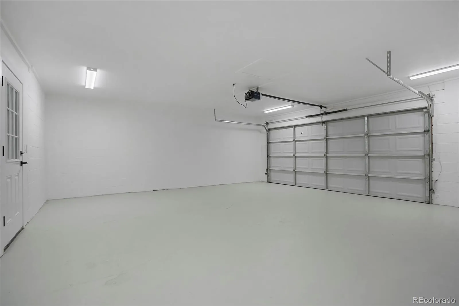 Detached finished garage with EV plug-in and pristine epoxied floor