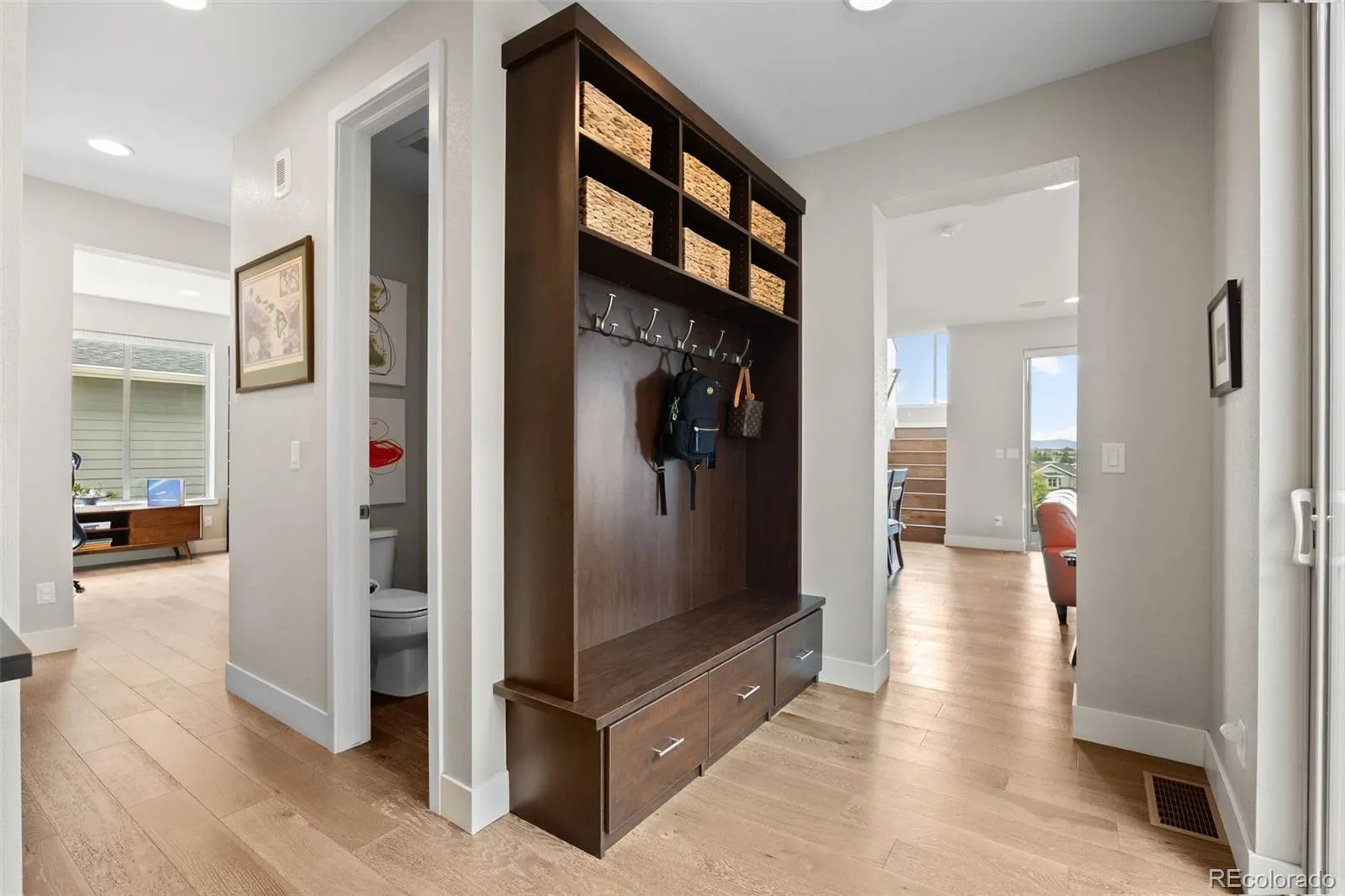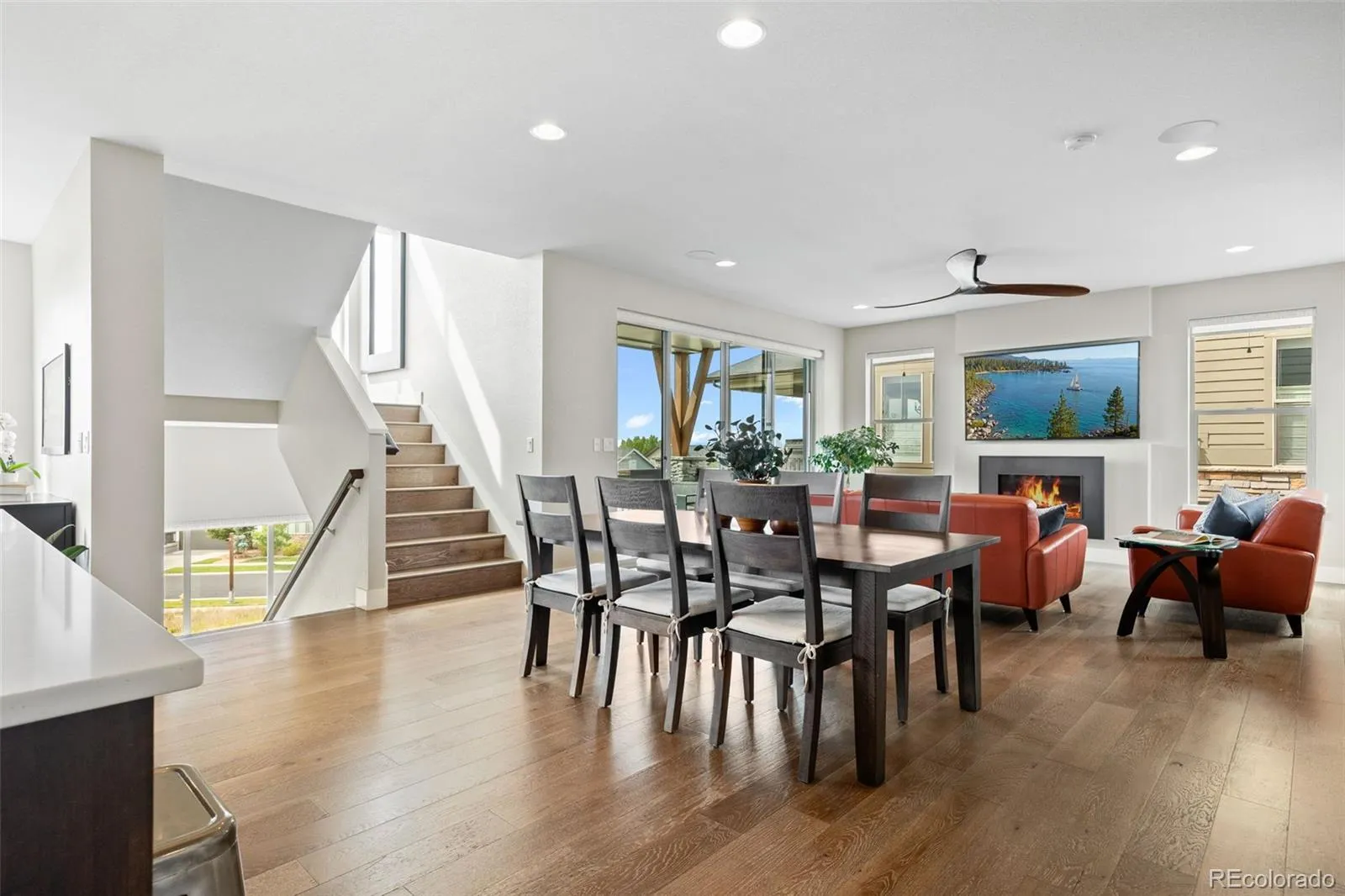 This amazing home sits high above it all with commanding, unobstructed mountain views. Truly a best-in-class property and location. Finished walk-out basement backing to greenbelt. Premium home, lot and builder. This home is in a small enclave of high-end Brookfield Residential homes. Not your run-of-the-mill architecture and “builder grade” feel. Super stylish modern farmhouse look. Over $110k in builder upgrades. Perfectly maintained and shows like new. The interior features an open, modern design. Engineered wood floors throughout the main level, open staircase, loft and upstairs hallway. $40k in flooring upgrades. Superb Kitchen featuring oversize island, quality stainless appliances, gas range with range hood, upgraded cabinets, counters and fixtures. Soft close hardware. Pantry closet. The kitchen is flooded with light, and is open to the sitting area and living room. The living room features a gas fireplace, and oversized sliding door with fantastic views. The 3 story, open staircase is amazing; providing light, mountain views, and an open feel unmatched by typical designs. Wood stairs throughout. Fantastic primary suite with tons of light and mountain views. The bath features a huge double shower, upgraded tile and fixtures throughout. Walk-in closet with built-in organizers. The upstairs also features an oversized loft, with mountain views. Upstairs laundry. The basement was finished by the builder. High ceilings, tons of light. Excellent multi-gen space. Bedroom and 3/4 bath. Wonderful outdoor spaces: Covered front porch, covered deck with amazing views, second deck on the side of the home (with plumbed gas BBQ), and covered patio off the walk-out basement. High efficiency HVAC and tankless water heater. Steam humidifier. Solar system is included. Exterior paint 2024. Too many features to list. Perched up high, with endless sky, mountains and breathtaking sunsets. It all comes together in this amazing home.