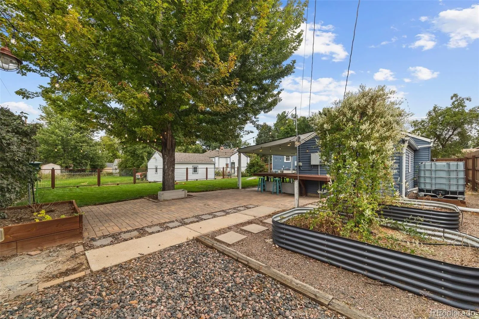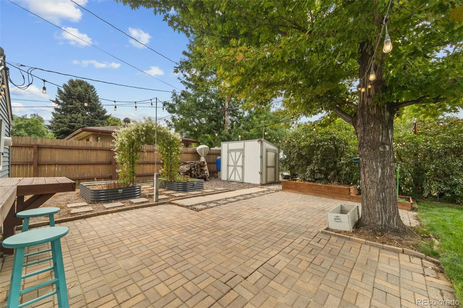 The true highlights of this home embrace Colorado’s outdoor lifestyle: a backyard designed for entertaining with a covered patio, bar area, raised garden beds, and a storage shed. For those who need extra space, the oversized three-car garage is a dream, with a third bay in back that can flex as a workshop, home gym, or creative studio.