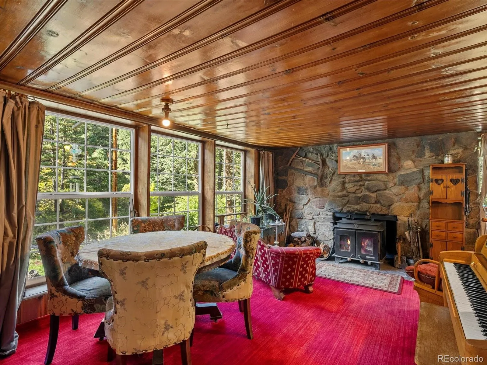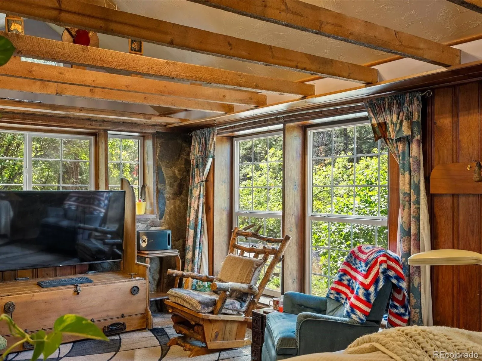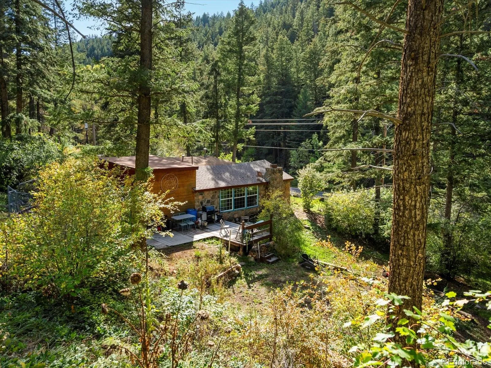 A Mountain to yourself! Charming mountain retreat on Deer Creek Rd. Set on over 28 private acres of wooded beauty, surrounded on 2 sides by open space, this home combines peace, privacy, and breathtaking views with the convenience of being just minutes from town. The open floor plan is filled with natural light from expansive windows that frame the surrounding landscape. A cozy fireplace anchors the main living space, while the open kitchen is perfect for gatherings and everyday living.