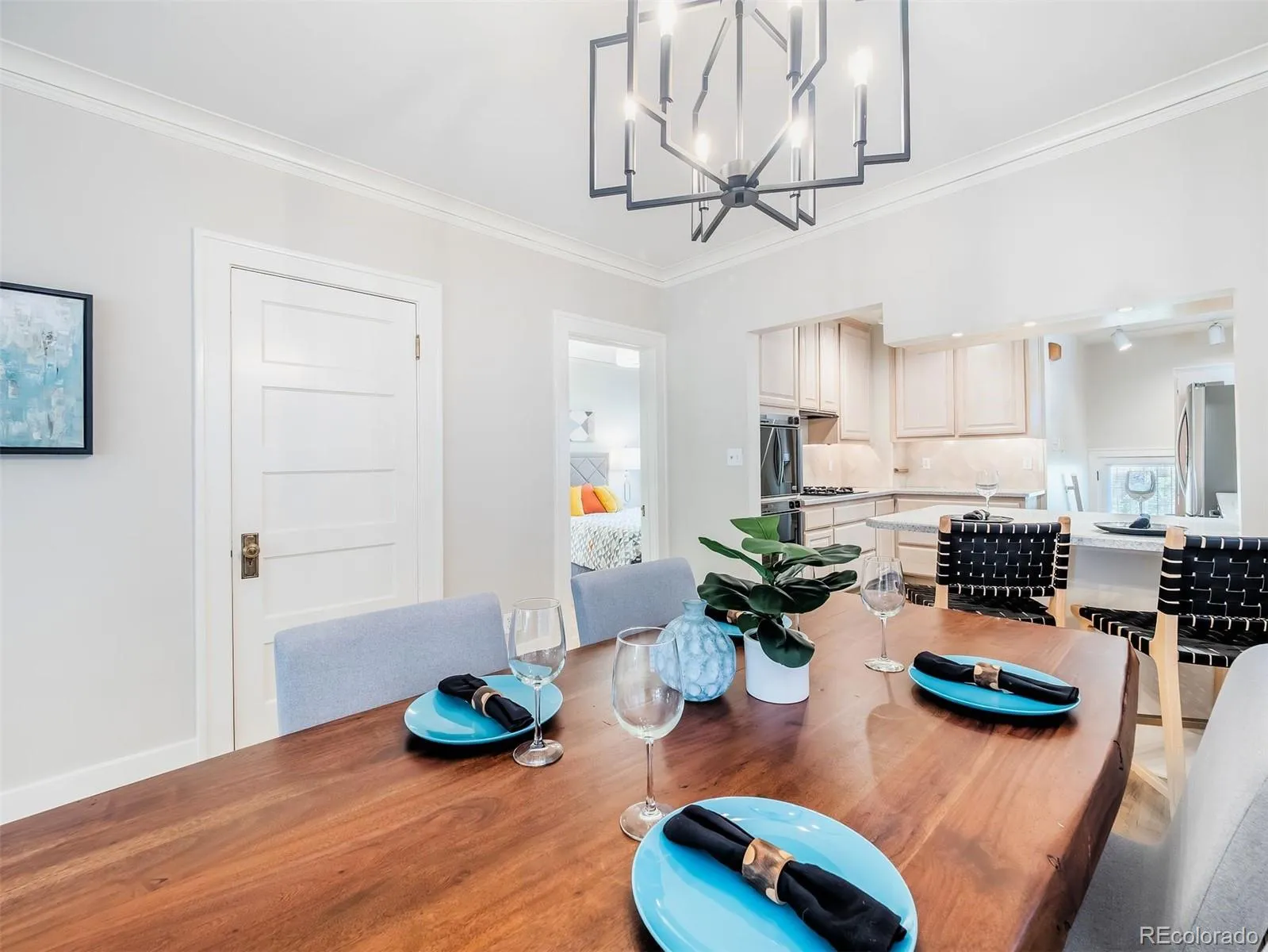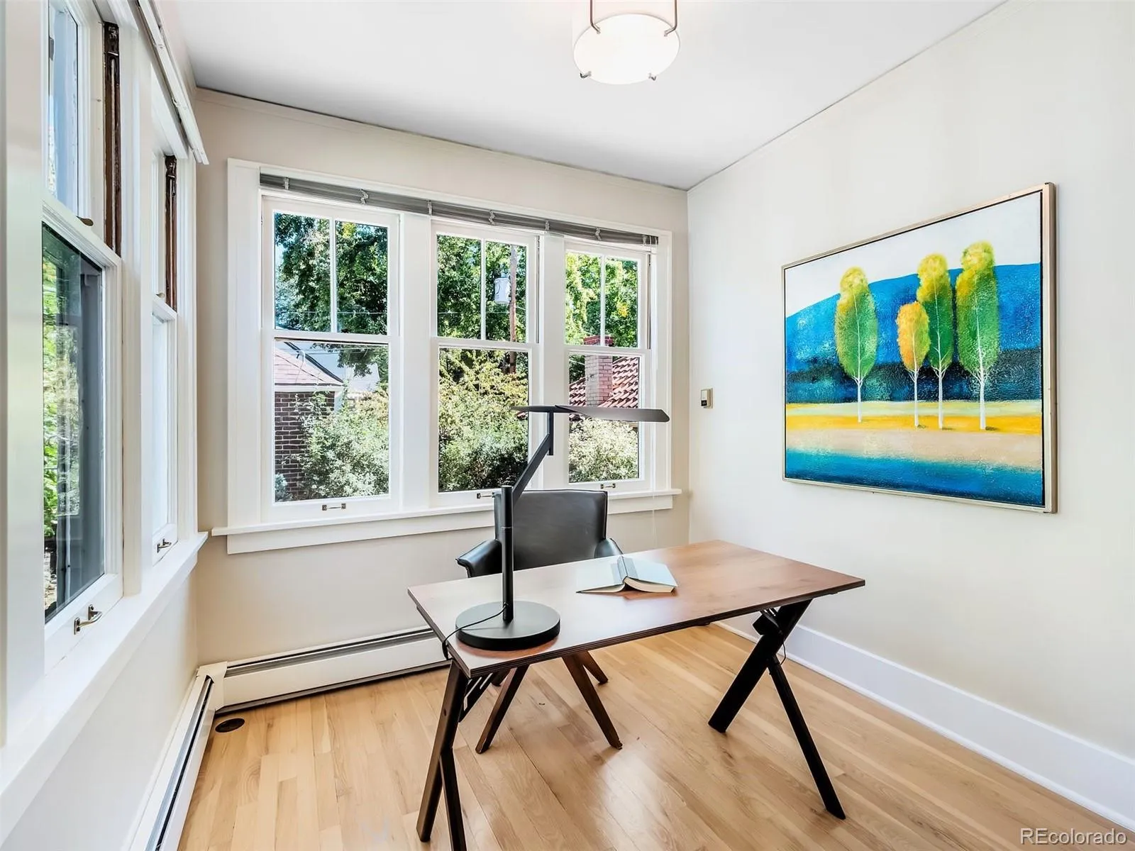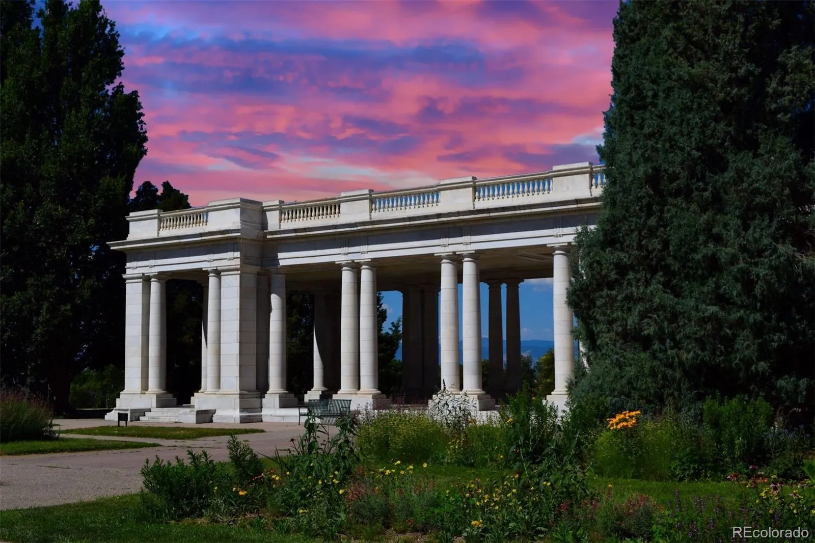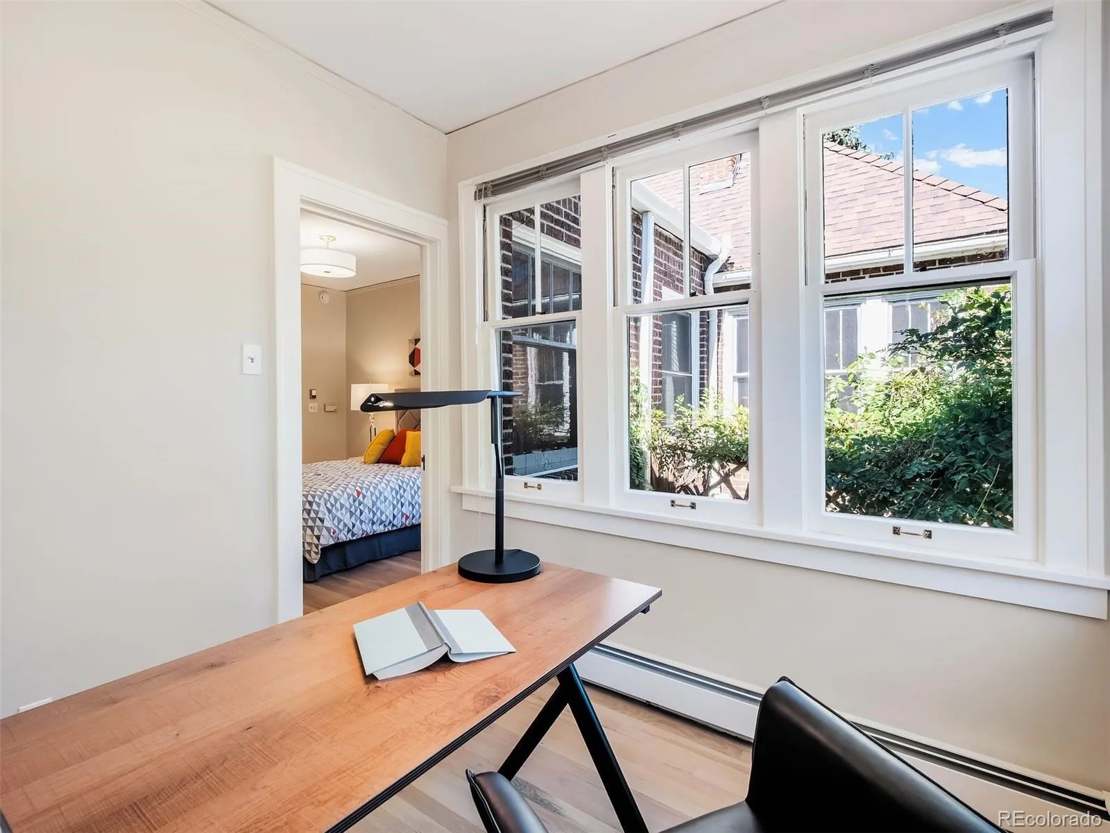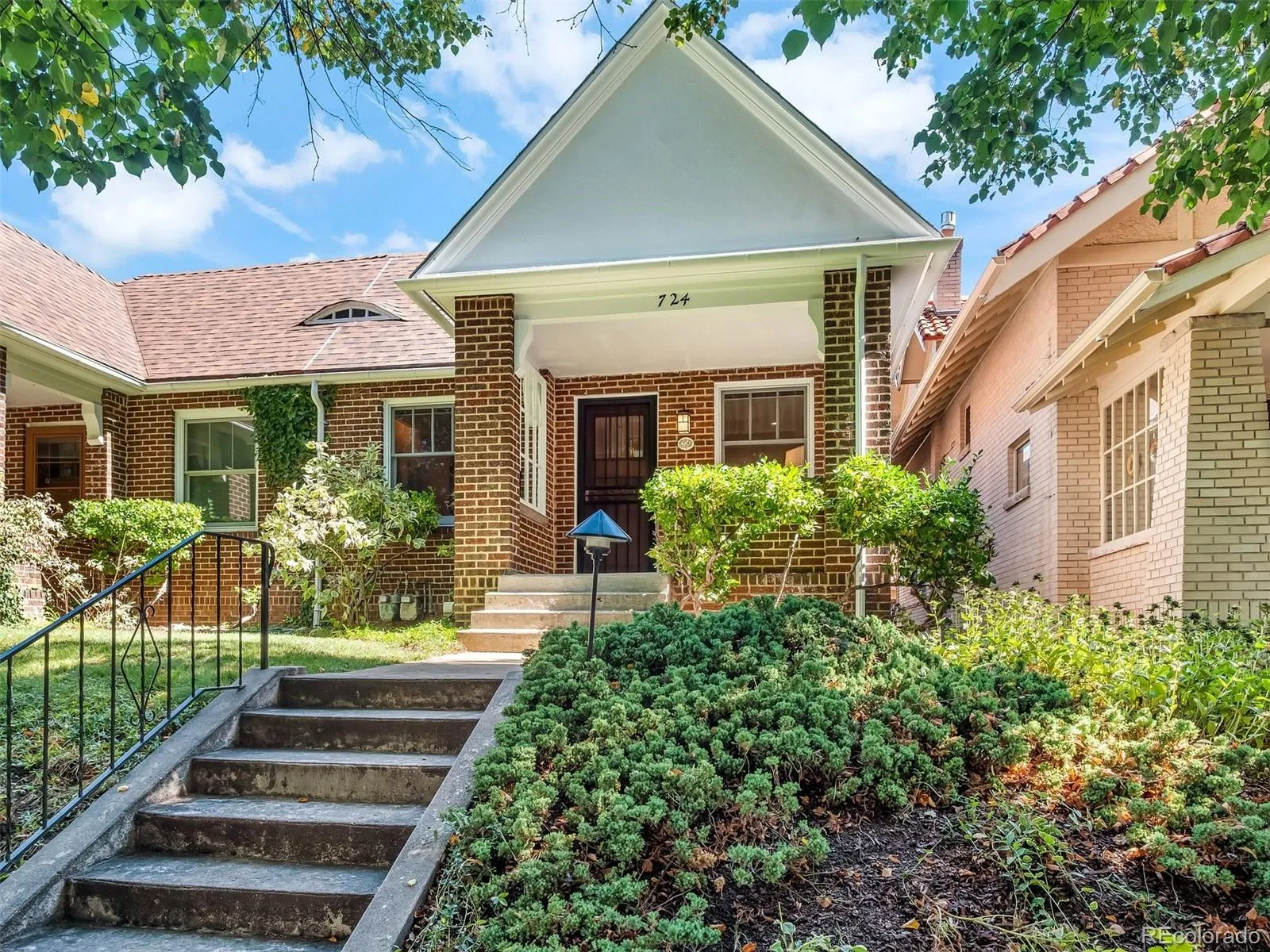 Imagine life on 7th Avenue Parkway – enjoying strolling or jogging amongst tall shade trees – with Cheesman Park and Denver Botanic Gardens just a short walk away. 724 Vine Street offers a millionaire’s location without the price tag. This freshly updated and efficient property, built in 1922, is nested among the stately historic homes of North Country Club with access to all the neighborhood amenities that the area has to offer, from shopping and dining on 6th Avenue and in Cherry Creek North to parks, parkways, services and schools. A covered front porch with multi-pane glass side panels welcomes you. A new security door opens to the beautiful original wood front door with its high window. An expanse of light oak hardwood floor flows through the large living and entertaining area and dining room. The living room’s gas fireplace is wrapped in limestone, which lends a French country feel. There is new paint on the walls and trim, as well as updated lighting. The dining chandelier complements the leaded-glass grilles in the upper windows. The kitchen, featuring a peninsula breakfast bar, offers Gaggenau double ovens, a gas cooktop, and a 36″ LG French door refrigerator, and a new Bosch dishwasher, plus excellent drawer base cabinet storage. Off the kitchen, you’ll find a private primary bedroom with an en-suite bath, a wide vanity, and an oversized shower. A sunroom adjoins the primary bedroom, which could be purposed as a home office, a nursery, or a studio. Hardwood floor extends through the primary bedroom and sunroom. That sunroom has large double-hung windows on two sides and overlooks the lush garden with its flagstone patio, trumpet vines, and numerous plantings wrapping the brick garage. The basement has a multi-purpose room that could be a second media/TV room, a guest room, or an office. A three-quarter bath has a washstand vanity and oversized shower. The laundry and mechanical/storage round out the basement. New roof and freshly painted exterior trim!