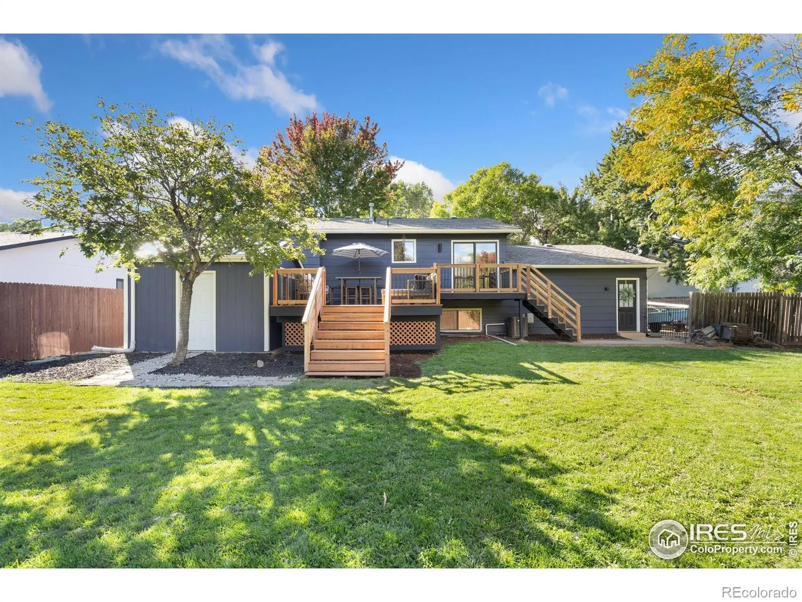 This beautifully updated 4-bedroom, 2-bathroom split-level home offers a perfect blend of modern design and functional living. Located on a generous corner lot in Fort Collins, it features two bedrooms and a full bathroom on each level, providing privacy and space for everyone. The main level boasts a bright and open living area with large windows that allow natural light to flood the space, while the updated kitchen showcases quartz countertops, a stylish tiled backsplash, stainless steel appliances, and a convenient counter seating area. An adjacent dining area makes family meals or entertaining guests a breeze. Downstairs, the lower level offers a spacious family room with a cozy brick fireplace, two additional bedrooms, and a refreshed bathroom with modern fixtures. Outside, the large corner lot includes two sheds, one with electricity and is climate controlled – ideal for a workshop, studio, or office, as well as plenty of side yard space for RV or boat parking. Additional upgrades include a recently installed central vacuum system and a new tankless water heater, adding efficiency and convenience. Centrally located, this home offers easy access to shopping, dining, parks, public transportation, and is just minutes from Colorado State University.