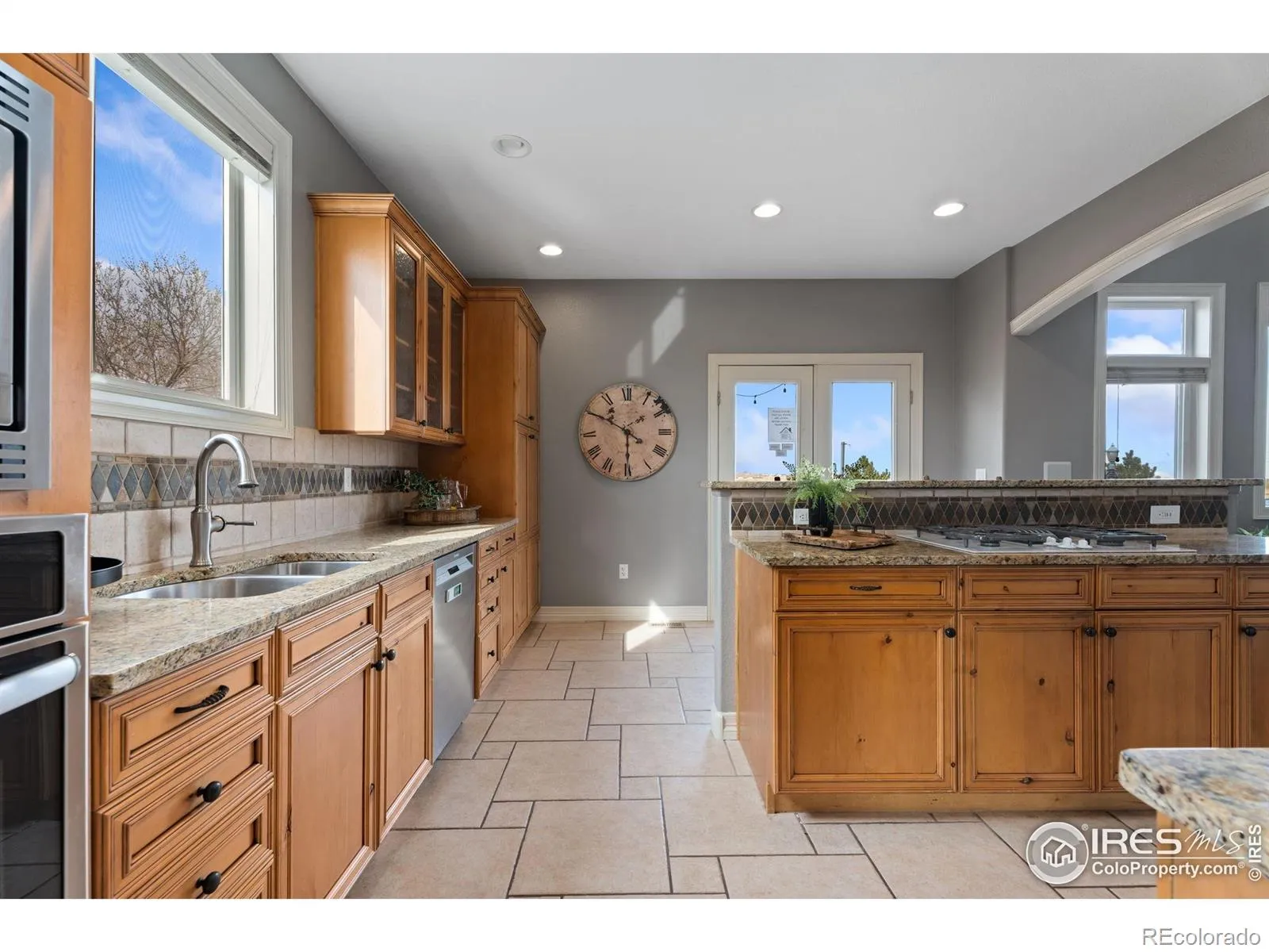 Rare MULTIGENERATIONAL Opportunity! This refreshed country-style 2-story with a walkout basement offers a full second living space complete with kitchen, 2 bedrooms, 2 baths, and laundry – perfect for extended family, guests, or rental potential. Conveniently located just 20 minutes from College & Harmony and under 10 minutes from Windsor, this home blends country living with city access. There’s room to park 7+ cars with a 3-car attached garage plus a 24×30 shop, along with an owned solar system for utility savings. Recent updates include fresh interior paint, new basement carpet, updated lighting, and landscaping. The gourmet kitchen features 42″ custom alder cabinets with pull-outs, slab granite countertops, stainless steel appliances, pantry, and a breakfast bar, with walkout access to a large Trex deck wired for sound and a 220v outlet for a hot tub. The family room is spacious and welcoming with a gas fireplace, mantel, and tile surround. Upstairs, the primary suite offers a three-sided fireplace, spa-inspired five-piece bath with jetted tub, heated tile floor, towel warmer, and a generous walk-in closet, while a guest suite includes its own private full bath and the third and fourth bedrooms share a Jack & Jill bath with charming window seats. The home is also ideal for an in-home business setup with a separate office entry and bath. A detached insulated 30×24 RV garage with a 12-foot overhead door plus a large concrete pad provides incredible storage for toys, trailers, or shop space. With its flexible living options, upgrades, and room for everything you love, this home truly has it all.
