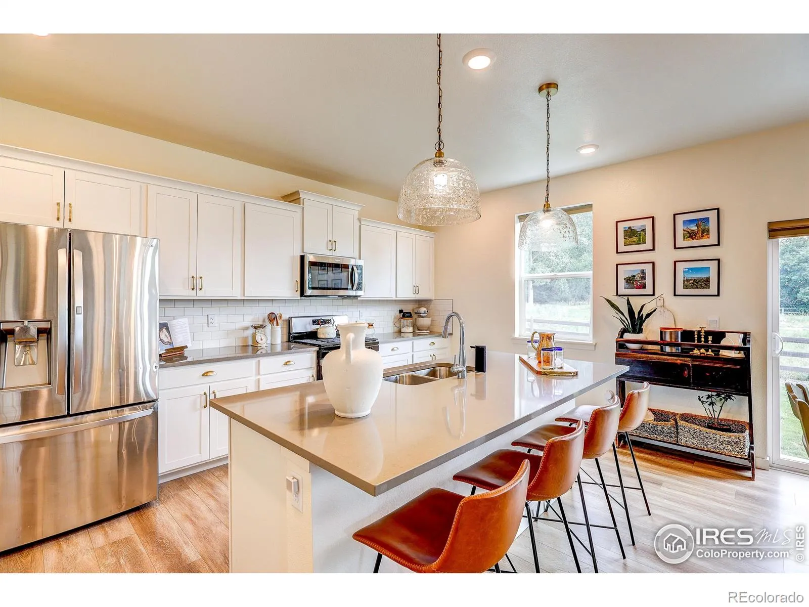 SELLER OFFERING $10,000 FOR BUYER CONCESSIONS. This well-maintained 4-bedroom, 3-bath home in the desirable Hansen Farm subdivision is zoned to TOP RATED schools-Werner Elementary, Preston Middle School, and Fossil Ridge High School-and within walking distance to Bacon Elementary with school choice. The popular Bridgeport floor plan offers ample natural light and mountain views. Hansen Farm has no metro district tax, plus easy access to walking trails that will soon connect directly to the Power Trail, as well as a new city park currently under construction. Set on one of the largest lots in the neighborhood, this property features a spacious backyard with a sprinkler system and a south-facing driveway that makes snow shoveling virtually unnecessary. Priced well below new builds in the subdivision-especially when comparing price per square foot & included amenities. Thoughtful upgrades completed after the build give the home a custom feel. Stylish light fixtures have been added throughout the office, entryway, living room, dining area, kitchen, bedrooms, bathrooms, and upstairs loft. Every bedroom and living space includes a climate-control ceiling fan, while upgraded hardware on the two main floors enhances the home’s finish. Additional storage has been thoughtfully incorporated with a built-in entertainment center in the living room and extra cabinets in the bathrooms. Unlike many new builds, this property already includes window treatments, window well covers, a fully fenced backyard, a Ring doorbell, and a Nest thermostat. The first floor highlights a kitchen with a large island, walk-in pantry, stainless steel appliances, and quartz countertops. Upstairs, you’ll find all four bedrooms along with a loft-perfect as an additional living space or playroom. Located just minutes from Fossil Creek Reservoir Natural Area, local lakes, Horsetooth Reservoir, and Lory State Park, as well as the shopping & dining in Old Town Fort Collins. Take a look today!