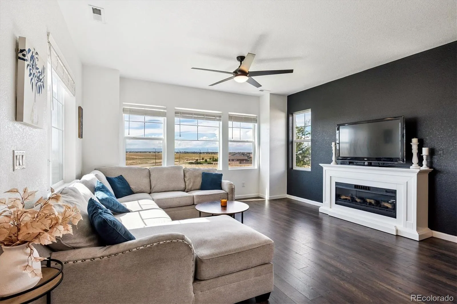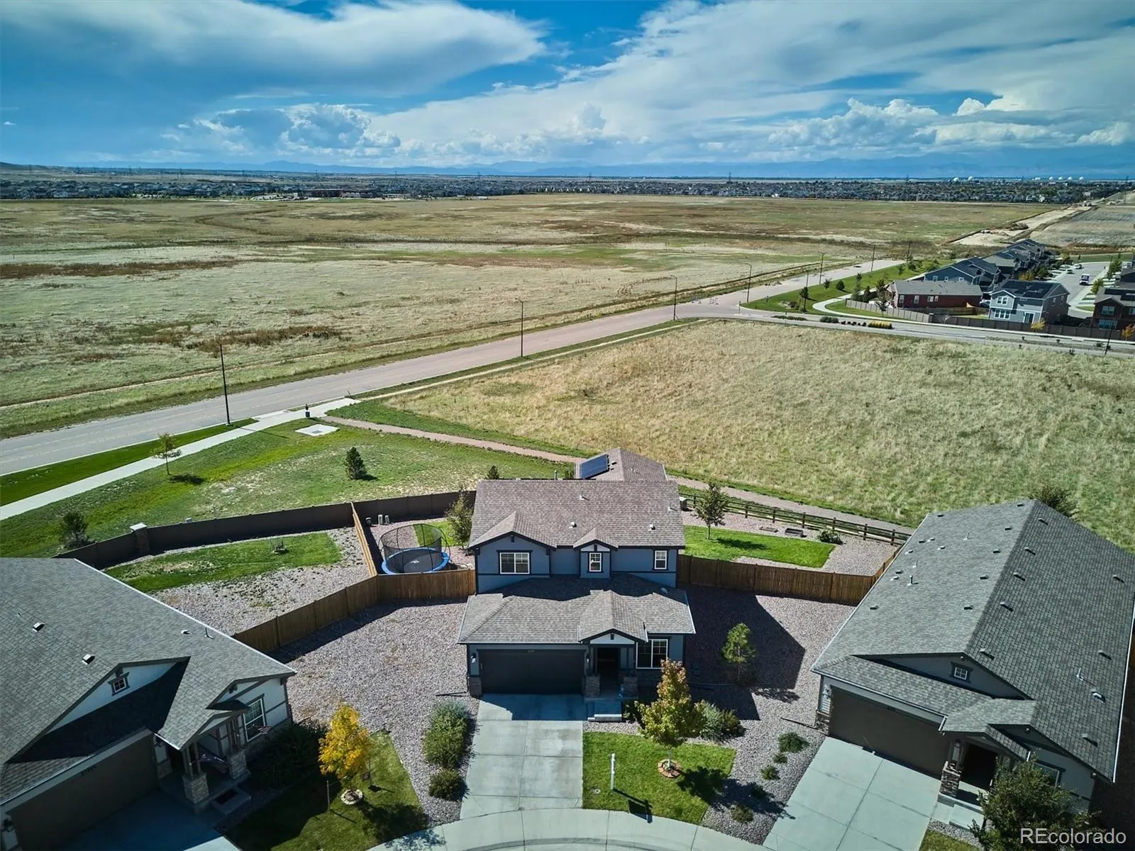 PRICE DROP!! Welcome to this beautifully maintained Taylor Morrison home in the heart of Sky Ranch, offering space, style, and views that stretch for miles, including Pikes Peak, and easy airport access, all set on a MASSIVE 10,940 square foot lot. This extra large corner lot provides privacy from neighbors!! Built in 2021 and thoughtfully upgraded, this 3-bedroom, 3-bath, 2,066 square foot home, is move-in ready and designed for both comfort and entertaining. Inside you will find a spacious, open-concept layout with a large great room, dining and kitchen with GE appliances, white countertops and a walk-in pantry, plus a guest 1/2 bath. All three bedrooms are upstairs, with a five-piece en suite bath in the primary. A full bath for the secondary bedrooms and laundry room complete the second floor. Ceiling fans in the primary bedroom and the downstairs great room well will add extra comfort. Step outside to your private backyard, fully fenced, and complete with three new trees, a garden box, and no rear neighbors, with no current plans for development behind the property. The open lot is privately owned. You will be able to enjoy Colorado’s outdoor lifestyle on the new concrete slab patio with covered structure (a $7,500 upgrade that stays with the home). Govee exterior lights bring charm to your evenings, and the energy-efficient solar panels can be transferred to the new owner at closing, with a low finance payment and subsequently low utility bills. Other features include a 38-gallon hot water heater, crawlspace storage, and central A/C. Low monthly HOA, which includes fire department services, and supports future neighborhood expansion. Families will appreciate the zoned public school (Harmony) and the nearby charter school option (K–9, expanding to K–12) right in the community. 3D Walkthrough Video, copy and paste – https://www.zillow.com/view-imx/baac8056-2148-484d-846d-4a24960bfcc2?setAttribution=mls&wl=true&initialViewType=pano&utm_source=dashboard