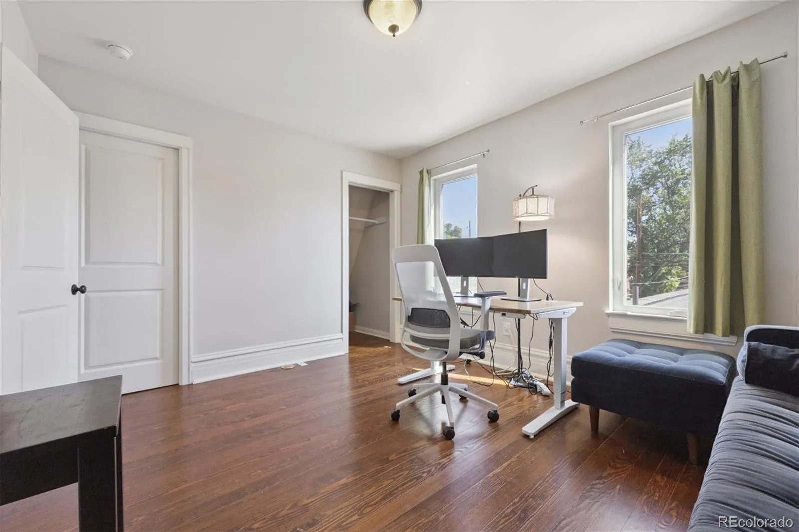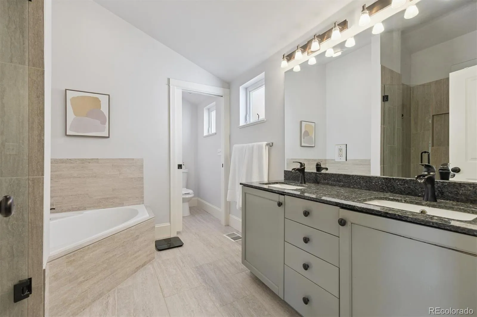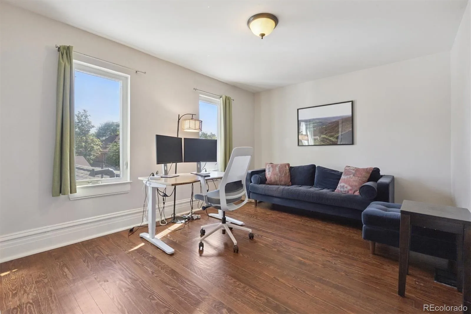 Turnkey Dutch Colonial in West Wash Park with lovely, vintage details to seduce your heart; modern updates to satisfy your head. Enjoy the period details like the antique twist doorbell on the front door, high ceilings, substantial mouldings, and newel posts and banisters. The main floor flows beautifully with all of the essentials – elegant front living room, spacious dining room, modern kitchen with breakfast bar, mud room, laundry, powder bath, and rare main floor primary bedroom. Exposed brick walls on either side of the fireplace in the living room make this room cozy and warm. A few candles in the former firebox would bring a touch of magic to a cool evening. Host a lively dinner party in the dining room. The kitchen is perfectly situated for accessibility while hiding the chef’s creative use of every pot in the kitchen! Relish the large primary suite with cathedral ceilings, large closet & built-ins, en-suite bath. A large tub and walk in shower with euro hinges and multiple heads suggests sumptuous self-care, while a separate toilet room and two sinks allows multiple people to share this space. Upstairs you’ll find three additional bedrooms, all with charming original hardwood floors and architectural ceiling details. All have large closets. The full hall bath has two sinks to make morning and bed times a little less stressful. The basement was excavated under the mudroom and primary suite to create a retreat with higher ceilings than you would expect in a house of this age. The full bath and ample storage round out the interior space. The backyard is a private oasis. Plant gardens, enjoy the lingering warmth in the evenings, install a fire pit, grill a meal. The plantings are intentionally bee friendly and have successfully helped pollinate the owners’ kitchen gardens. Of course there’s a garage, but how much will you need a car with so many lovely places within walking distance? Wash Park, the restaurants on S. Broadway, Platt Park — the list goes on.