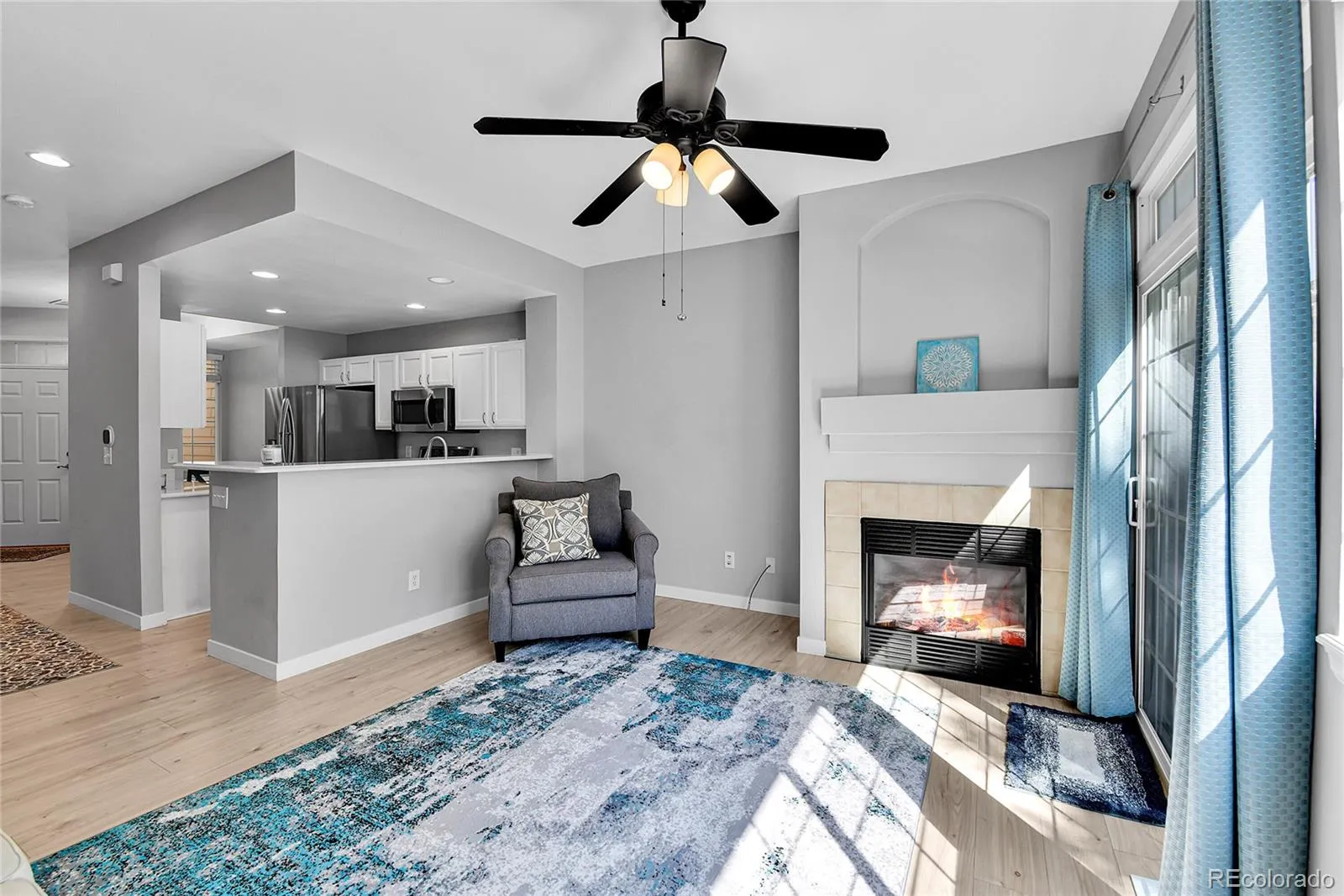 Pride of ownership shines in this beautifully remodeled home, featuring high-end, modern finishes throughout. Step inside to an open-concept layout filled with natural light. The formal dining area flows seamlessly into a designer kitchen with white cabinetry, quartz countertops, bar seating, a large double sink, and newer stainless-steel appliances. The attached finished garage with built-in storage adds convenience.** This well-maintained community offers resort-style amenities including a pool and hot tub, with a professionally managed HOA and lower-than-average dues. Recent major updates provide peace of mind: New Roof, New Furnace, and New Water Heater. The inviting living room boasts a cozy gas fireplace—perfect for both everyday comfort and entertaining.