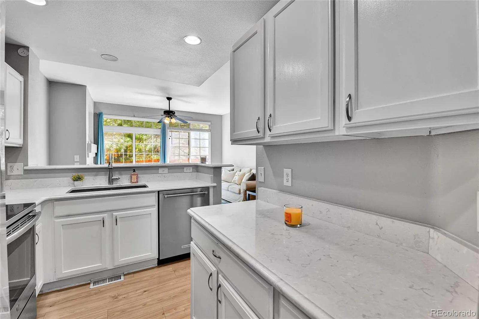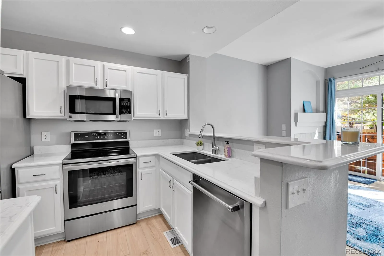 Pride of ownership shines in this beautifully remodeled home, featuring high-end, modern finishes throughout. Step inside to an open-concept layout filled with natural light. The formal dining area flows seamlessly into a designer kitchen with white cabinetry, quartz countertops, bar seating, a large double sink, and newer stainless-steel appliances. The attached finished garage with built-in storage adds convenience.** This well-maintained community offers resort-style amenities including a pool and hot tub, with a professionally managed HOA and lower-than-average dues. Recent major updates provide peace of mind: New Roof, New Furnace, and New Water Heater. The inviting living room boasts a cozy gas fireplace—perfect for both everyday comfort and entertaining.