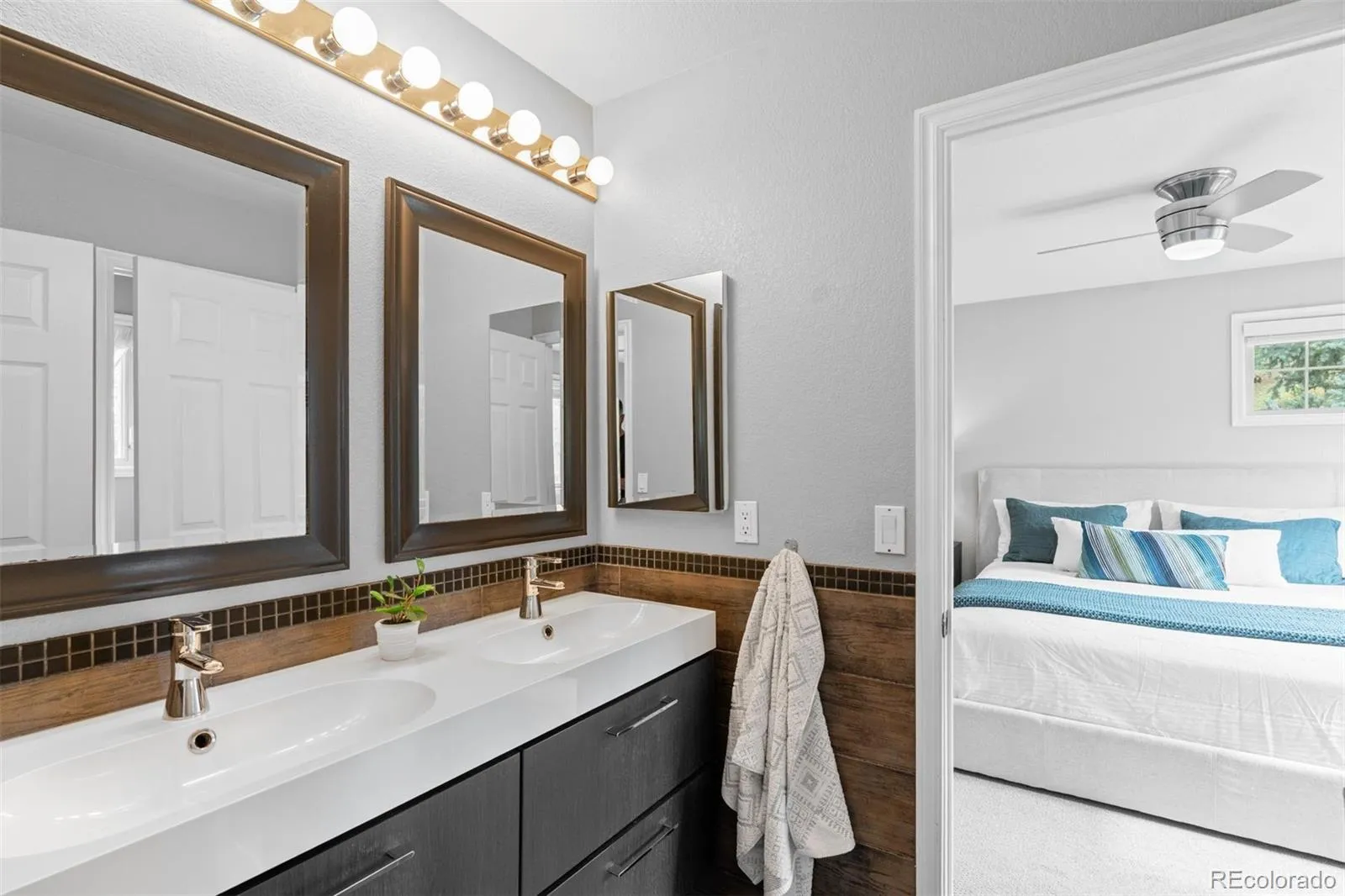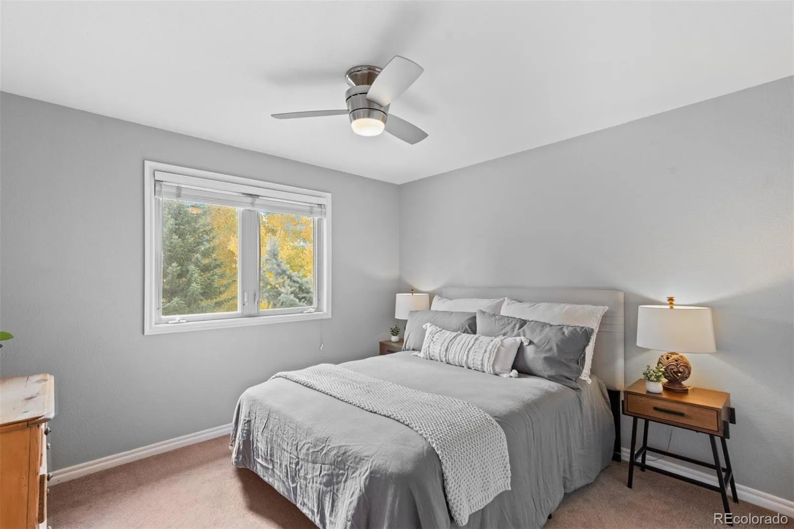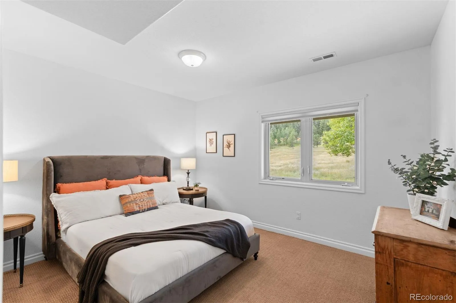 The main level features a thoughtfully designed floor plan with a grand entryway, private executive office, and formal living and dining rooms, all accented by beautiful hardwood flooring. The open-concept kitchen is perfect for entertaining, connecting seamlessly to the vaulted great room with a wall of windows that floods the space with natural light and brings the outdoors in and opens to an oversized deck with incredible views and outdoor living space. Upstairs, the serene primary suite offers a spacious retreat with a recently renovated, spa-quality bath—featuring marble countertops, dual vanities, a soaking tub, and a glass-enclosed shower. Three additional bedrooms and two full baths complete the upper level. The walkout lower level includes a large rec room with wet bar, a fifth bedroom and full bath, plus a flexible bonus room ideal for a gym, playroom, or home theater. Step outside to a covered patio and a beautifully usable, landscaped yard backing to open space. All this, just a short walk to the elementary school, parks, shopping, and dining—and just minutes from I-70 for an easy commute to Denver or quick getaway to the mountains. Truly a rare opportunity to enjoy the best of Evergreen’s luxury mountain living! **New roof, furnace, A/C, cooktop, double ovens, microwave, washer, dryer and the majority of blinds over the last 2 years**
