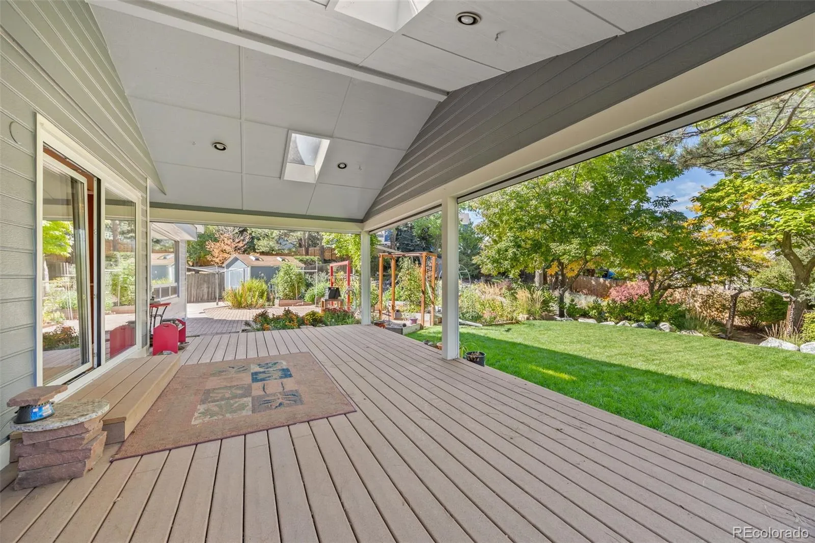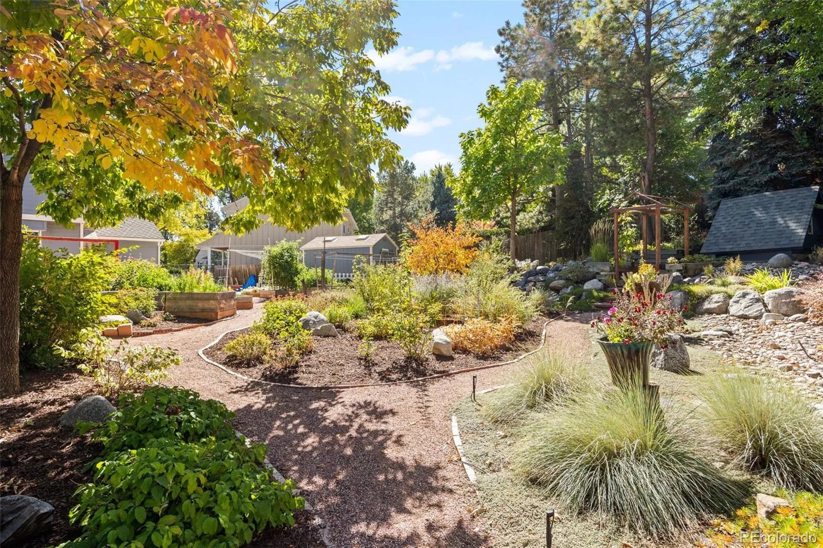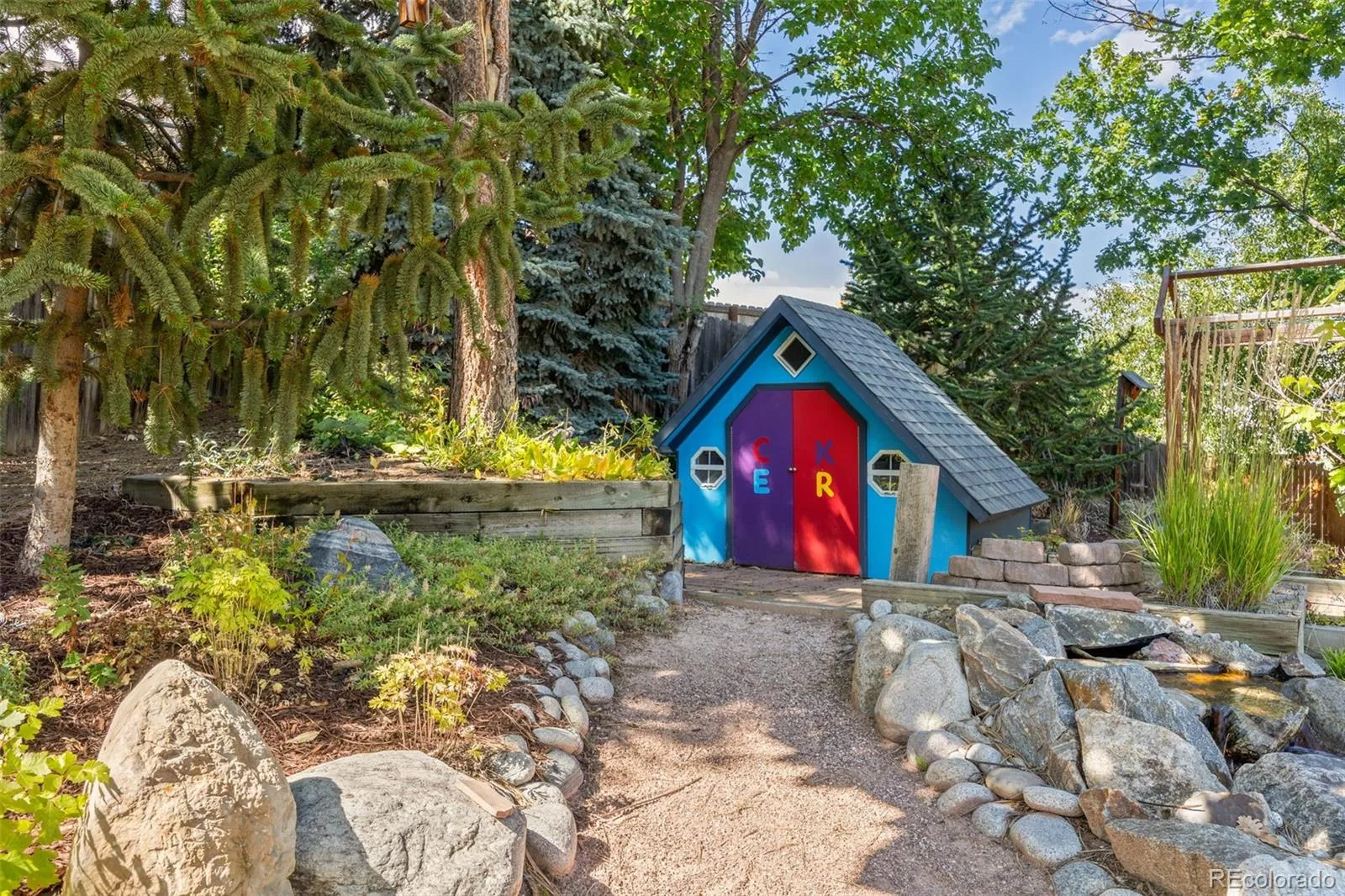 5-burner gas range, Stainless/black appliances, Corian counters, large pantry. From the eat-in nook step outside via the custom European DP sliding door. Adjacent is the family room with enormous picture window, an ideal space to relax in evenings by warmth of the fire. A laundry/mud room with storage nook rounds out the main floor. Upstairs you’ll find 4 bedrooms including the renovated Primary with 5-pc ensuite bath featuring a dual vanity in black granite, soaking tub, tiled shower & floors, ample walk-in closet. A second full renovated bath on the upper level offers family & guests a bit of luxury as well. The finished basement provides more living space with a bonus/rec room (the pool table is yours!),plentiful storage & 3/4 bath. But the pièce de résistance is the gorgeous backyard, beautifully designed with an impressive rock water feature, meandering walkways, colorful perennials & mature trees that offer shade & privacy. An adorable playhouse creates a magical hideaway for little ones. Enjoy scents of lavender & roses while relaxing on the spacious covered TREX deck fitted w/ skylights & remote-operated blinds on 3 sides to block summer sun & enclose the deck in cooler weather. Store lawn & gardening equipment in the shed that has electricity & a reinforced floor. Drip irrigation on all plants; roof is impact resistant. The excellent upkeep of this home results in a great find for you. It invites you to come, linger & take in its beauty!