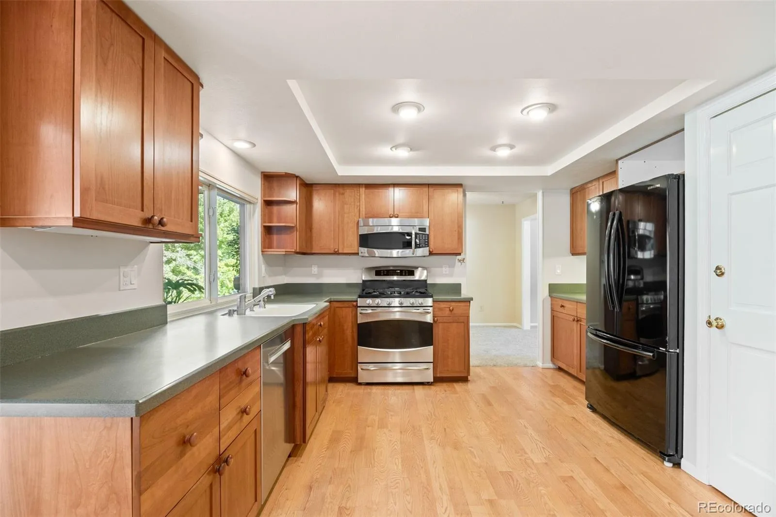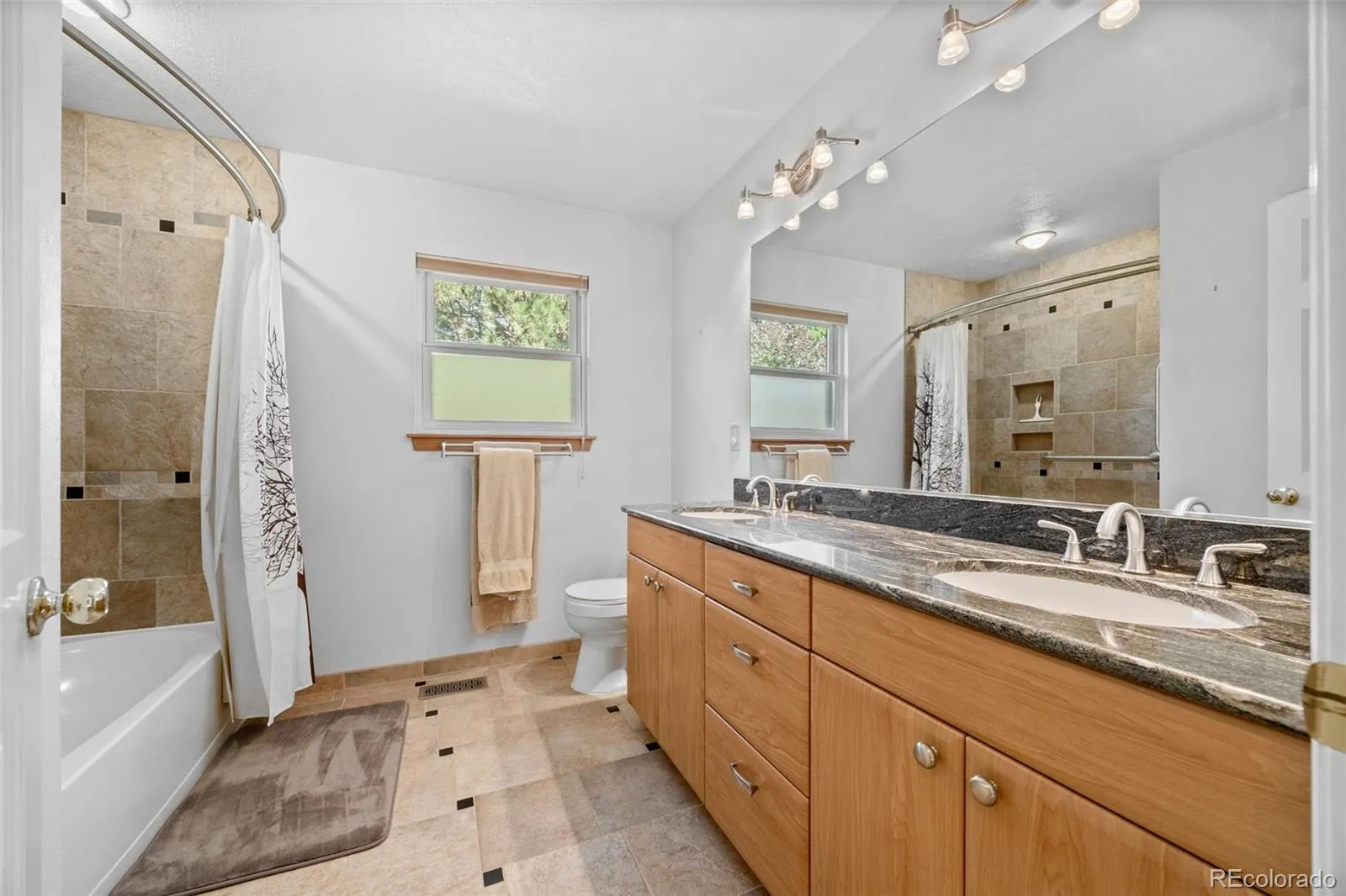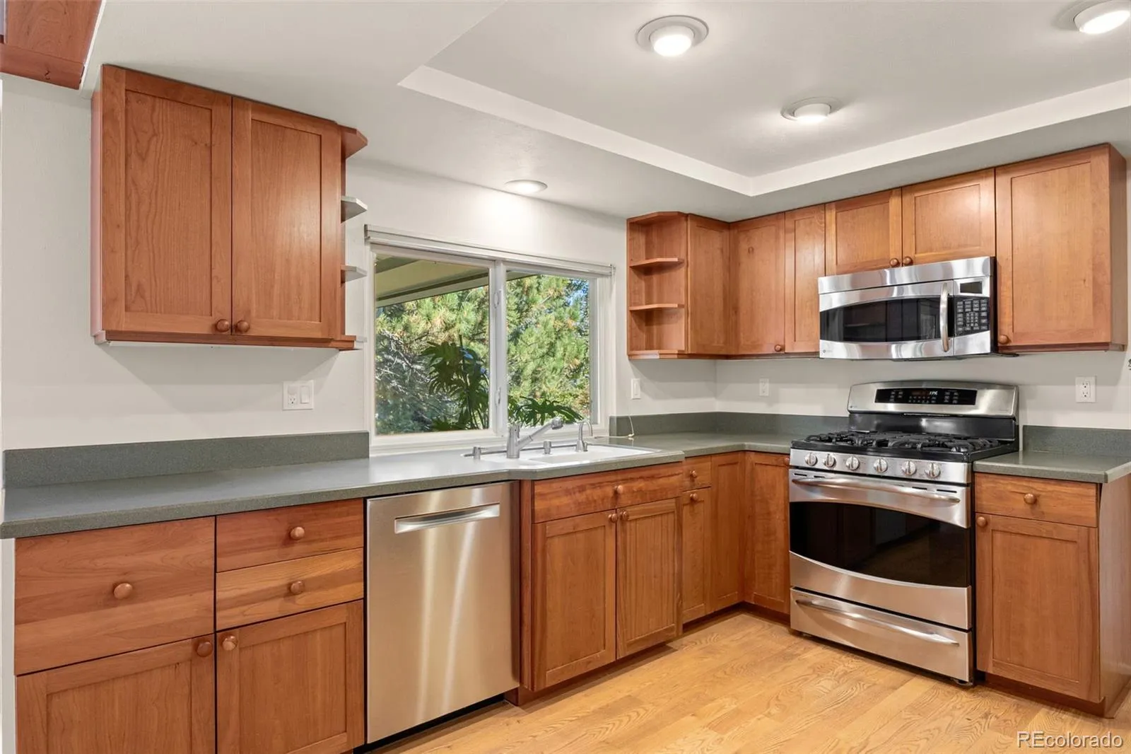 5-burner gas range, Stainless/black appliances, Corian counters, large pantry. From the eat-in nook step outside via the custom European DP sliding door. Adjacent is the family room with enormous picture window, an ideal space to relax in evenings by warmth of the fire. A laundry/mud room with storage nook rounds out the main floor. Upstairs you’ll find 4 bedrooms including the renovated Primary with 5-pc ensuite bath featuring a dual vanity in black granite, soaking tub, tiled shower & floors, ample walk-in closet. A second full renovated bath on the upper level offers family & guests a bit of luxury as well. The finished basement provides more living space with a bonus/rec room (the pool table is yours!),plentiful storage & 3/4 bath. But the pièce de résistance is the gorgeous backyard, beautifully designed with an impressive rock water feature, meandering walkways, colorful perennials & mature trees that offer shade & privacy. An adorable playhouse creates a magical hideaway for little ones. Enjoy scents of lavender & roses while relaxing on the spacious covered TREX deck fitted w/ skylights & remote-operated blinds on 3 sides to block summer sun & enclose the deck in cooler weather. Store lawn & gardening equipment in the shed that has electricity & a reinforced floor. Drip irrigation on all plants; roof is impact resistant. The excellent upkeep of this home results in a great find for you. It invites you to come, linger & take in its beauty!