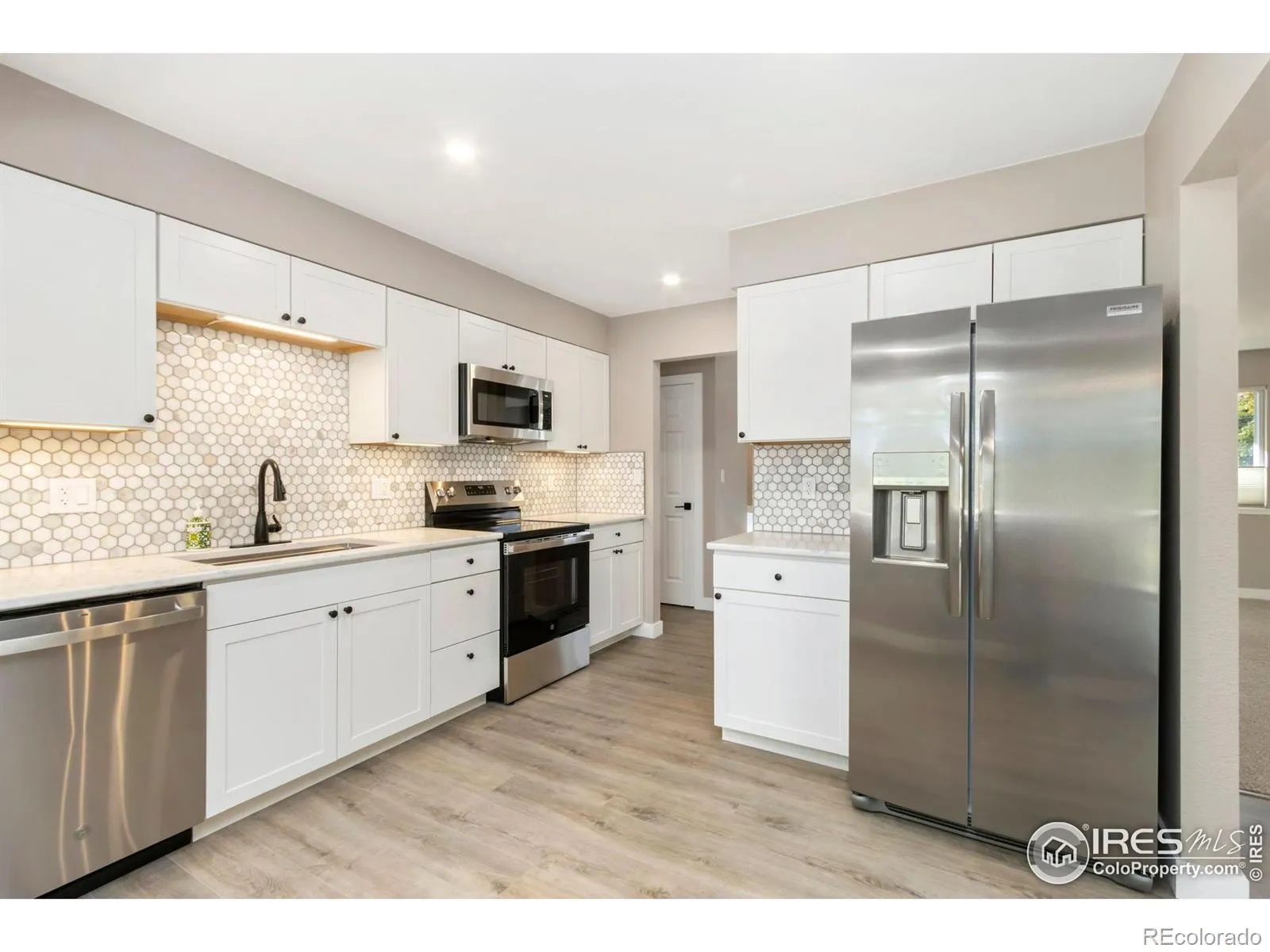 This professionally renovated and fully updated 4BR 3BA home offers a spacious, inviting, and open floorpan with lots of natural light. Very large backyard which backs up to a Very Very large green belt/open space area. Featuring a large deck overlooking the backyard which makes for fun backyard BBQ’s, is ideal for outdoor activities, and entertaining, with plenty of elbow room for all. The outside space perfectly compliments the beautiful interior of this lovely home, offering everyone a place to relax, enjoy, and soak in all of the natural beauty that Colorado has to offer with several mature trees providing some great shade and additional privacy to the home. The most discerning of Buyers will appreciate this care-free and super solid home, together with the peace of mind that comes with it, since all of the majors are already done here including a newer roof, water heater, and furnace. Brand new vinyl double pane windows, completely renovated bathrooms and kitchen with high quality tile installations and SS GE appliances, fresh interior/exterior paint, all new flooring, lighting/plumbing fixtures, new cabinetry and hard surfaces, the list goes on and on. A large 2 car garage (24×24) with brand new openers and new insulated garage doors completes the package. This is a must see “cream puff” in Southwest Loveland that is turn-key and completely move-in ready. Offering many nearby amenities, including an anchored King Soopers grocery center just 1/2 mile away with all of the needed neighborhood services/amenities, several nearby golf courses (Lake Loveland, The Olde Course, and Cattail Creek), tennis/pickle ball courts, dog parks, the incredible Benson sculpture park, and all of the entertainment, food, beverage, and nearby shopping in Downtown! Loveland just has so much to offer. So come see this real gem of a home that is clean as a whistle and ready for you to call your home today. Run Don’t Walk!