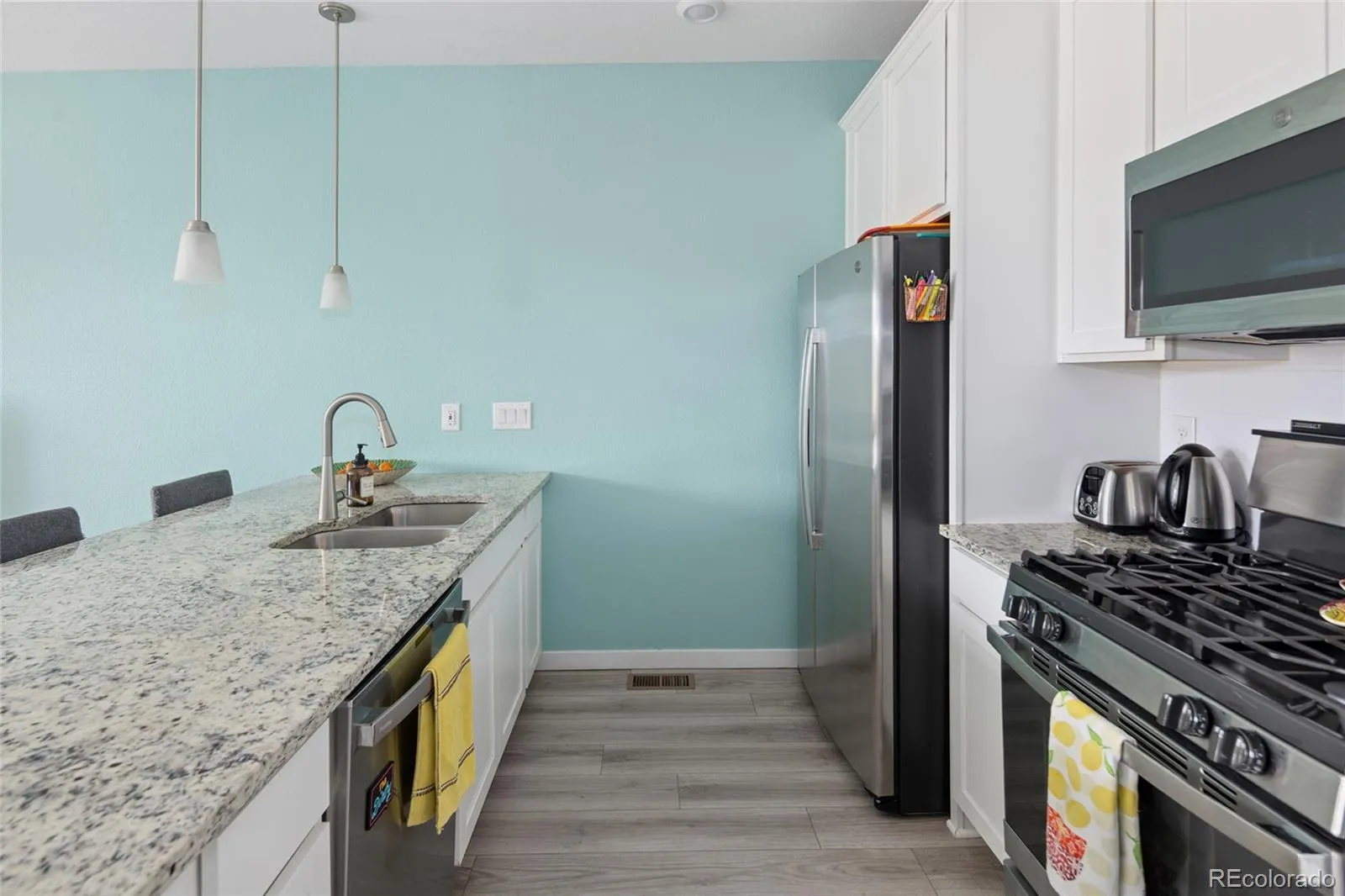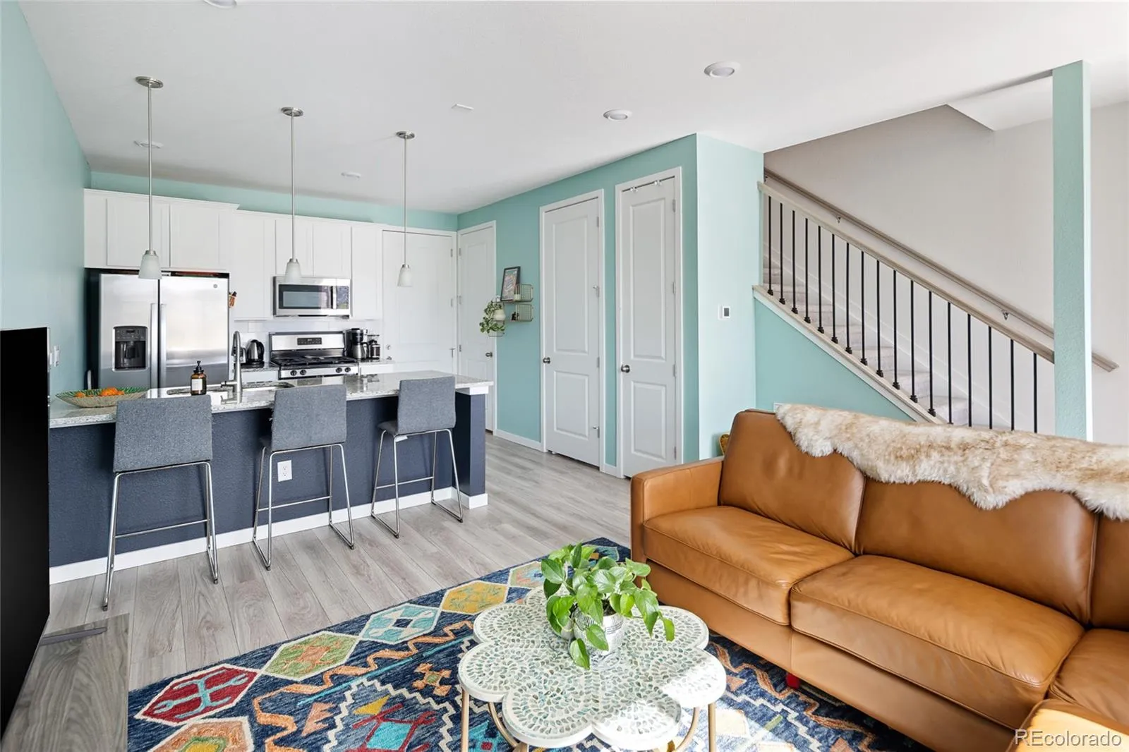 Brand-new home built in 2022 is ready for you to call home! This modern two-story townhome is full of beautiful upgrades. The main level is very bright and gets lots of Colorado sunshine. Step inside to a bright and modern open-concept layout that seamlessly connects the living room and kitchen, creating an ideal space for entertaining and daily living. The thoughtfully designed floor plan maximizes functionality and flow, providing a perfect balance between private retreats and communal areas. Each bedroom offers ample space and comfort, ensuring a restful environment. The bathrooms are elegantly designed, featuring contemporary fixtures and finishes. Embrace the charm and character of this inviting residence, offering style and convenience in a vibrant community. All bedrooms are on the second level and each have their own bathroom. The primary bedroom has a walk-in closet, and bathroom with granite countertops. The laundry room is conveniently located on the second level with a washer and dryer included. You will appreciate the convenience of the attached garage which includes additional storage. Within walking distance is a playground, Dunkin Donuts, Popeyes Chicken, and several other businesses in this newly developed area. This home offers the perfect blend of comfort and style, waiting for you to make it your own.
