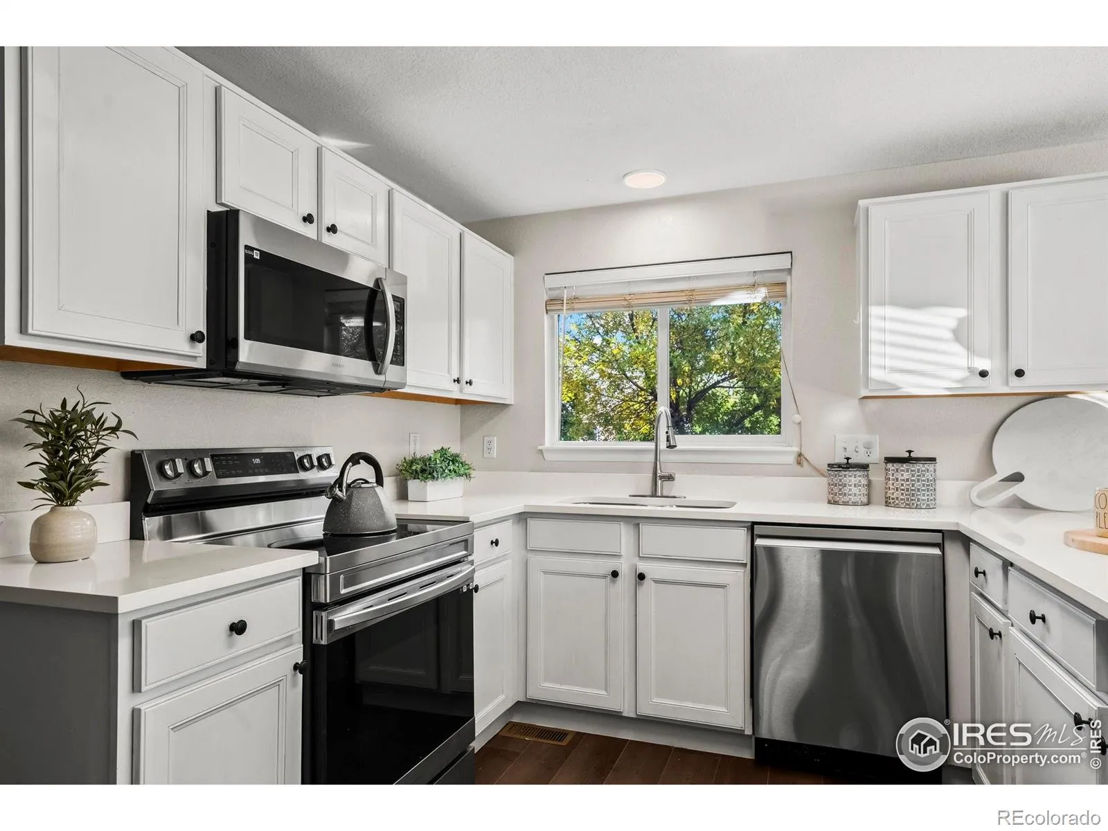 Welcome to this beautifully UPDATED home nestled on a desirable CORNER LOT with mature landscaping. Step inside to find brand NEW carpet, fresh paint, and new luxury vinyl flooring throughout. The BRIGHT and MODERN kitchen showcases QUARTZ countertops, white cabinetry, stainless steel appliances, and a clean, contemporary design. The PRIMARY SUITE feels like a PRIVATE RETREAT, occupying its own level with vaulted ceilings, a five-piece bath, and a spacious walk-in closet. Two additional bedrooms and a full bath are located on the upper level, providing PLENTY OF SPACE for family or guests. A cozy GREAT ROOM features a gas fireplace, creating the perfect space for relaxing or entertaining. The unfinished basement offers endless potential for future expansion or convenient storage. Outside, enjoy the large yard with LUSH MATURE landscaping and large PATIO with PERGOLA. Additional highlights include a nice size laundry room with washer and dryer included. UNBEATABLE LOCATION within walking distance to a HIGHLY RATED ELEMENTARY and SECOND COMMUNITY POOL plus right down the street from a neighborhood pocket park.Vista Ridge Community clubhouse access for GYM and events! This home combines MODERN UPDATES , functional living, and CHARM in one perfect package-don’t miss it!