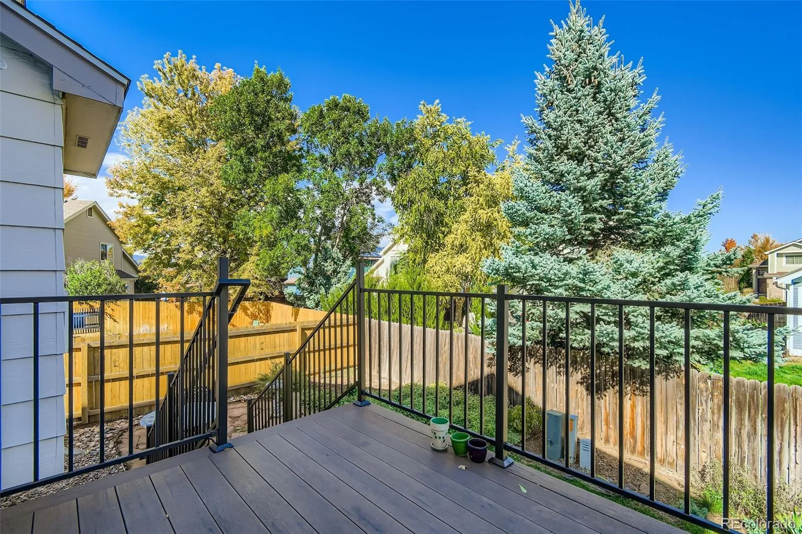 Stepping outside features a composite deck for low maintenance, a private fenced backyard, a flagstone patio, and a paved access from the front gate to the backyard.