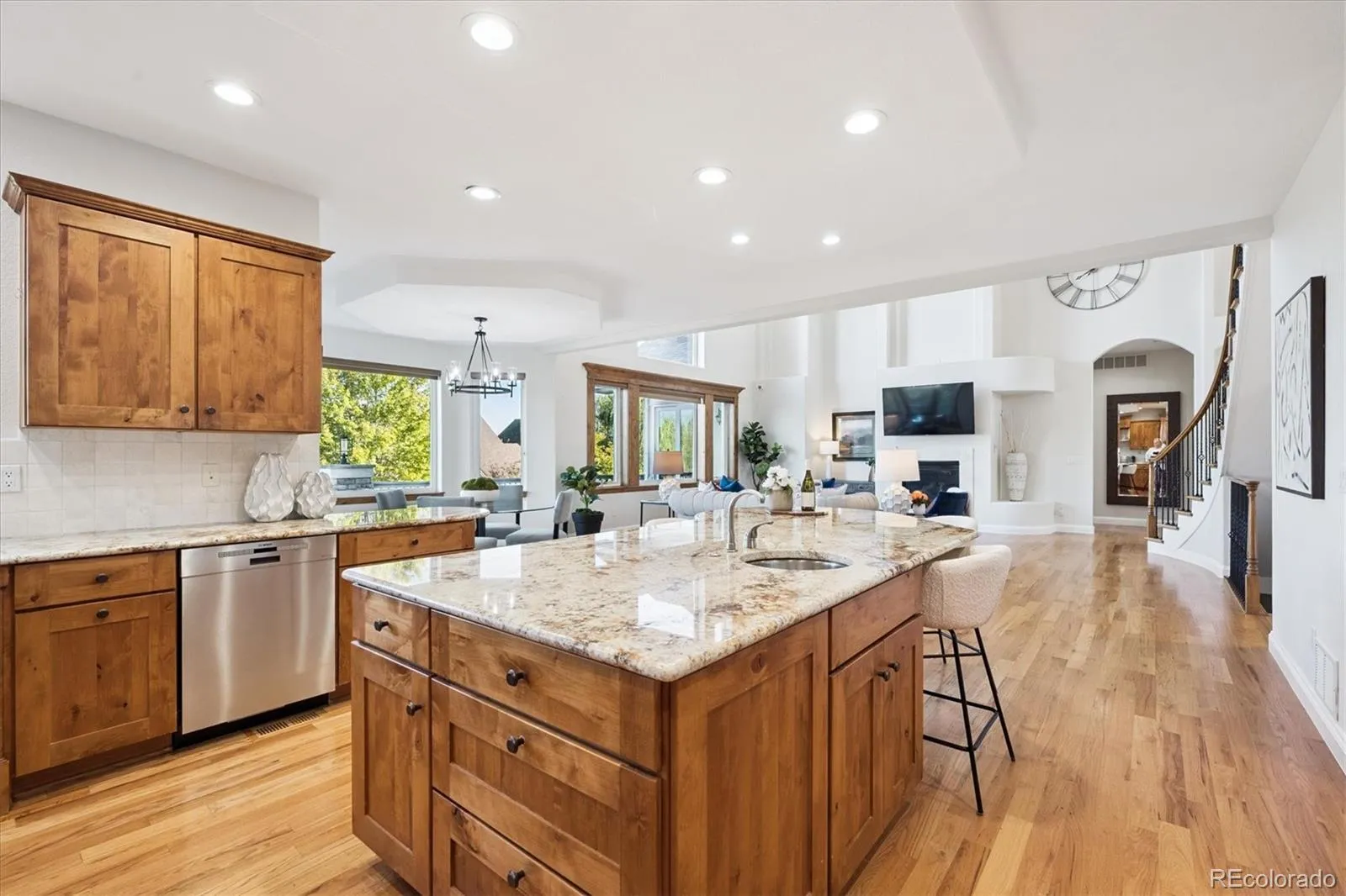 Welcome to 1199 Links Court, a stunning home on a quiet cul-de-sac in the coveted Vista Ridge golf community. Soaring windows, rich wood floors, and a dramatic great room fireplace create a warm, light-filled atmosphere. The gourmet kitchen boasts slab granite counters, dual ovens, a gas range, and a spacious island perfect for gatherings. The main-floor primary suite offers a fireplace and private deck access. With multiple entertaining spaces, a finished basement, a large maintenance-free deck overlooking open views, and a spacious three-car garage with EV charger, this home blends elegance with everyday comfort.