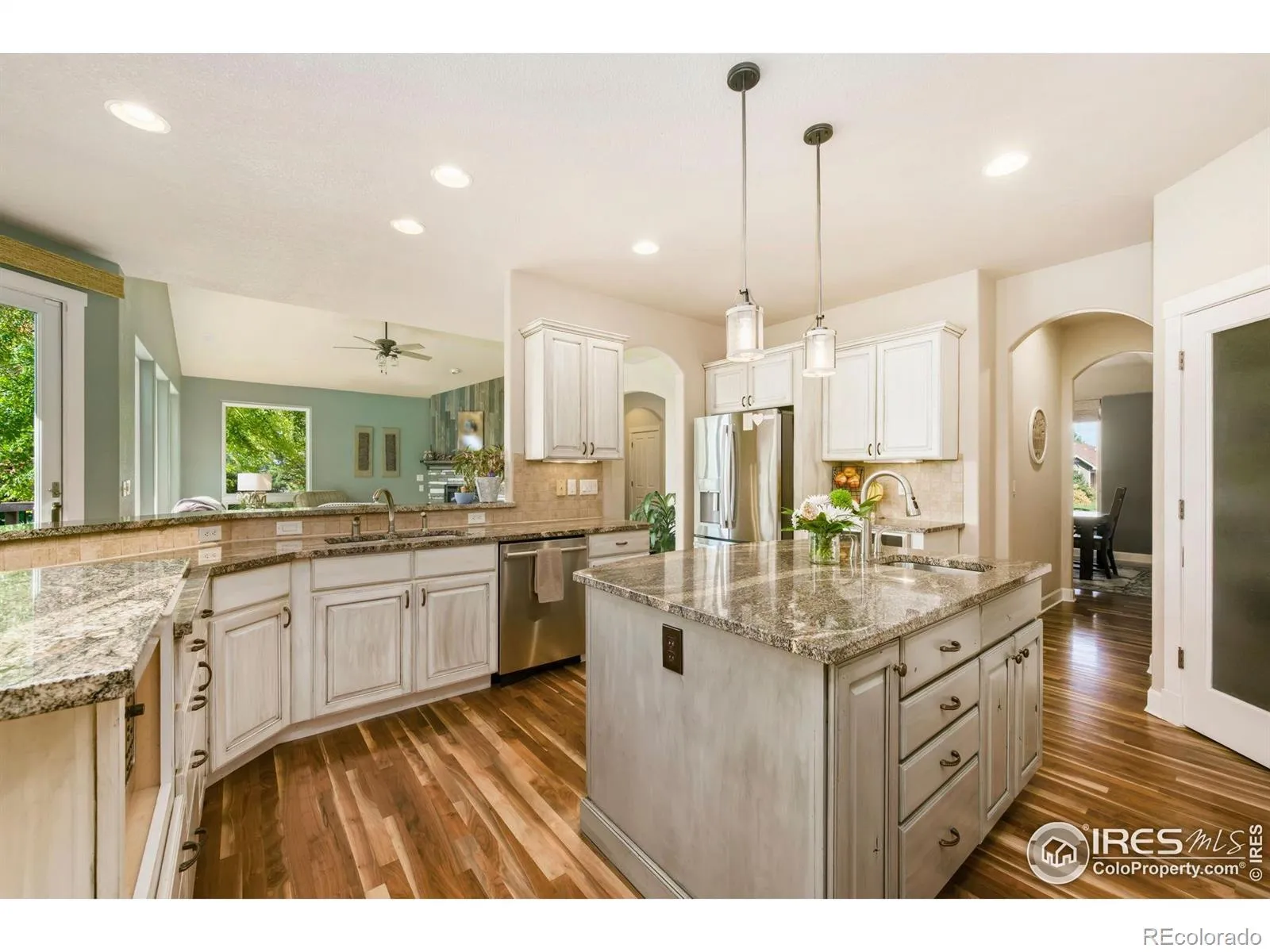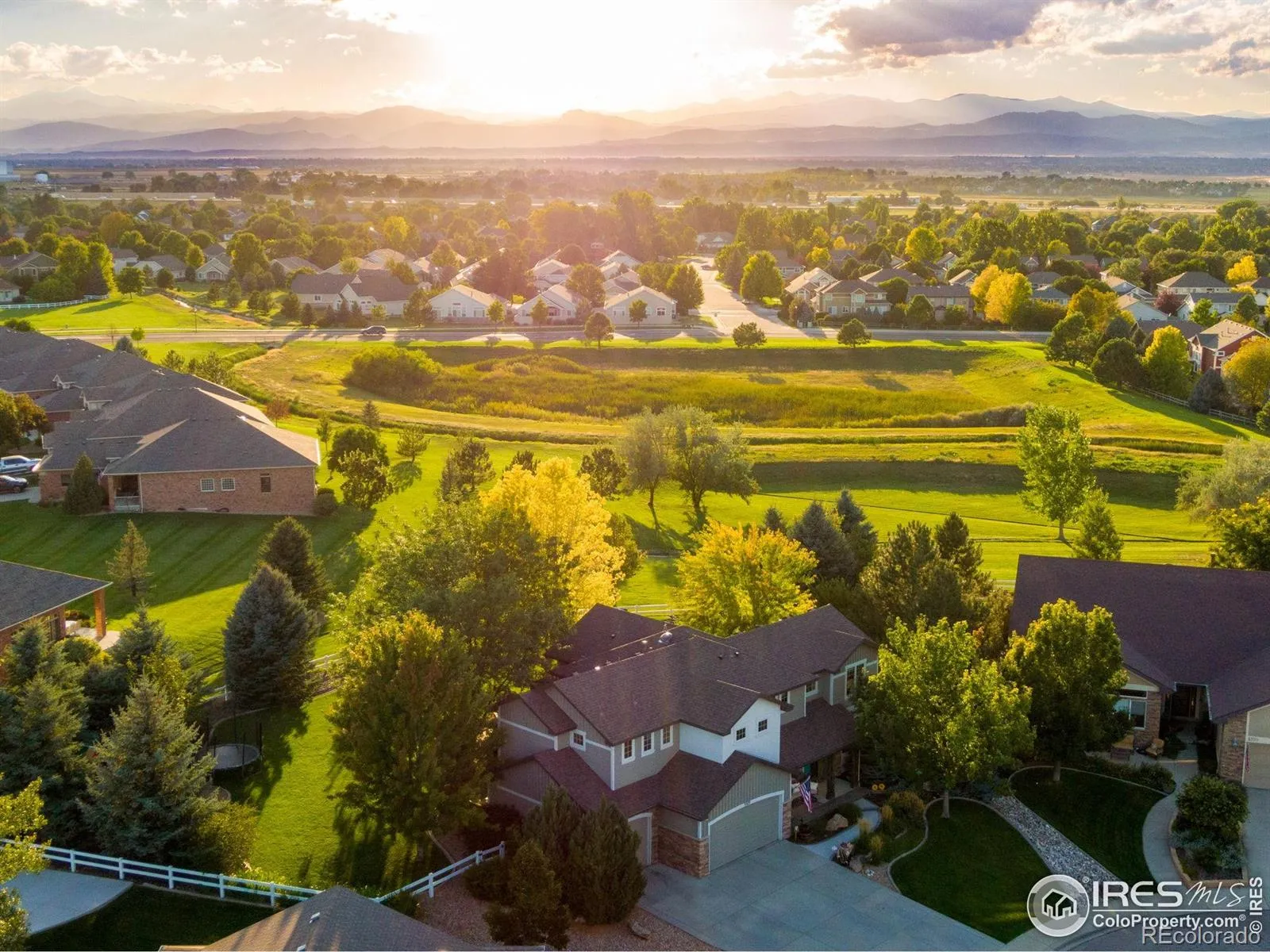 Welcome to your oasis in Windsor with VIEWS, VIEWS, VIEWS! This high-end home offers both privacy & style, set on nearly a half-acre lot and backing to tranquil open space so you’ll enjoy peace & those amazing foothill views of both Horsetooth Rock and Longs Peak. This custom single-family home in Highland Meadows with 5 bedrooms, 4.5 baths, and ~4,772 sq ft was custom-crafted by Stonebrook Homes. Entertain with ease: the large kitchen boasts an island, butlers pantry, dbl oven and sinks, walk-in pantry and opens to the vaulted great room! Outside entertain on the trex deck with built-in seating that is made for gatherings. Spacious great room with a stone fireplace, a breakfast nook and dining room, and a study on the main floor. Upstairs, the layout is thoughtful – private primary retreat, secondary bedrooms with Jack n Jill baths, and convenient upstairs laundry. Bonus: the finished basement includes a wet bar with beverage fridge, rec room, gaming/play areas, and 5th bedroom with 3/4 bath that make this home a perfect blend of elegance and functionality. Oversized 3 car garage, outdoor barrel sauna, and great storage and more extras that make this house truly a fabulous home!!!