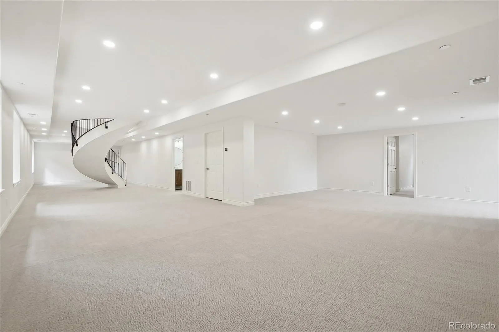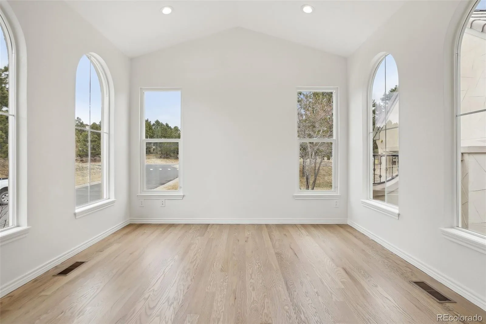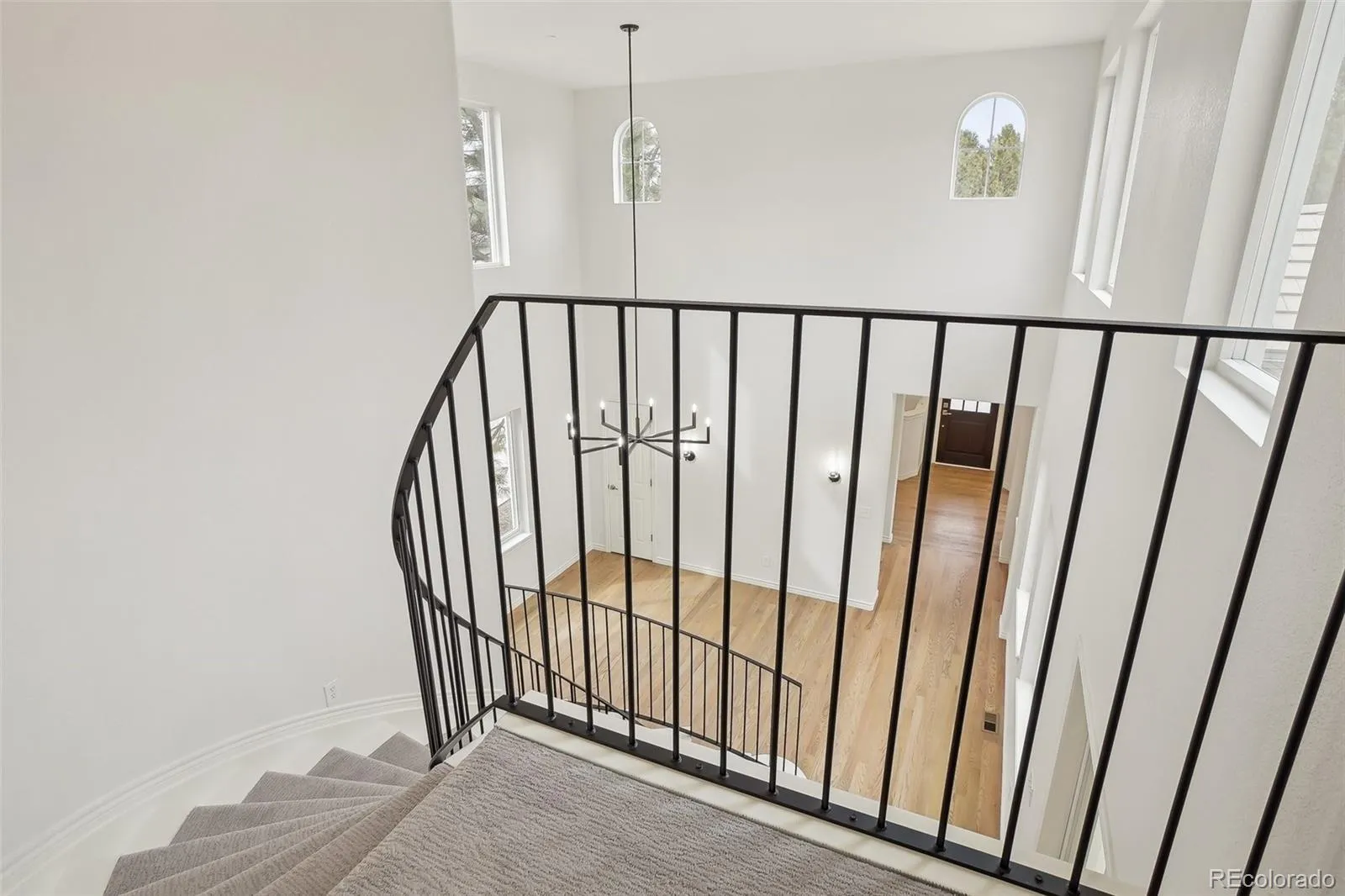 Welcome to 5035 Vermillion Dr. Entering the home, you’ll see the quiet front porch and new custom front door. Once inside, you will love the refinished solid wood floors and completely updated paint throughout. Inside the entry, you’ll find a private office on the left with double glass doors, to the right features a front living room that can double as a quiet reading area. As you continue through the main hall, the 2-story formal dining room with hugel chandelier anchors the space. While in the dining room you’ll look out to the partially covered courtyard, great for enjoying a morning coffee, and features a small area of artificial grass pad for your furry friends. Passing the beautiful circular staircase with new custom iron rails, you get to the back of the home where you’ll find a huge kitchen, fully updated with quartz counter, new appliances, new lighting and complete with a butlers pantry. The kitchen is fully open to the large 17’x17′ family room centered around a stunning custom mantle and fireplace, complete with vaulted ceilings and wired for surround sound. Look beyond the family room to the newly refinished back deck, complete with an electric awning. make sure to check out the views of Castle Rock beyond the open space. The main floor primary suite offers a spacious bedroom with sitting area and a newly Newly custom bathroom with His & Hers closets, a free-standing tub, and a stunning double shower. Head upstairs, you’ll enjoy the spiral staircase through the home and see two bedrooms and a jack-and-jill bathroom. The basement has been finished with a huge great room, two bedrooms, and a full bath. There is space to add a bar if you choose to make the space your own. The home is perfectly nestled in a quiet, well-treed space. Life in the Village includes access to the Cayon Club Sports Complex, Summit Club Pool, and Village Lake Fitness Center. Enjoy walking through the 13 miles of paved and groomed nature trails that surround the community.