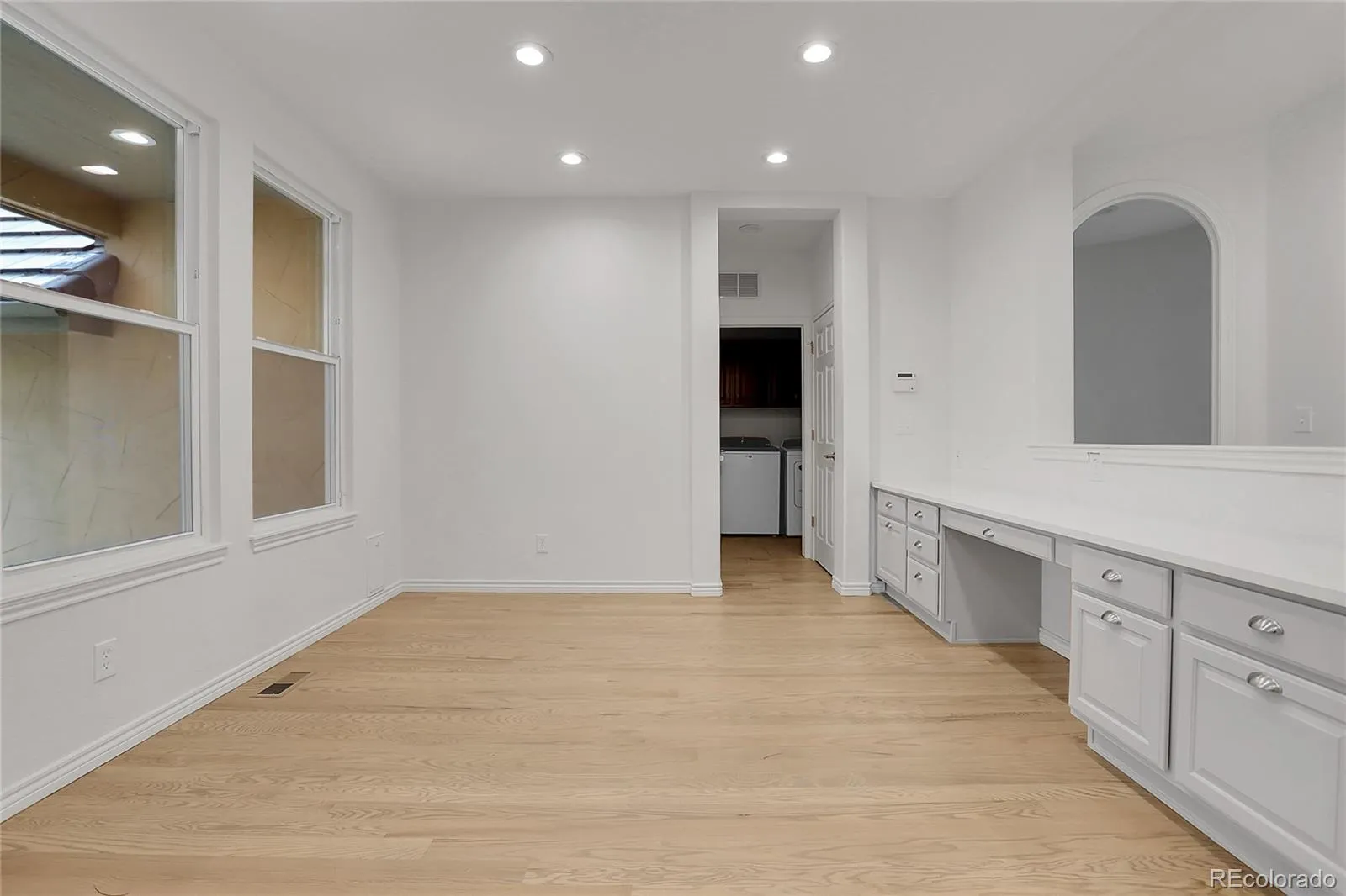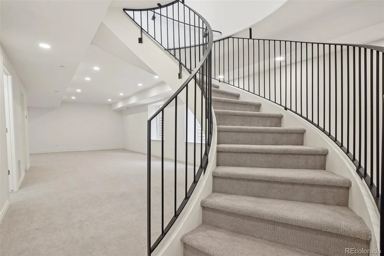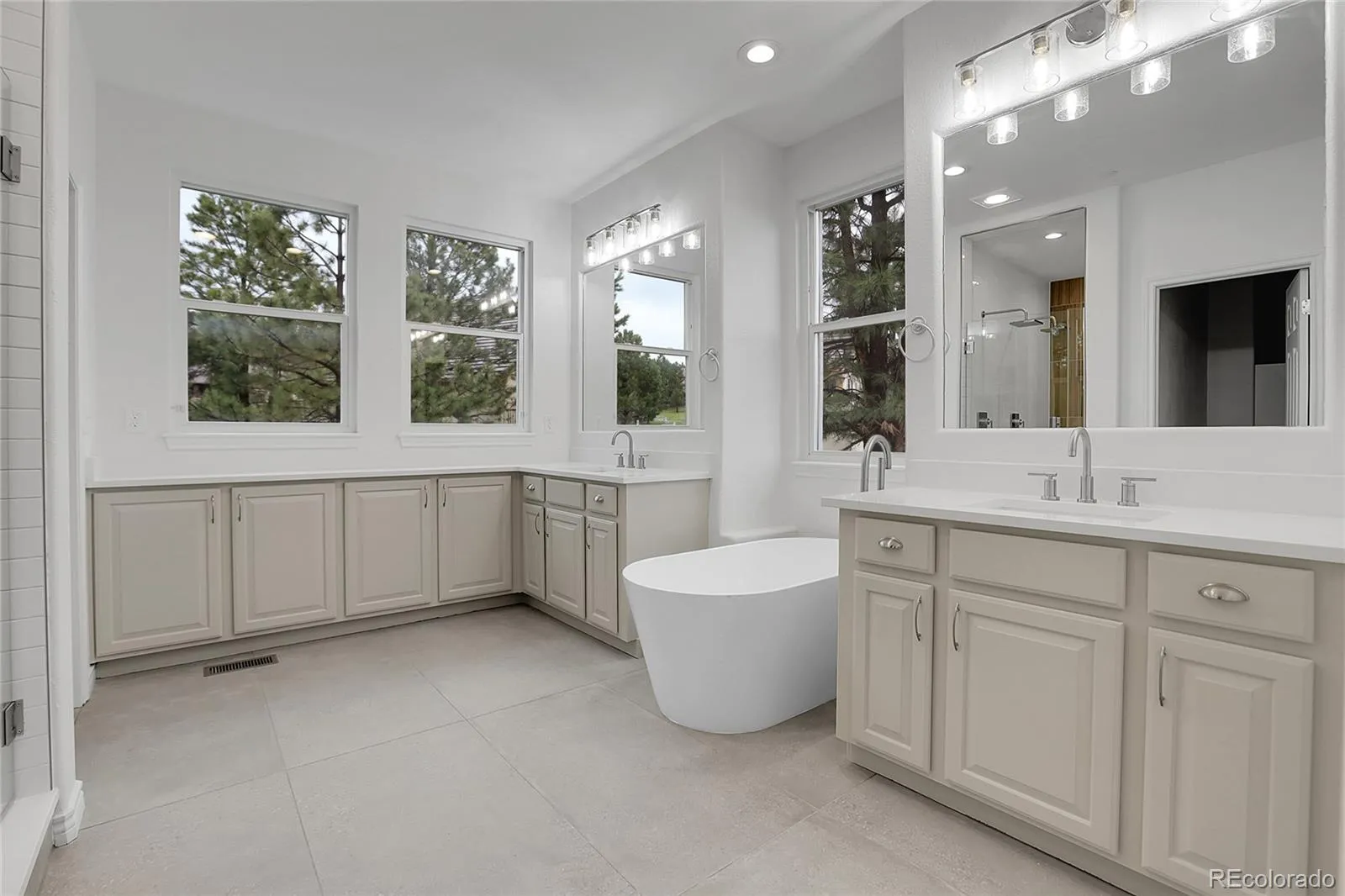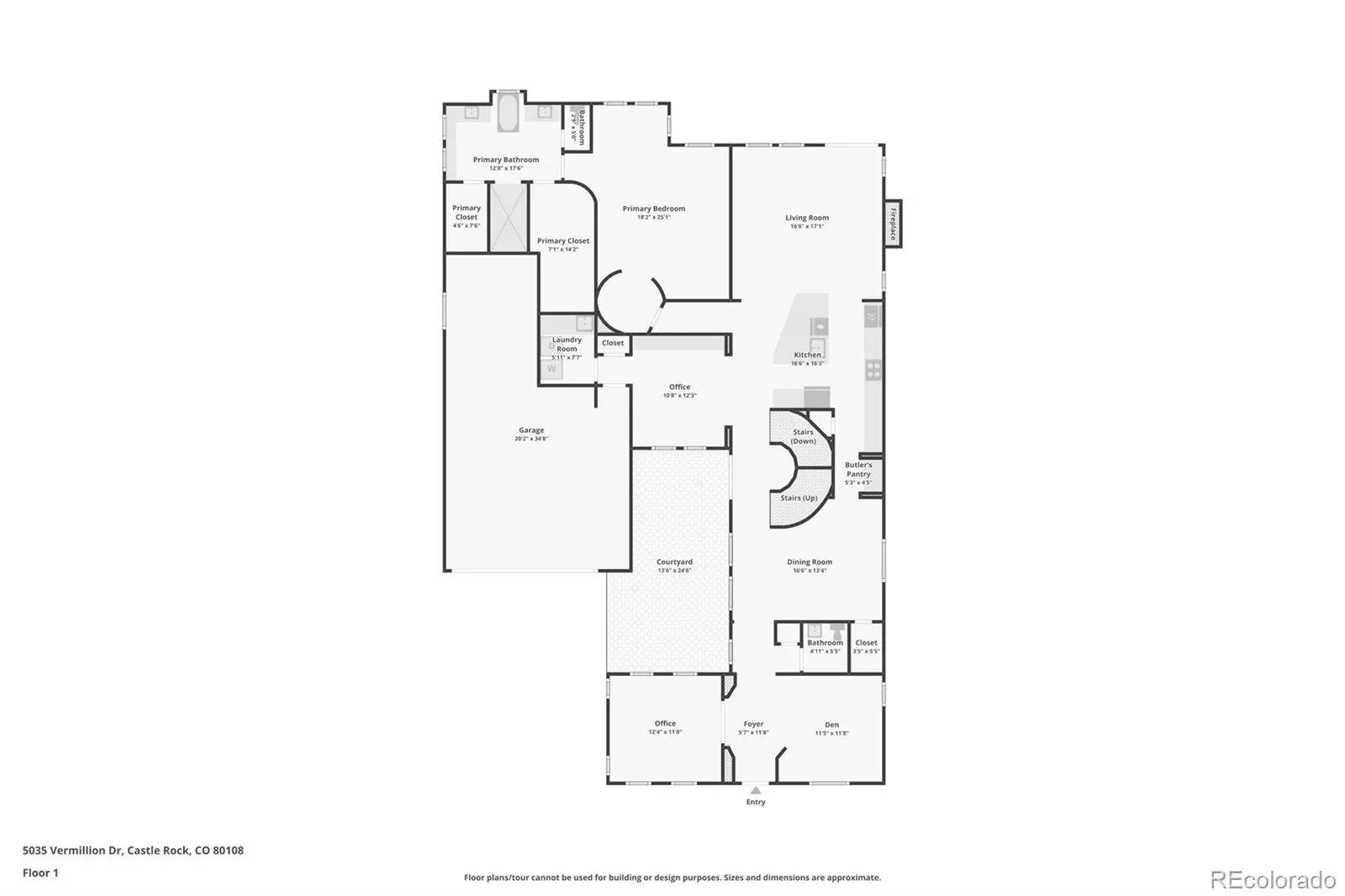 Welcome to 5035 Vermillion Dr. Entering the home, you’ll see the quiet front porch and new custom front door. Once inside, you will love the refinished solid wood floors and completely updated paint throughout. Inside the entry, you’ll find a private office on the left with double glass doors, to the right features a front living room that can double as a quiet reading area. As you continue through the main hall, the 2-story formal dining room with hugel chandelier anchors the space. While in the dining room you’ll look out to the partially covered courtyard, great for enjoying a morning coffee, and features a small area of artificial grass pad for your furry friends. Passing the beautiful circular staircase with new custom iron rails, you get to the back of the home where you’ll find a huge kitchen, fully updated with quartz counter, new appliances, new lighting and complete with a butlers pantry. The kitchen is fully open to the large 17’x17′ family room centered around a stunning custom mantle and fireplace, complete with vaulted ceilings and wired for surround sound. Look beyond the family room to the newly refinished back deck, complete with an electric awning. make sure to check out the views of Castle Rock beyond the open space. The main floor primary suite offers a spacious bedroom with sitting area and a newly Newly custom bathroom with His & Hers closets, a free-standing tub, and a stunning double shower. Head upstairs, you’ll enjoy the spiral staircase through the home and see two bedrooms and a jack-and-jill bathroom. The basement has been finished with a huge great room, two bedrooms, and a full bath. There is space to add a bar if you choose to make the space your own. The home is perfectly nestled in a quiet, well-treed space. Life in the Village includes access to the Cayon Club Sports Complex, Summit Club Pool, and Village Lake Fitness Center. Enjoy walking through the 13 miles of paved and groomed nature trails that surround the community.
