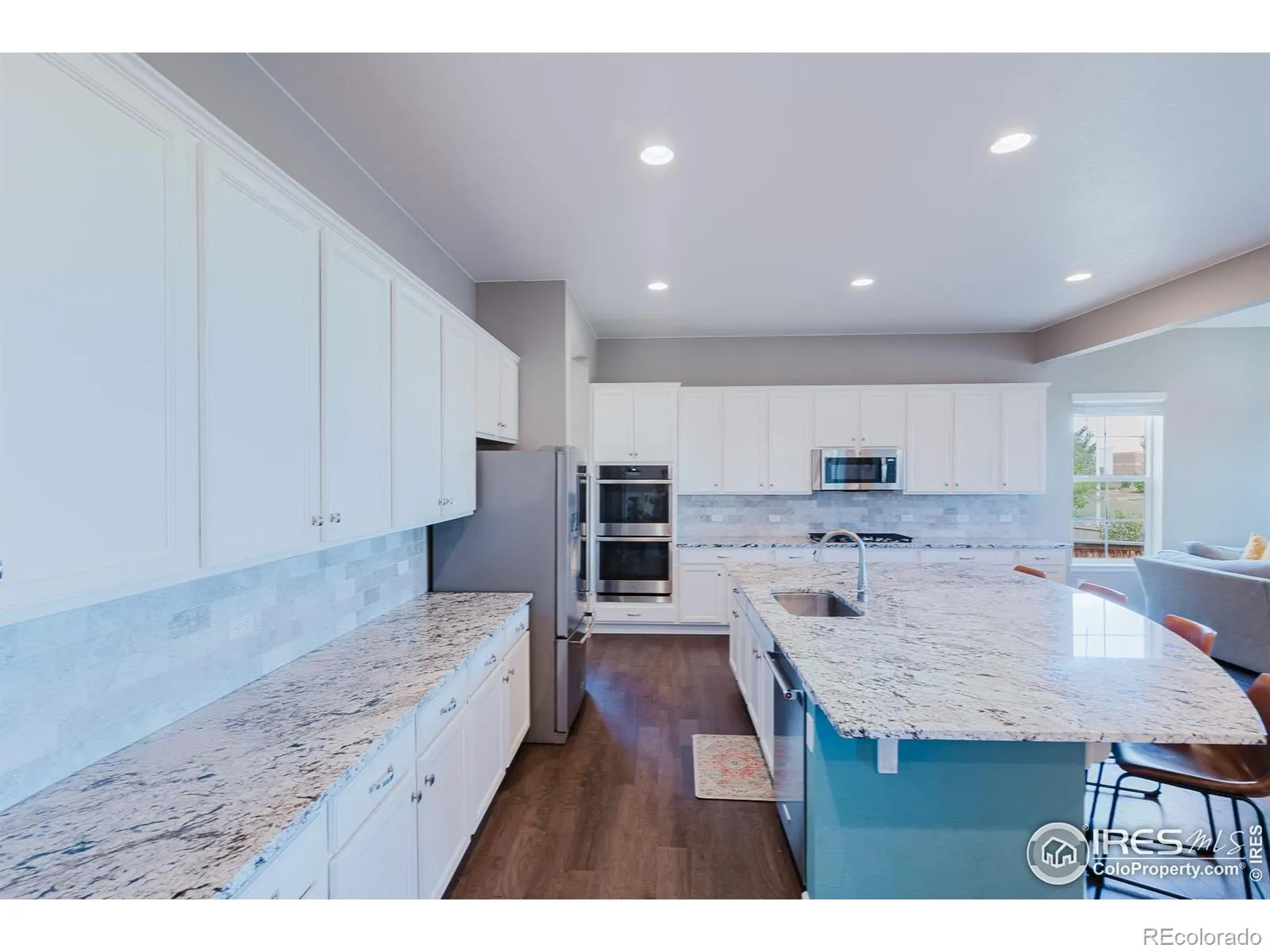 Amazing find in south Longmont with over 5000 SF finished and no one directly behind you! This 2019 home features so many upgrades, including a huge kitchen island that can seat 4-5, slab granite countertops, high ceilings, hardwood floors and mountain views. Main level has hardwood floors throughout with a large mudroom with built ins at the entry, fantastic chef’s kitchen with walk-in pantry, dining room, huge living room, powder room AND a main level bedroom with en suite 3/4 bath. Upstairs you’ll find 4 bedrooms, 3 baths, a laundry room and a loft area with spectacular mountain views. The primary has a grand 5-piece bath with walk-in closet, 2 additional bedrooms share a jack-and-jill bath, and the 4th bedroom has a hall bath. The fully finished basement offers an additional 1700 SF of living space with another bedroom, full bathroom, rec room and exercise area. 2 separate garages allow for parking 2 vehicles and plenty of extra room for bikes, skis and toys. The back yard features a covered patio, gas fire pit, and plenty of grass for kids or pets. Close to 287, Costco, dining, shopping, and everything Longmont has to offer. The sellers have LOVED living in this community!