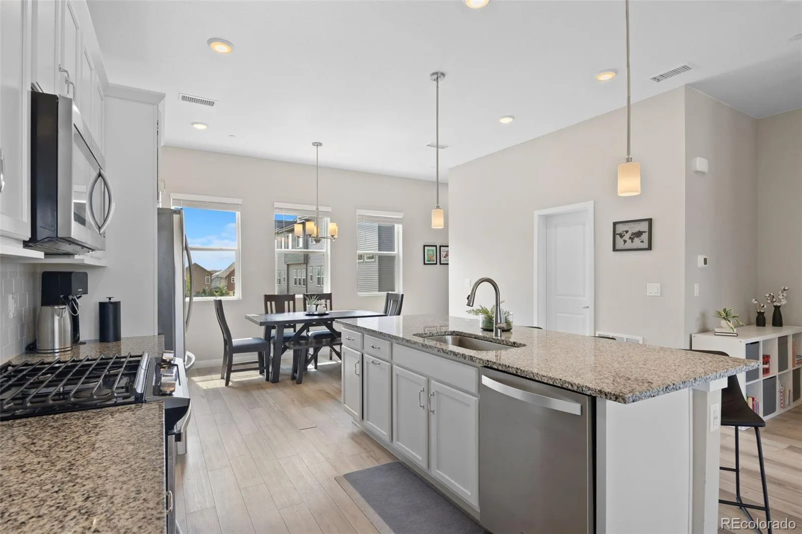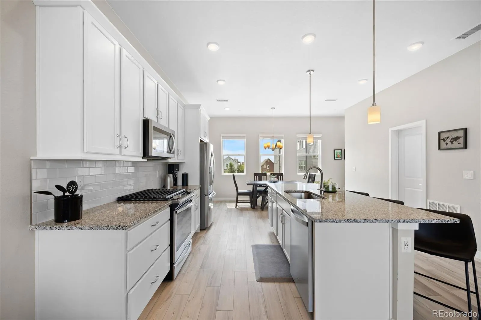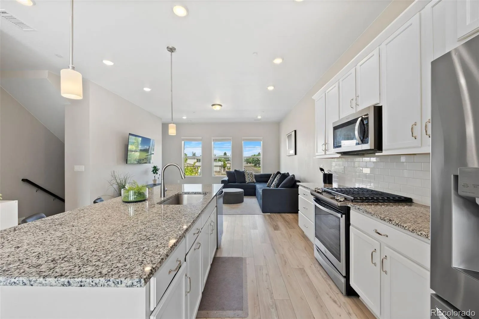The chef-inspired kitchen is the centerpiece of the home, featuring a generous island, gas range, walk in pantry and granite countertops—perfect for both everyday living and entertaining. The open-concept living area offers seamless flow for gatherings, while private retreats are thoughtfully placed on the upper levels. The primary suite offers spa-like luxury with dual vanities and white quartz countertops, creating a serene space to unwind. Additional highlights include whole home water softener, an attached two-car garage, a low-maintenance HOA, and smartly designed finishes throughout. Located in Denver’s Midtown neighborhood, this property is a short distance to parks, open space, and miles of trails, with neighborhood favorites like Early Bird Restaurant and Bruz Brewery just around the corner. Combining comfort, functionality, and convenience, this residence offers an unparalleled opportunity to experience modern Colorado living. THIS HOME QUALIFIES FOR SPECIAL FINANCING AND A LENDER CONCESSION FOR UP TO $7,000 OF THE LOAN. INQUIRE WITH LISTING AGENT or CALL RICK DEMARIO AT SUNFLOWER BANK TO LEARN MORE: 920-450-3180.