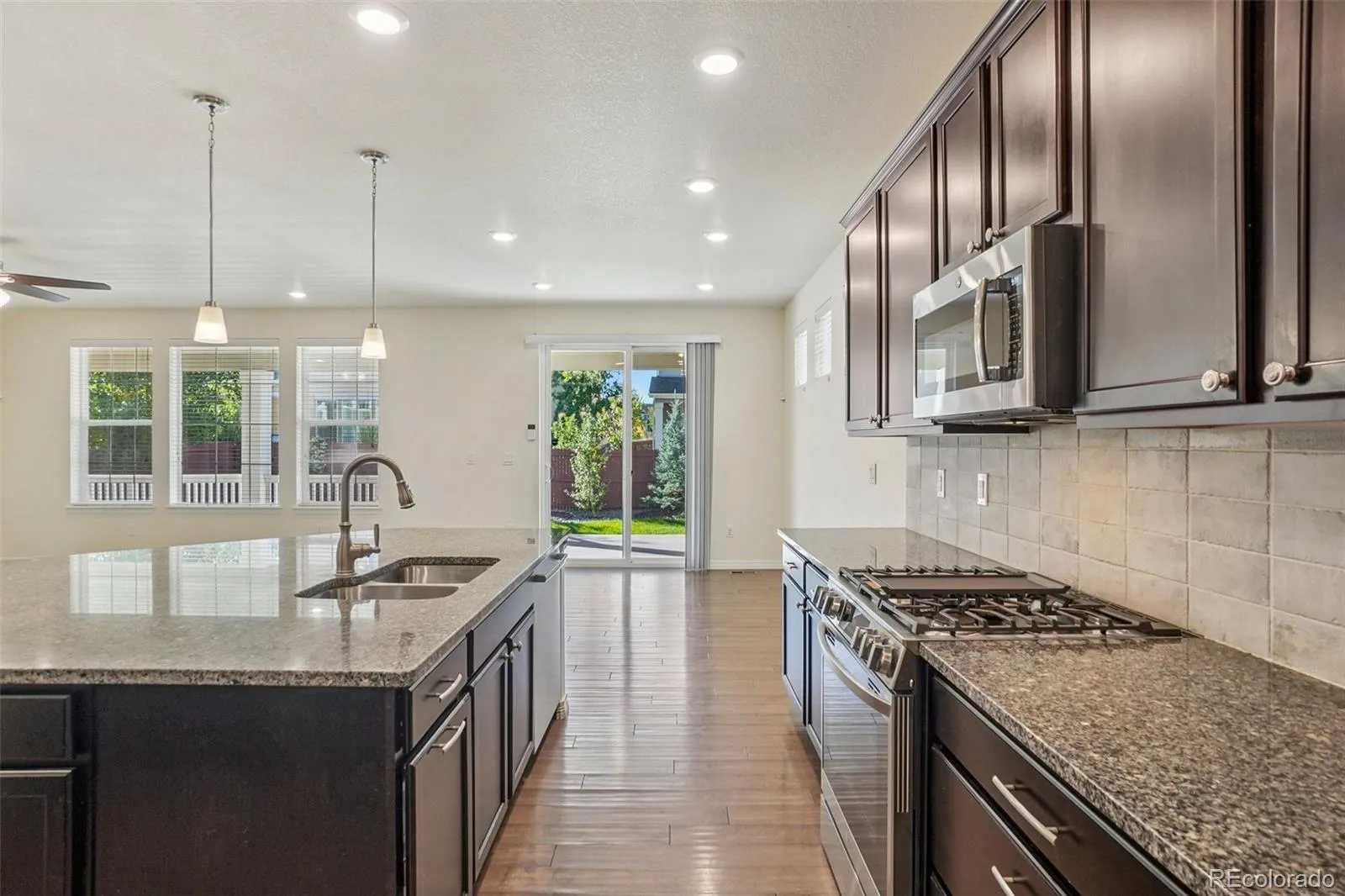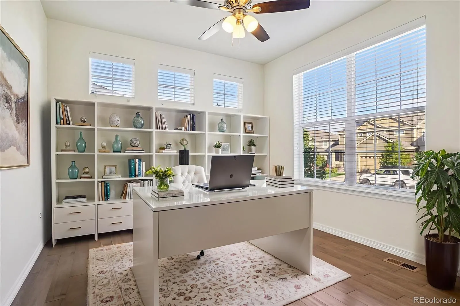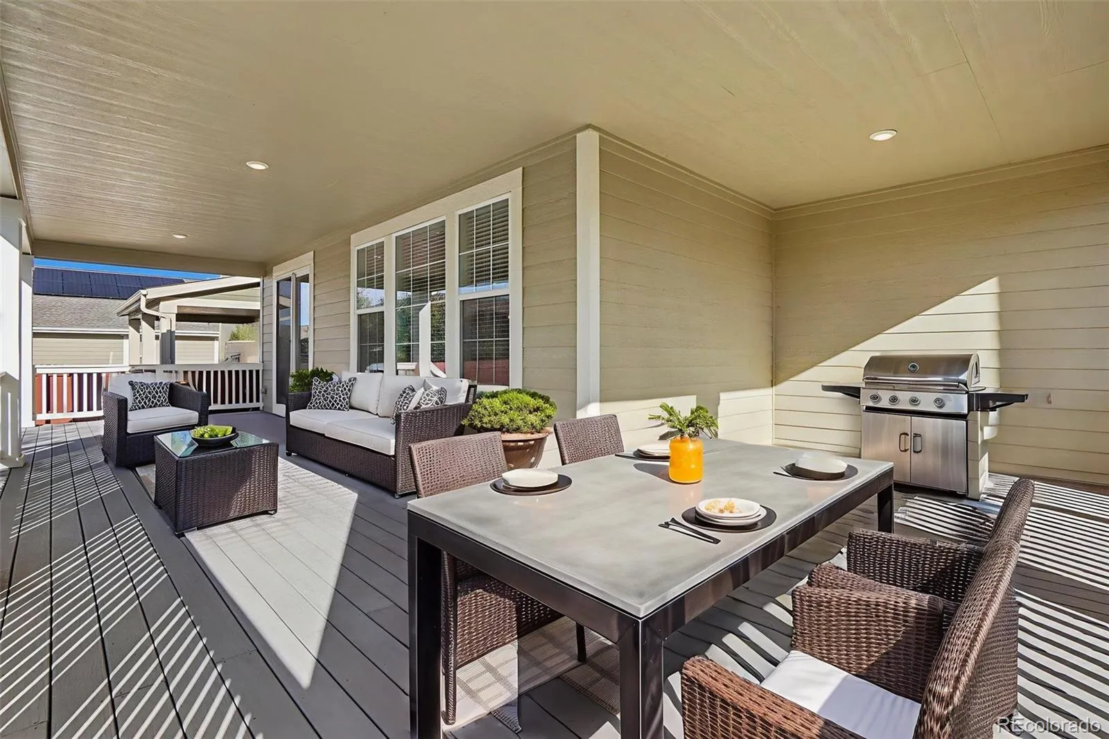 This stunning, well-loved home with a three-car garage is spotlessly clean and move-in ready. The light, bright, and open floor plan features a formal dining room, butler’s pantry, and a main-floor office. The spacious kitchen includes granite countertops, stainless steel appliances, a large island, abundant cabinetry, and a pantry, perfect for everyday living and entertaining. Upstairs, every bedroom boasts a private bathroom (one is a Jack and Jill), ceiling fans, and custom closet systems. A spacious loft provides the ideal space for a game room, entertainment area, or additional office. The partially finished basement offers even more living space with a bedroom, bathroom, and two flexible living areas—one perfectly suited for a media room. Enjoy Colorado living outdoors on the covered wraparound deck overlooking professionally landscaped grounds. With new carpet, a neutral color palette, and thoughtfully designed spaces, this home truly feels like new. Located just a short walk to parks, playgrounds, and trails, and minutes from schools, shopping, and I-25, this home combines comfort, convenience, and community.