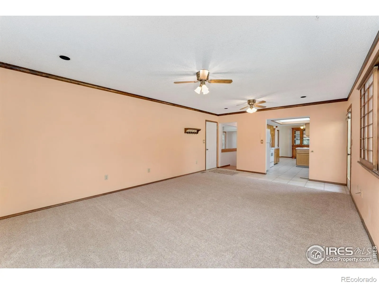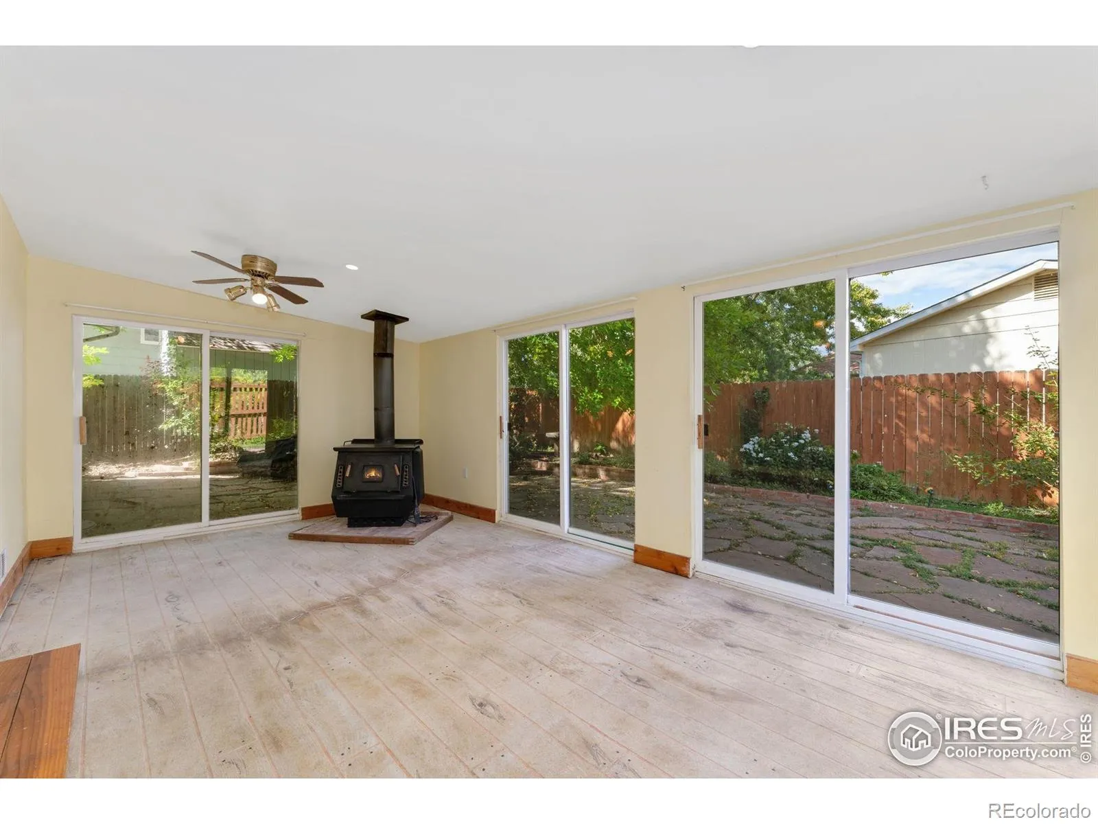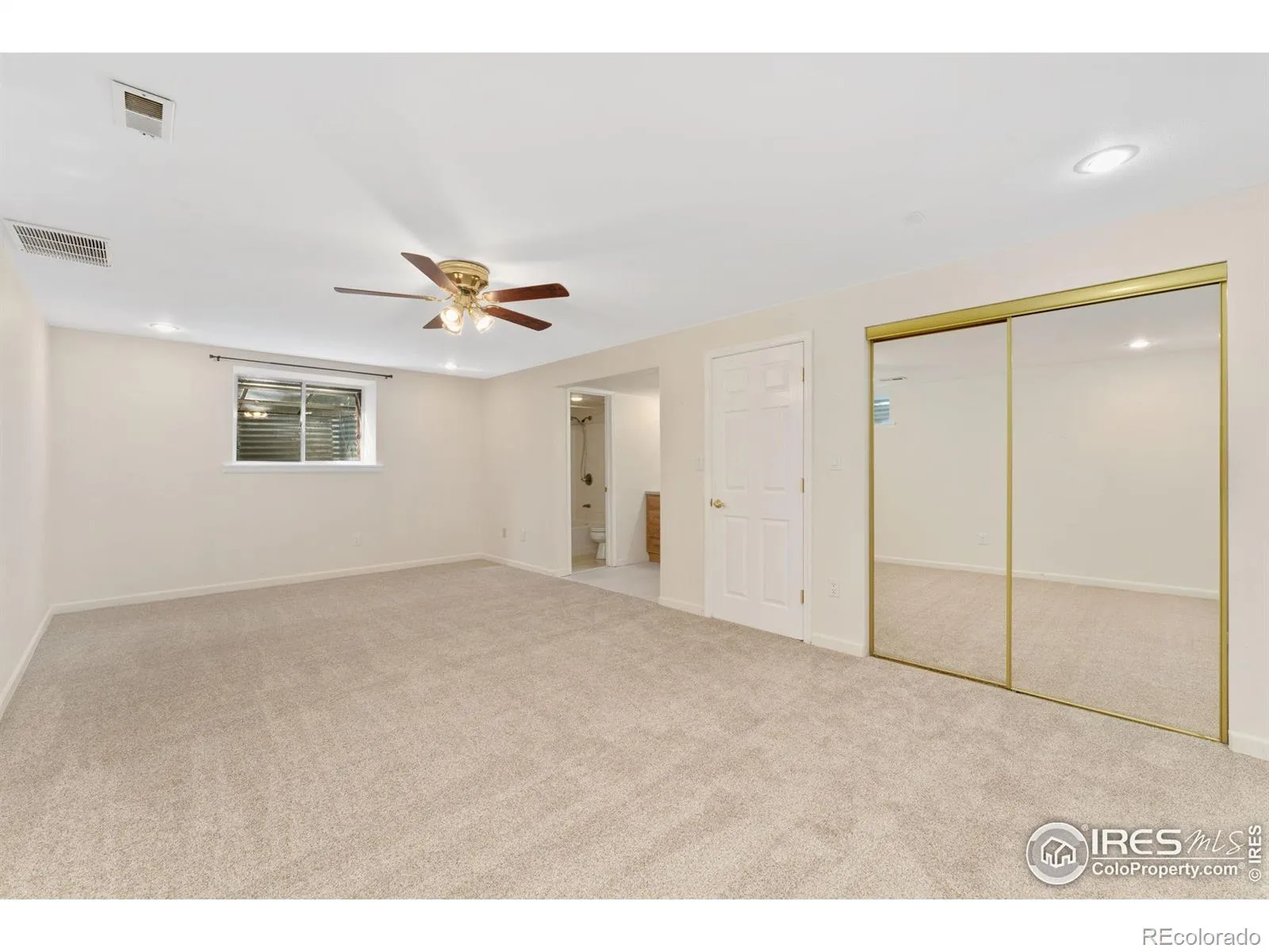 Seize the opportunity to own a magnificent ranch home situated on a corner lot in a peaceful cul-de-sac in southwest Loveland. This sprawling property boasts substantial square footage, NEW CARPETS throughout, and is designed for comfort and versatility with plenty of room for everyone. As you enter, you will love the charming built-in display case in the entryway. Gather in the living room, where a large picture window frames the front yard views. The bright and spacious kitchen flows effortlessly into the family room, making it ideal for entertaining guests. Just off the dining area, a sunroom offers four-season enjoyment with the warmth of a wood-burning stove. The main floor has three bedrooms, including the primary suite with dual sinks, a large walk-in closet, and private access to the backyard patio. The two other guest rooms share a Jack-n-Jill bath. Downstairs, the basement includes a large rec room, an additional bedroom with a full ensuite bath, and two unfinished rooms that can be used for storage or future expansion. Laundry hookups are also available on both the main level and in the basement. Soak up the sun in your fenced backyard with a stone-paved patio and mature shade trees. This ranch home offers a ton of potential and serious value that is well worth every penny, making it a must-see for anyone looking for a property in a fantastic Loveland location. No HOA!