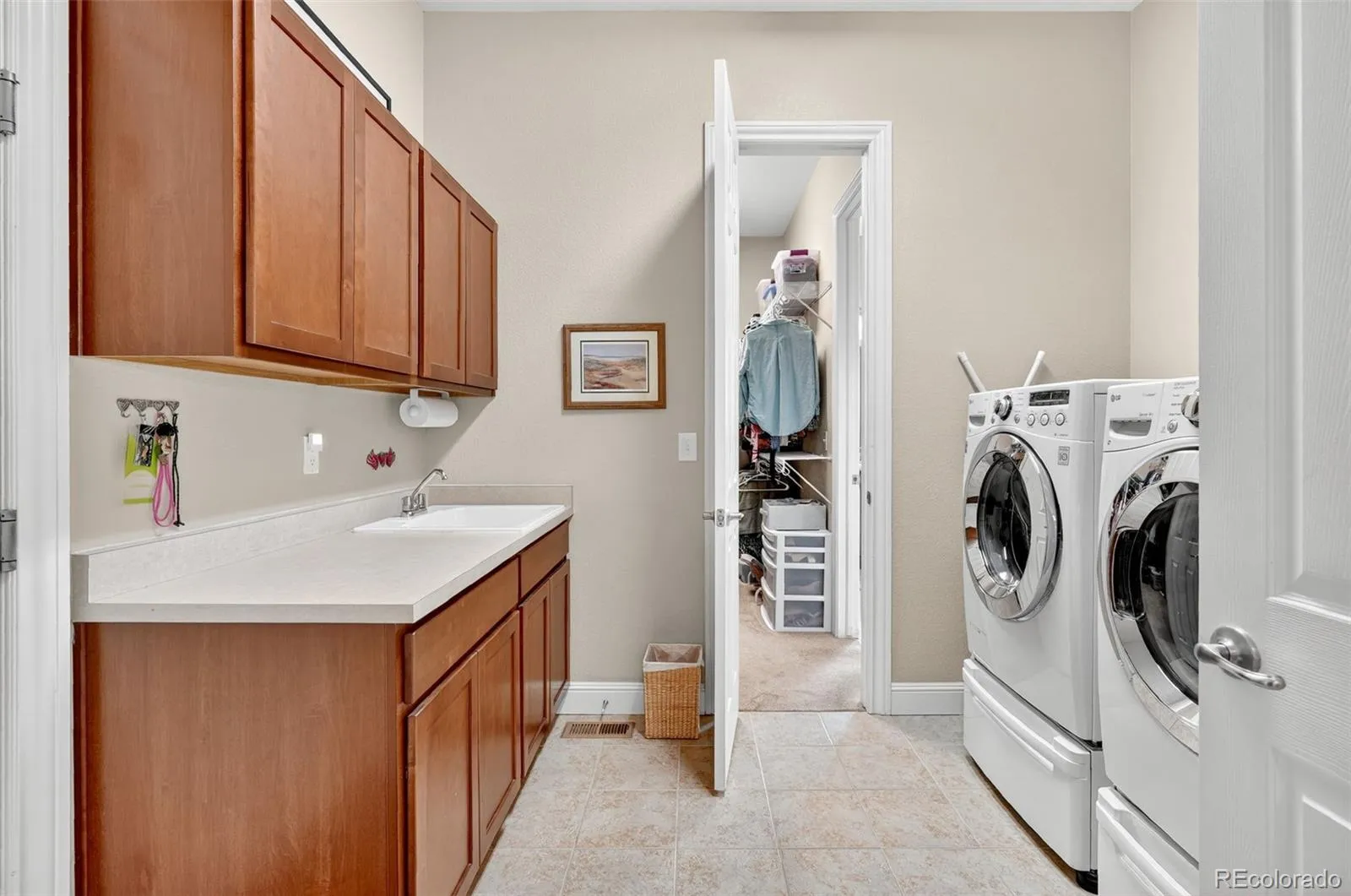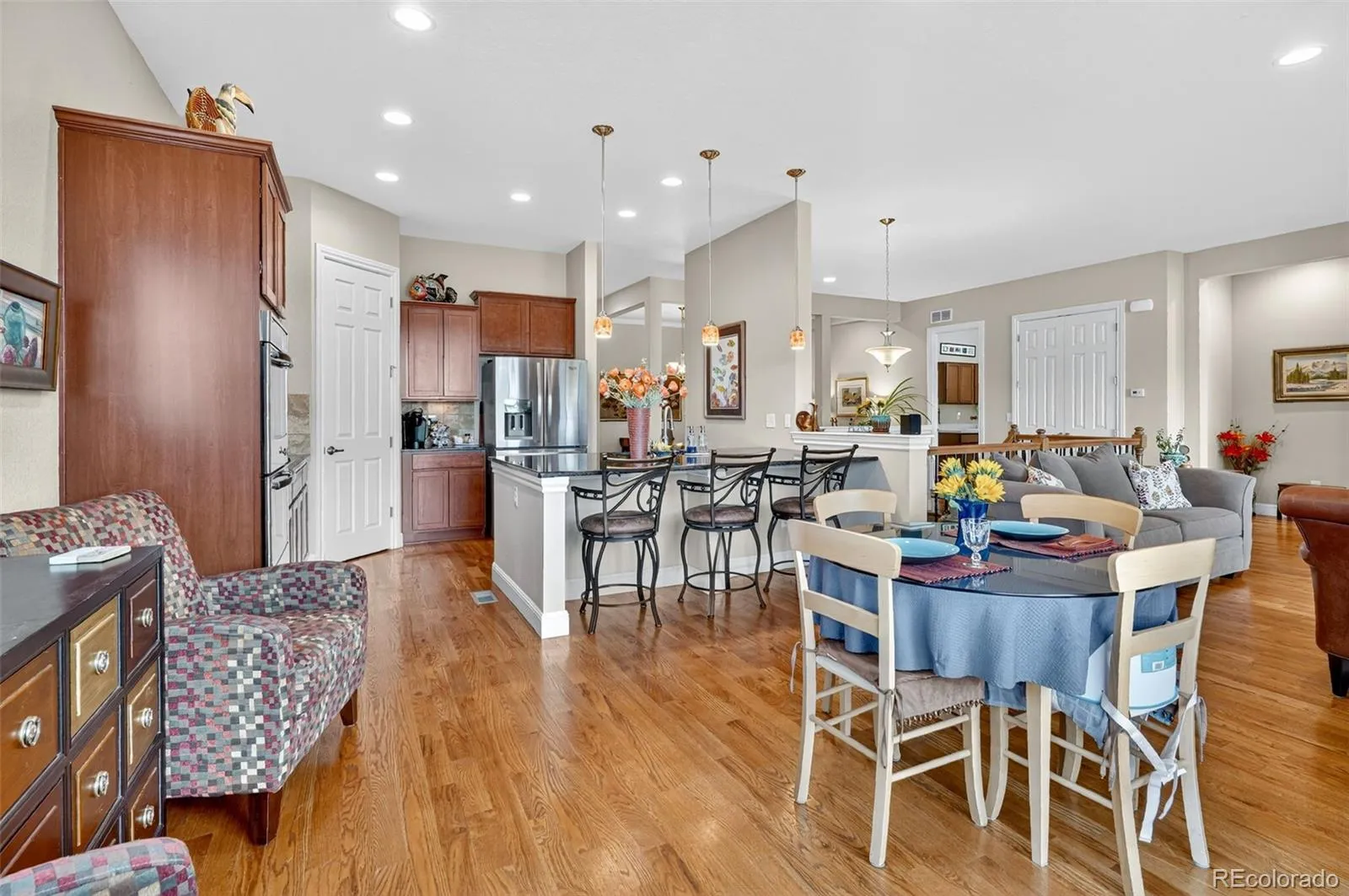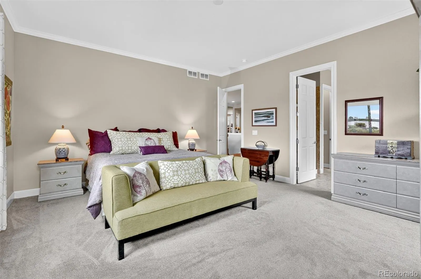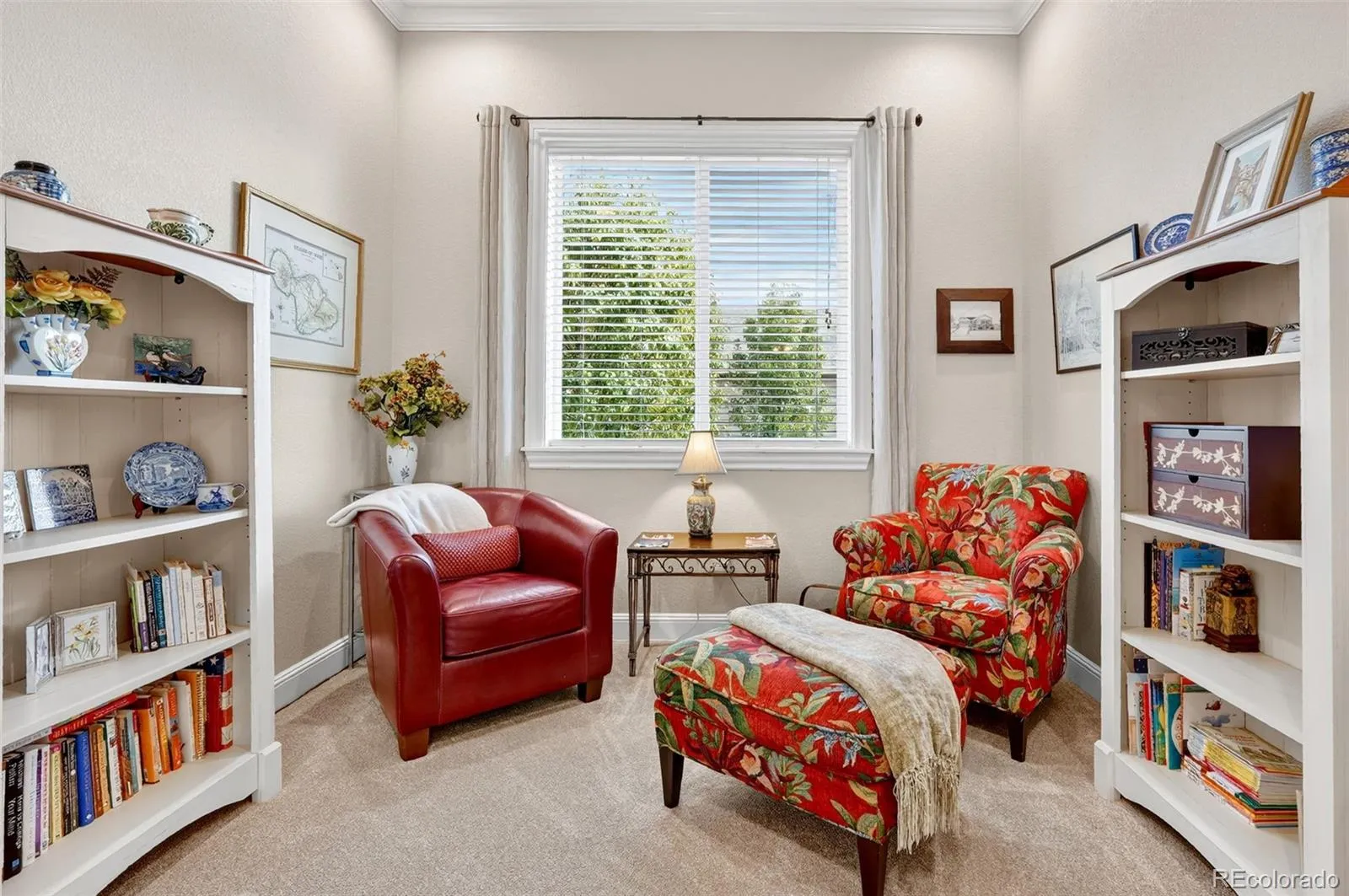 Lake and foothills views define this home. From the kitchen, living room, and primary suite, Broad Lake stretches out in full, framed by native grasses and open sky. Few homes in the neighborhood back directly to the water, and in Colorado, true waterfront living is a rare privilege. The ranch-style layout is practical, open and inviting: three bedrooms, an office, formal dining room, large living area with breakfast nook on the main level, including a spacious primary suite with a large walk-in closet and generous en suite bath. The recently finished lower level is the perfect layout, with large entertaining space, a wet bar, two additional bedrooms plus a beautiful 3/4 bath. Custom motorized shades, a three-car garage, and meticulous maintenance throughout reflect the same attention given to every detail of the home. The backyard is an oasis, with an oversized stamped concrete patio, a private hot tub, manicured gardens and more, but it is the connection to the lake—the stillness, the view, the sense of space—that makes this property unique and extraordinary.