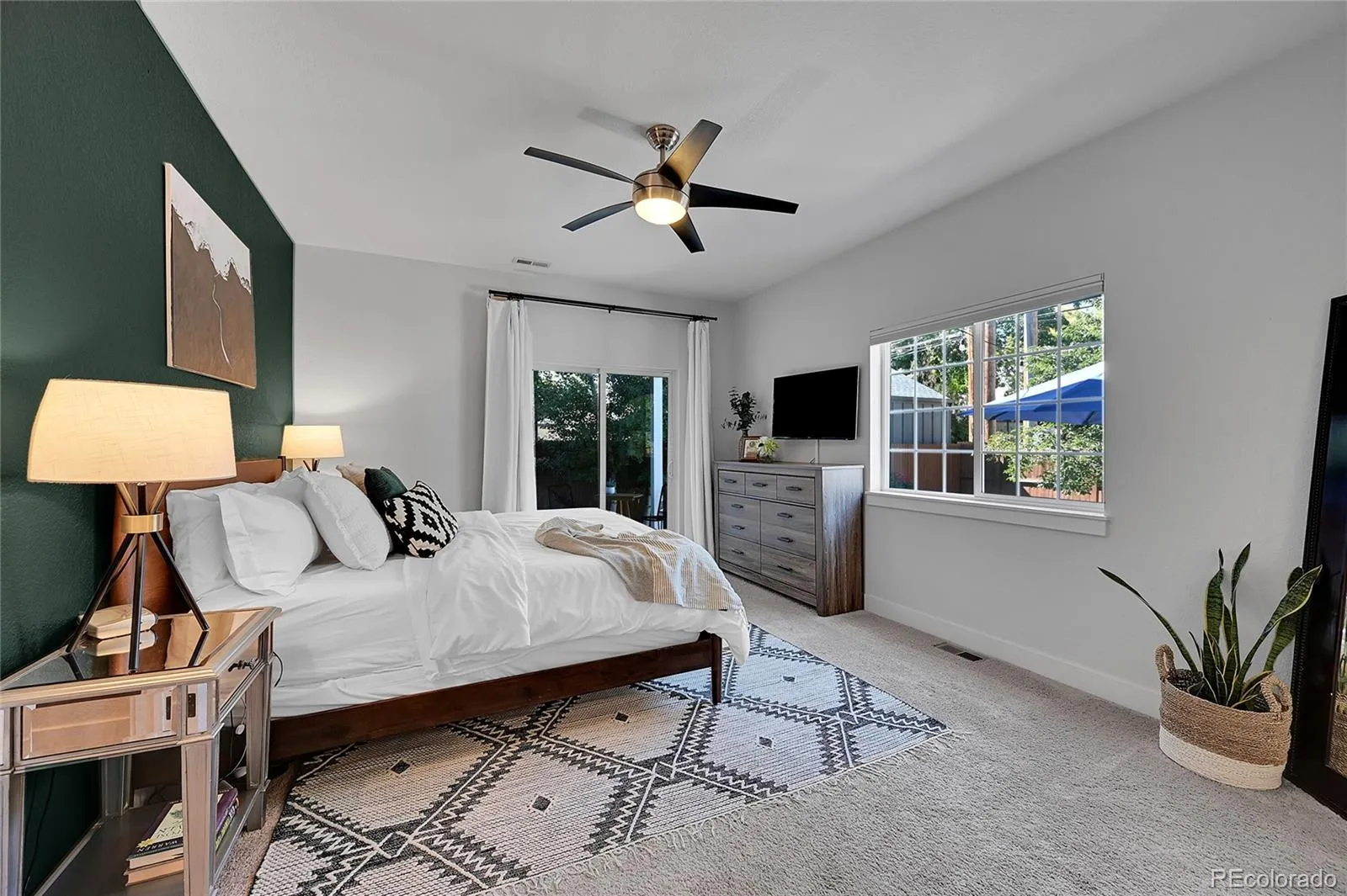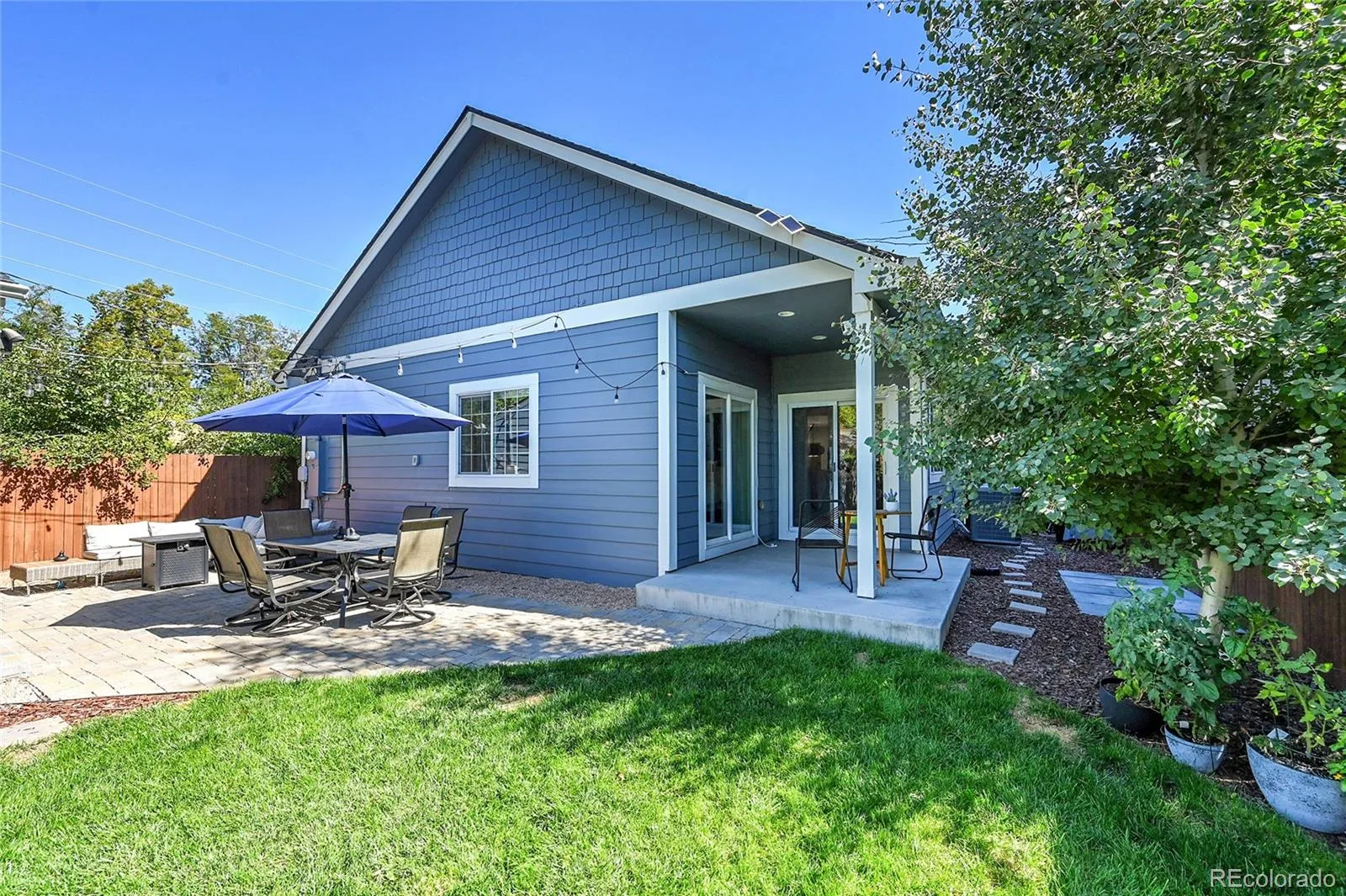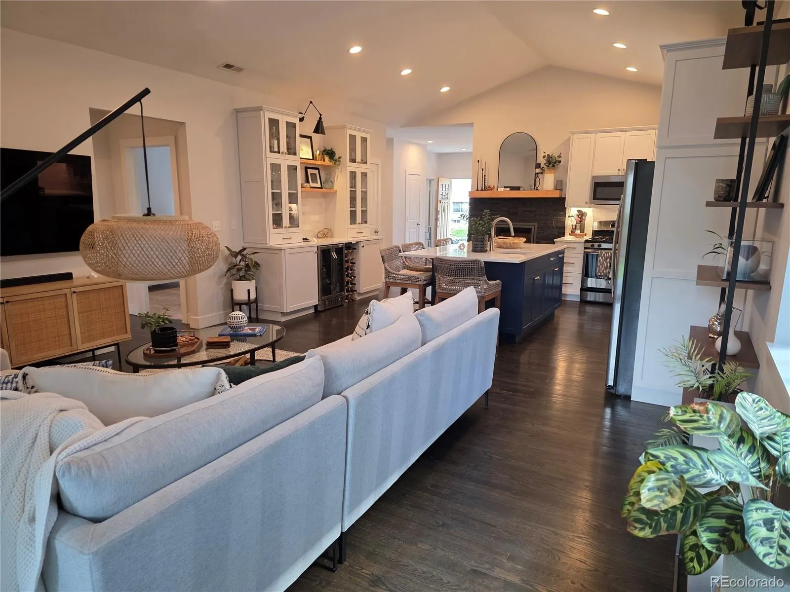 BEST DU LOCATION!! Gorgeous total remodel with rare 2 car garage! Open concept living with vaulted great room, beautiful kitchen with newer expanded granite island/beverage fridge with water line for future ice machine/under cabinet lighting/2nd sink/SS appliances/fireplace with new mantels/new bar area and butlers pantry/all gleaming wood flooring! Spacious sunny living/dining room with fireplace, 9ft ceilings, opens to pretty front patio. Rare 3BD 3 baths on the main floor! Luxury primary suite opens to private patio! 2nd bedroom with ensuite bath. 3rd spacious bedroom with bath in hall. Lower level bedroom has egress window and can also be a great gathering space for your family .Basement can easily be converted to one big room! Walk out to a private covered patio with a handsome paved patio, lovely lawn and full privacy fence. Many updates including new designer paint, enlarged expanded paved driveway/LED lighting upgrade/approx. $25,000 replaced HVAC with AC, furnace, and humidifier/new ductwork/updated sewer line/new outside paint in 2025, two car garage, EV garage charger, plus space to park a 3rd car in front. Walk a few blocks to Wash Park, Pearl Street fun, steps to light rail, walk to Magness Arena for events and sports, easy scooter ride to South High School, easy walk to bars, restaurants, casual shopping on Evans. Close to Harvard Gulch Park/pool/golf/rec center! Enjoy the best of everything in this beautiful well maintained move in ready home! OPEN HOUSE THIS WEEKEND!