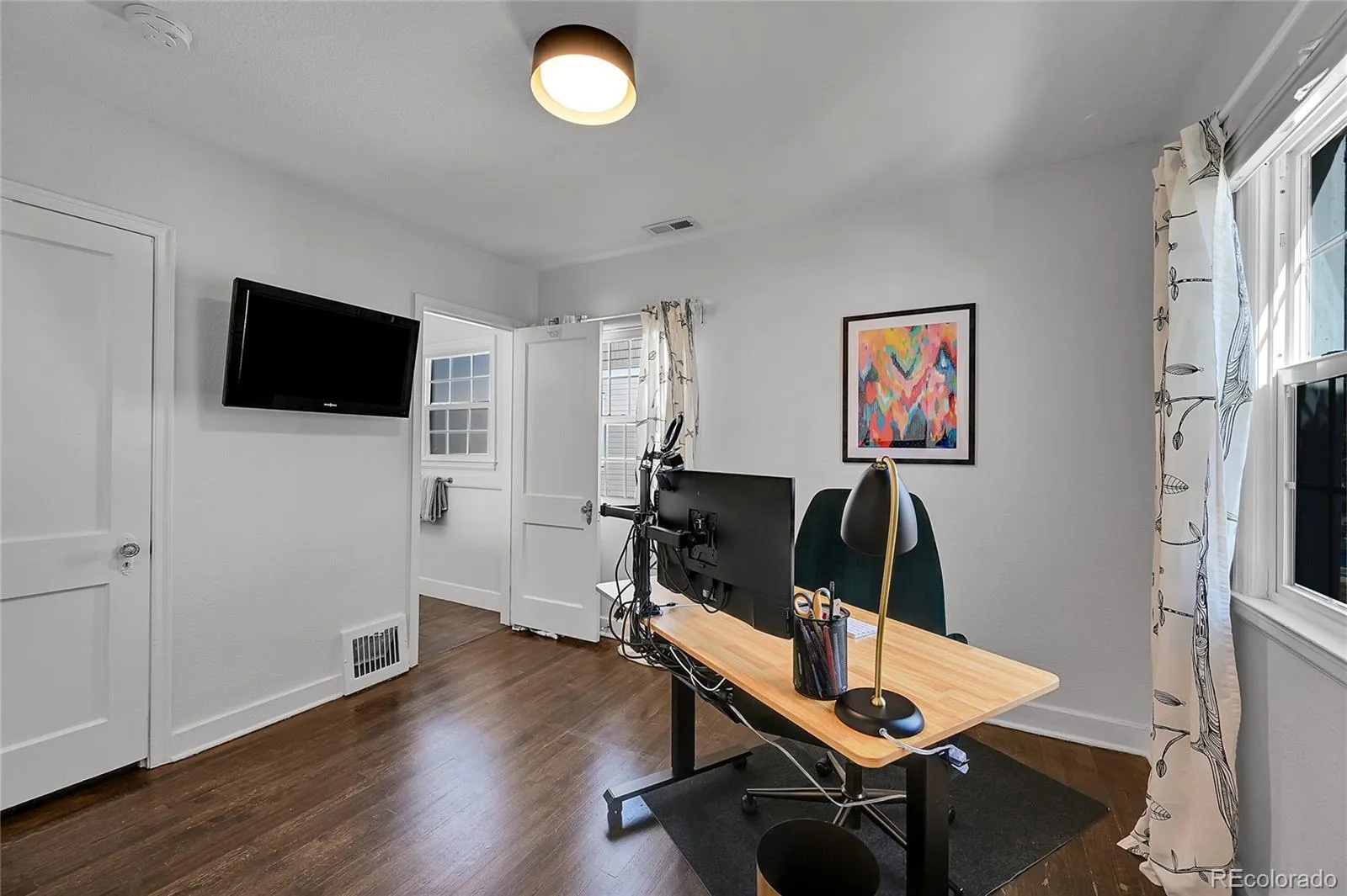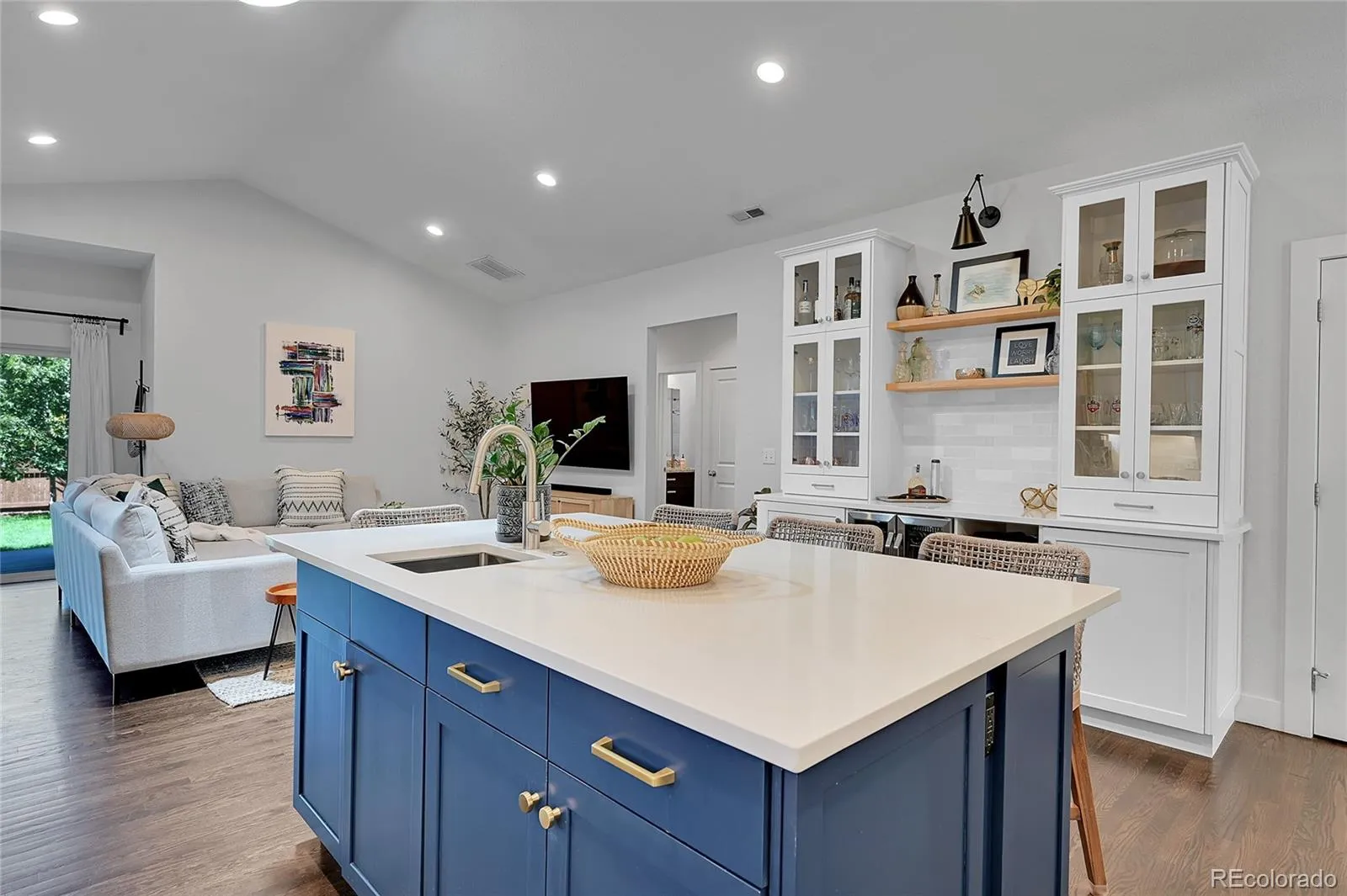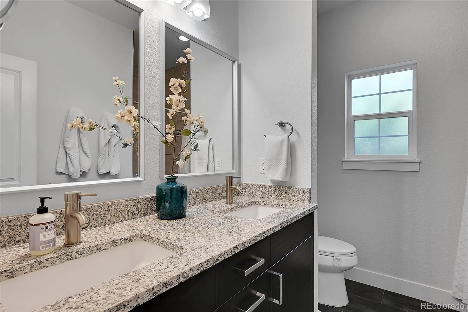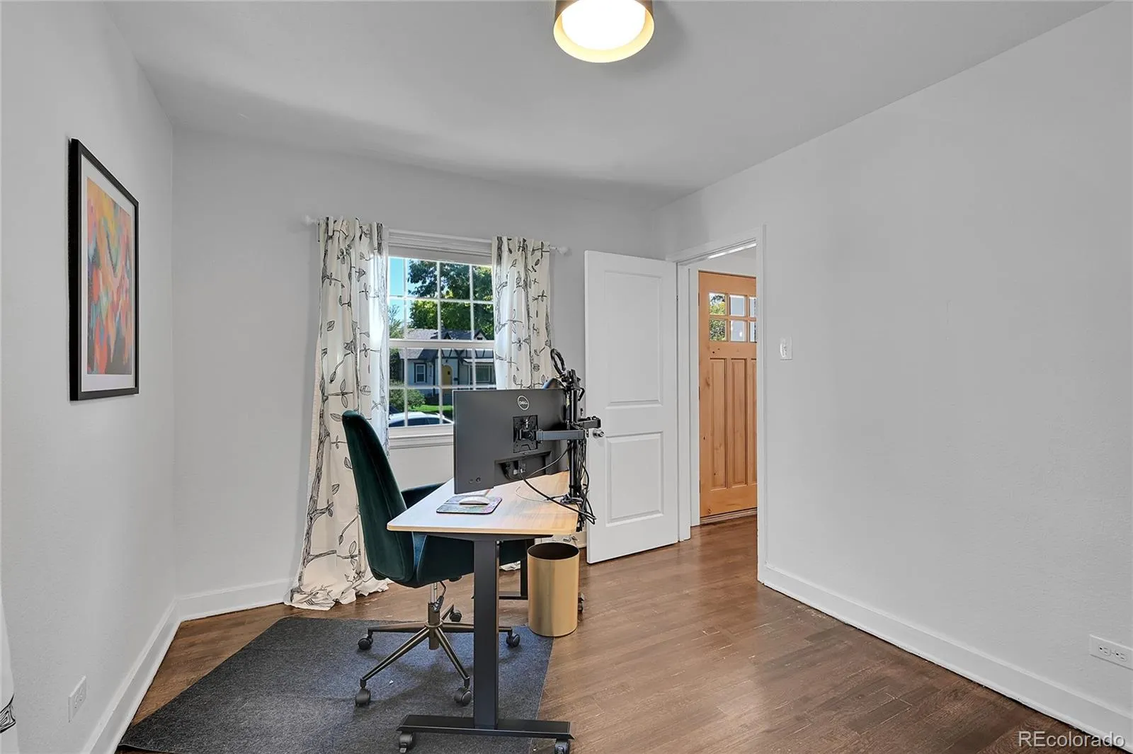 BEST DU LOCATION!! Gorgeous total remodel with rare 2 car garage! Open concept living with vaulted great room, beautiful kitchen with newer expanded granite island/beverage fridge with water line for future ice machine/under cabinet lighting/2nd sink/SS appliances/fireplace with new mantels/new bar area and butlers pantry/all gleaming wood flooring! Spacious sunny living/dining room with fireplace, 9ft ceilings, opens to pretty front patio. Rare 3BD 3 baths on the main floor! Luxury primary suite opens to private patio! 2nd bedroom with ensuite bath. 3rd spacious bedroom with bath in hall. Lower level bedroom has egress window and can also be a great gathering space for your family .Basement can easily be converted to one big room! Walk out to a private covered patio with a handsome paved patio, lovely lawn and full privacy fence. Many updates including new designer paint, enlarged expanded paved driveway/LED lighting upgrade/approx. $25,000 replaced HVAC with AC, furnace, and humidifier/new ductwork/updated sewer line/new outside paint in 2025, two car garage, EV garage charger, plus space to park a 3rd car in front. Walk a few blocks to Wash Park, Pearl Street fun, steps to light rail, walk to Magness Arena for events and sports, easy scooter ride to South High School, easy walk to bars, restaurants, casual shopping on Evans. Close to Harvard Gulch Park/pool/golf/rec center! Enjoy the best of everything in this beautiful well maintained move in ready home! OPEN HOUSE THIS WEEKEND!