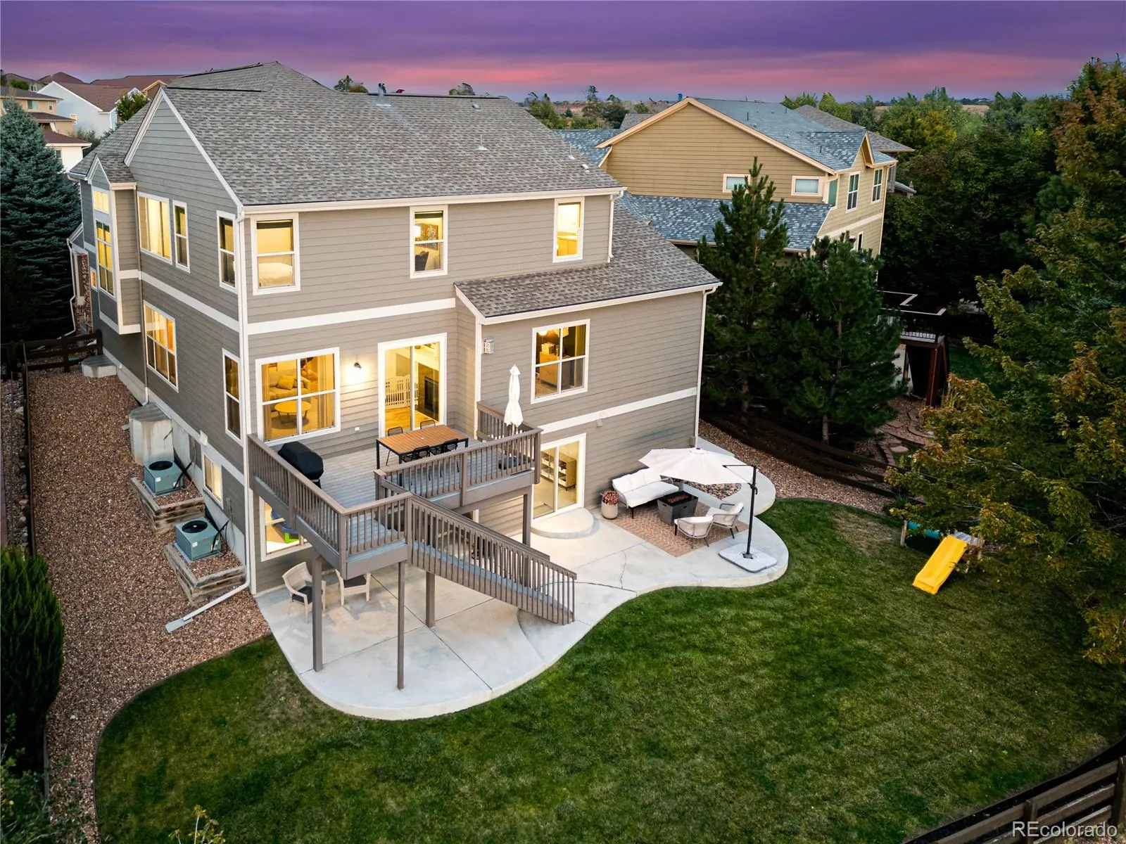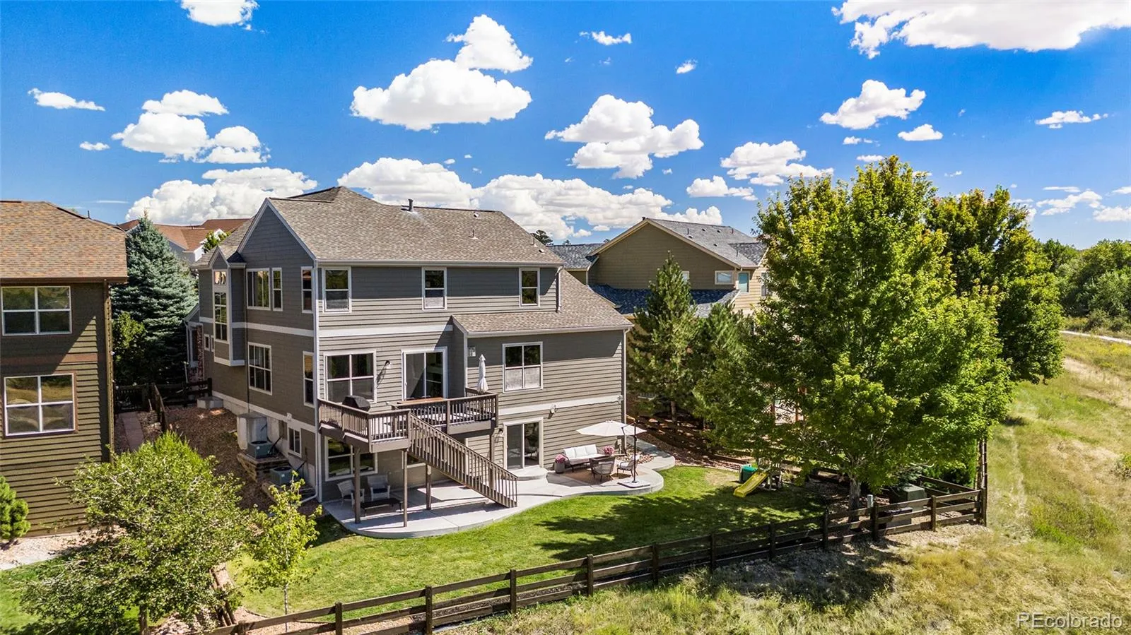 Looking for open space and stunning mountain views? This home has both! Perfectly positioned on a quiet cul-de-sac in the highly desired Idyllwilde community of Parker, this spacious two-story features a walkout basement backing to open space with unobstructed Front Range views, offering privacy and Colorado living at its best. Idyllwilde offers miles of trails connecting to Cherry Creek Trail, a clubhouse with fitness center and pool, Fika Coffee House, and community parks and playgrounds—all just minutes from downtown Parker, shopping, dining, and top-rated Douglas County schools. Inside, the main level features 10’ ceilings, expansive windows, and beautiful flooring that fill the home with natural light. The chef’s kitchen includes granite countertops, new GE Café appliances, a gas stove with double oven, rich cabinetry, abundant storage, and a large peninsula with bar seating. A passthrough fireplace connects the family room and office, while the formal dining area doubles as space for holiday gatherings, a playroom, or home office. A casual dining nook adds everyday convenience, and new Anderson sliding doors open to the raised deck for breathtaking sunsets. A front living room and laundry with built-in shelving and garage access complete the floor. Upstairs, the primary suite is a retreat with mountain views, vaulted ceilings, two walk-in closets with custom shelving, and a five-piece bath with new tile shower surround, while three additional bedrooms and two full bathrooms complete the level. The finished walkout basement adds versatility with a media area, wet bar, bedroom, bathroom, workout space, and storage. Outdoor living shines with a covered front porch, raised deck, shaded patio, and landscaped yard. Additional features include a three-car tandem garage, updated carpet, fresh paint, a roof only 5–6 years old, and water softener with reverse osmosis system. Buyers will also enjoy peace of mind with two brand-new HVAC systems installed prior to closing.
