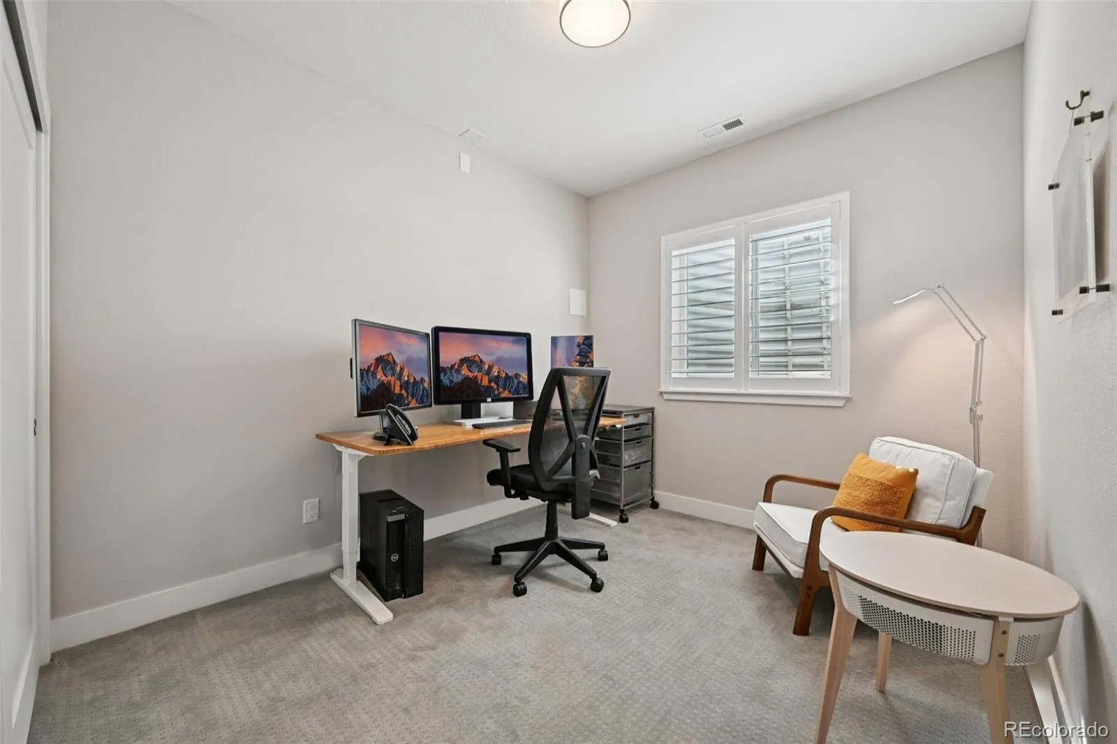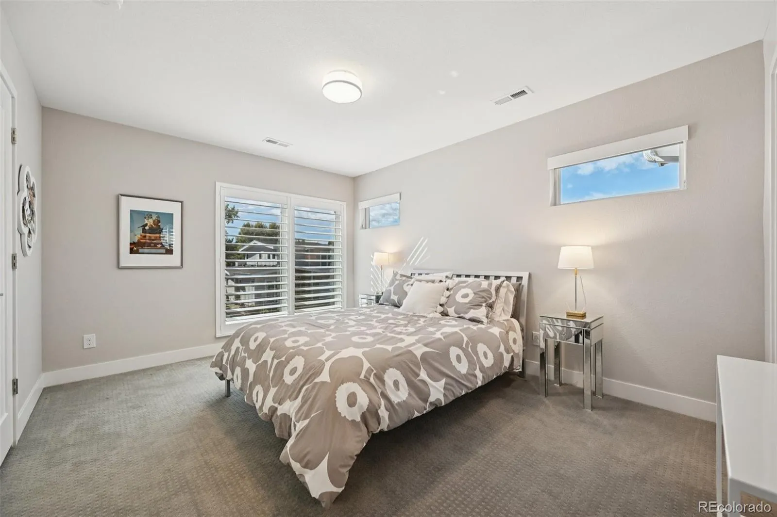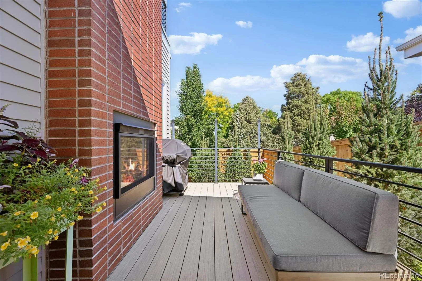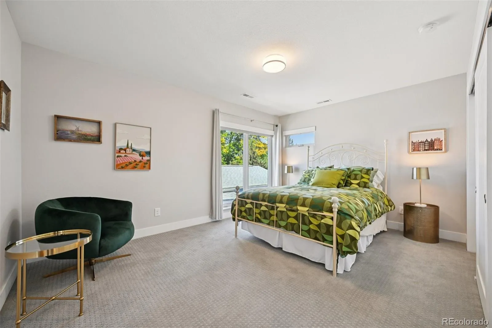 Tucked within the Harlan Pines enclave of just nine homes, this mid-century modern residence highlights timeless architecture alongside thoughtful modern updates. It represents one of the newest construction in the area—a rare opportunity to own a home that combines striking design with an unmatched location. Inside, soaring ceilings, oversized windows, and a floating staircase make a memorable first impression while filling the home with natural light. Newly installed plantation shutters throughout add a refined touch and privacy. The chef’s kitchen features quartz countertops, soft-close cabinetry, and high-end appliances including a Bosch refrigerator and dishwasher, plus a Thermador oven and induction cooktop. Just beyond the kitchen, the open living area centers around a dramatic two-sided fireplace that extends outdoors for year-round enjoyment. The main-floor primary suite serves as a private retreat with double custom closets and a five-piece ensuite. A dedicated office on the main level and half bathroom adds convenience, while upstairs you’ll find a versatile loft that opens to a rooftop deck—an inviting spot for enjoying morning coffee or sunsets. Two additional bedrooms share a stylish Jack-and-Jill bathroom. The finished basement extends the living space with a large family room, an expansive gym with padded flooring, plus an additional bedroom and full bathroom ideal for hosting guests. The backyard has been designed for low-maintenance living, featuring a deck for entertaining, professional landscaping, and a newly installed privacy fence. With quick access to Hwy 285, you are minutes from both downtown Denver and the mountains. Several well-known schools such as Colorado Academy and Mullen are close by, as well as shopping, dining, and scenic walking and biking trails to enjoy Colorado living at its finest. Don’t miss your chance to call this one home!
