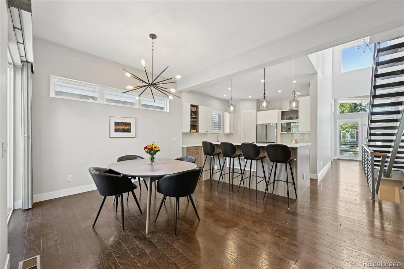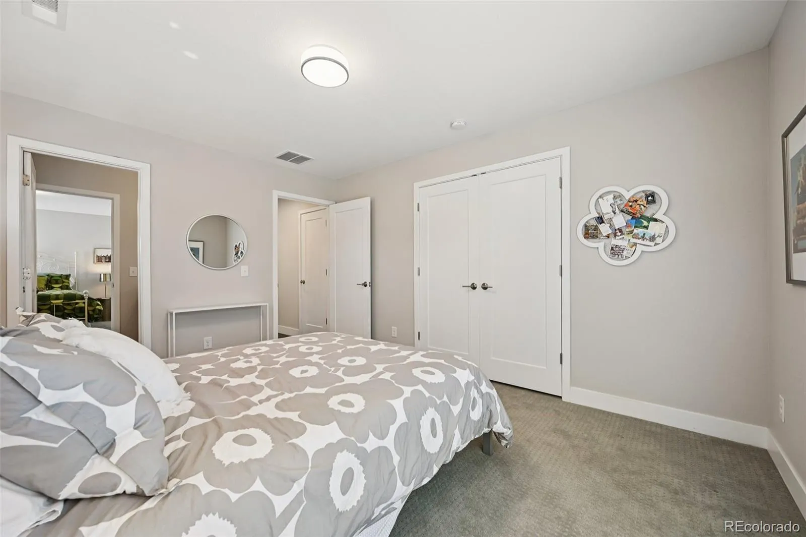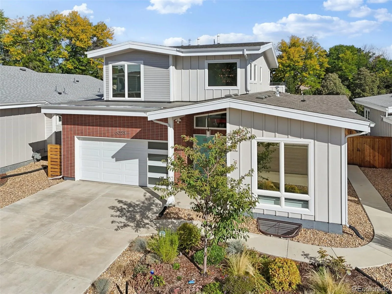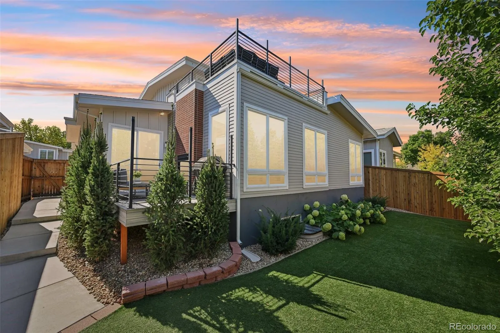 Tucked within the Harlan Pines enclave of just nine homes, this mid-century modern residence highlights timeless architecture alongside thoughtful modern updates. It represents one of the newest construction in the area—a rare opportunity to own a home that combines striking design with an unmatched location. Inside, soaring ceilings, oversized windows, and a floating staircase make a memorable first impression while filling the home with natural light. Newly installed plantation shutters throughout add a refined touch and privacy. The chef’s kitchen features quartz countertops, soft-close cabinetry, and high-end appliances including a Bosch refrigerator and dishwasher, plus a Thermador oven and induction cooktop. Just beyond the kitchen, the open living area centers around a dramatic two-sided fireplace that extends outdoors for year-round enjoyment. The main-floor primary suite serves as a private retreat with double custom closets and a five-piece ensuite. A dedicated office on the main level and half bathroom adds convenience, while upstairs you’ll find a versatile loft that opens to a rooftop deck—an inviting spot for enjoying morning coffee or sunsets. Two additional bedrooms share a stylish Jack-and-Jill bathroom. The finished basement extends the living space with a large family room, an expansive gym with padded flooring, plus an additional bedroom and full bathroom ideal for hosting guests. The backyard has been designed for low-maintenance living, featuring a deck for entertaining, professional landscaping, and a newly installed privacy fence. With quick access to Hwy 285, you are minutes from both downtown Denver and the mountains. Several well-known schools such as Colorado Academy and Mullen are close by, as well as shopping, dining, and scenic walking and biking trails to enjoy Colorado living at its finest. Don’t miss your chance to call this one home!