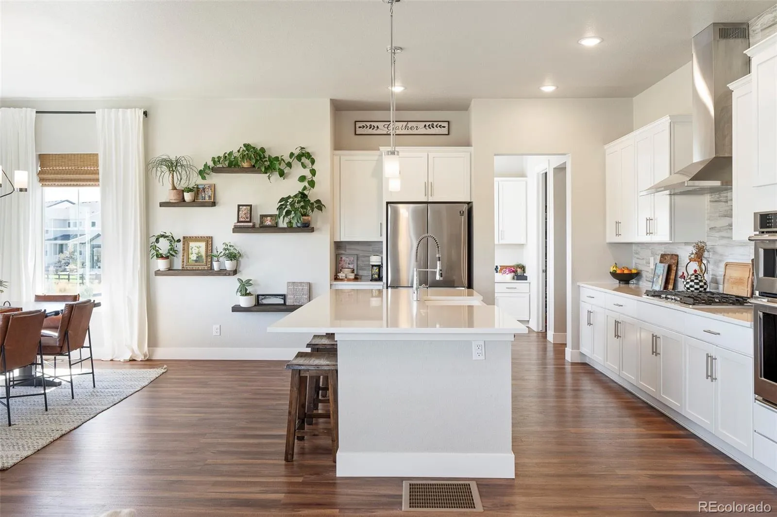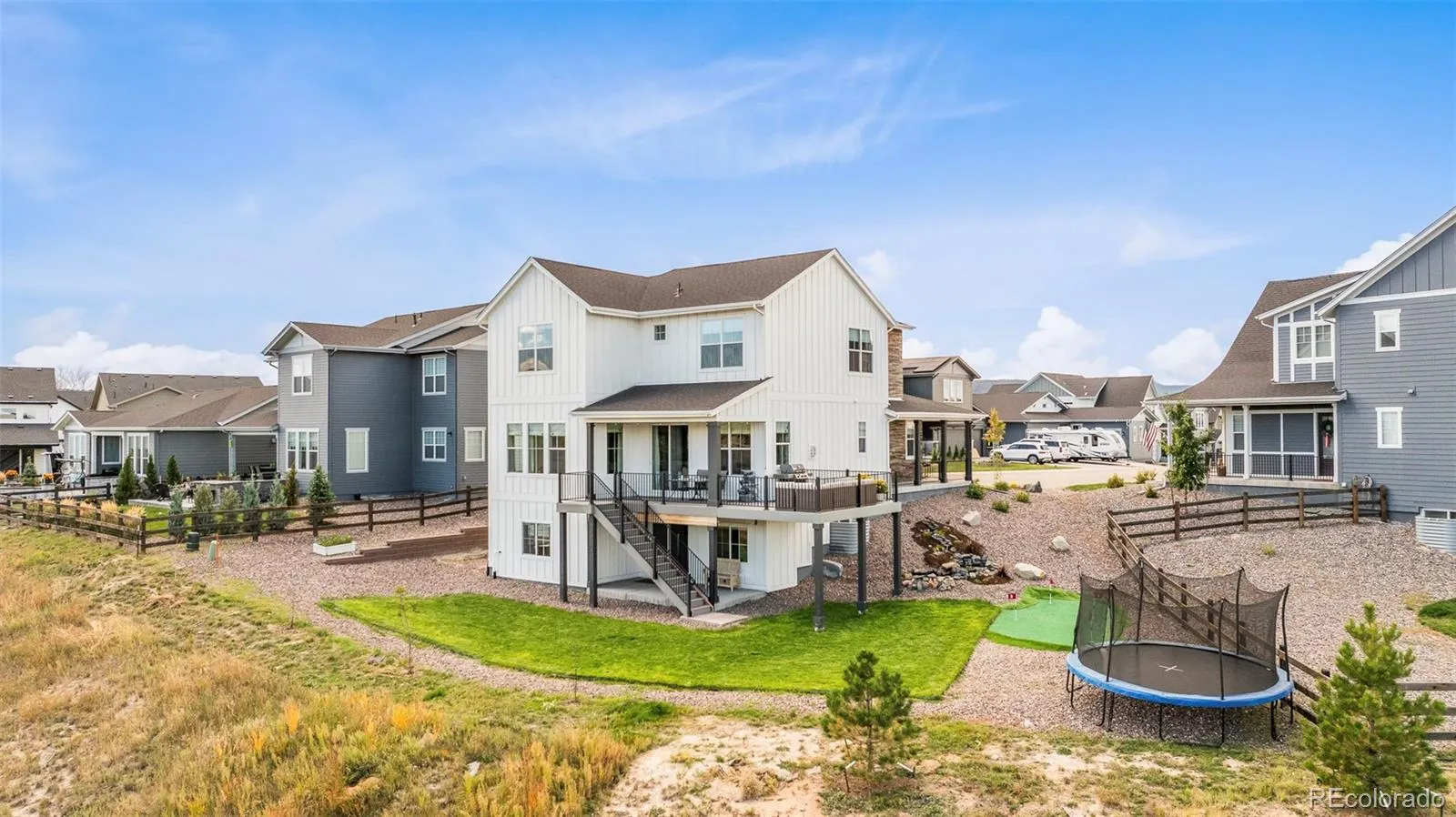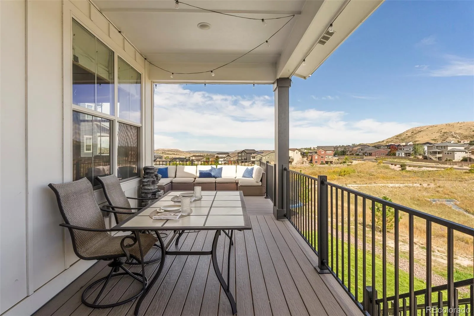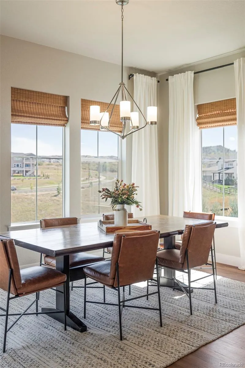 Poised on a premier lot in Castle Rock’s sought-after Vista at Montaine community, this stunning home showcases sweeping views and luxurious indoor-outdoor living. A welcoming covered front porch opens to a bright main-floor office and an inviting living room anchored by a floor-to-ceiling stacked stone fireplace. The gourmet kitchen showcases a center island with a farmhouse sink, a gas range, a sizable pantry and an adjacent dining area framed by large windows. Sliding doors lead to an expansive deck overlooking a pond, putting green and Castle Rock’s iconic star during the holidays. Upstairs, a versatile loft complements the vaulted primary suite with its spa-like bath featuring a soaking tub and walk-in shower. The finished walkout basement extends entertaining with a recreation area, wet bar, and guest bedroom and bath. With upgrades throughout, a three-car epoxy-coated garage, mudroom with built-ins and an electric fence, this residence fuses refined design with everyday functionality.