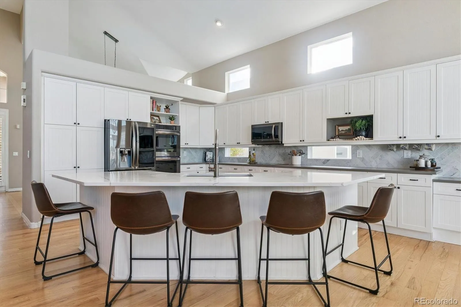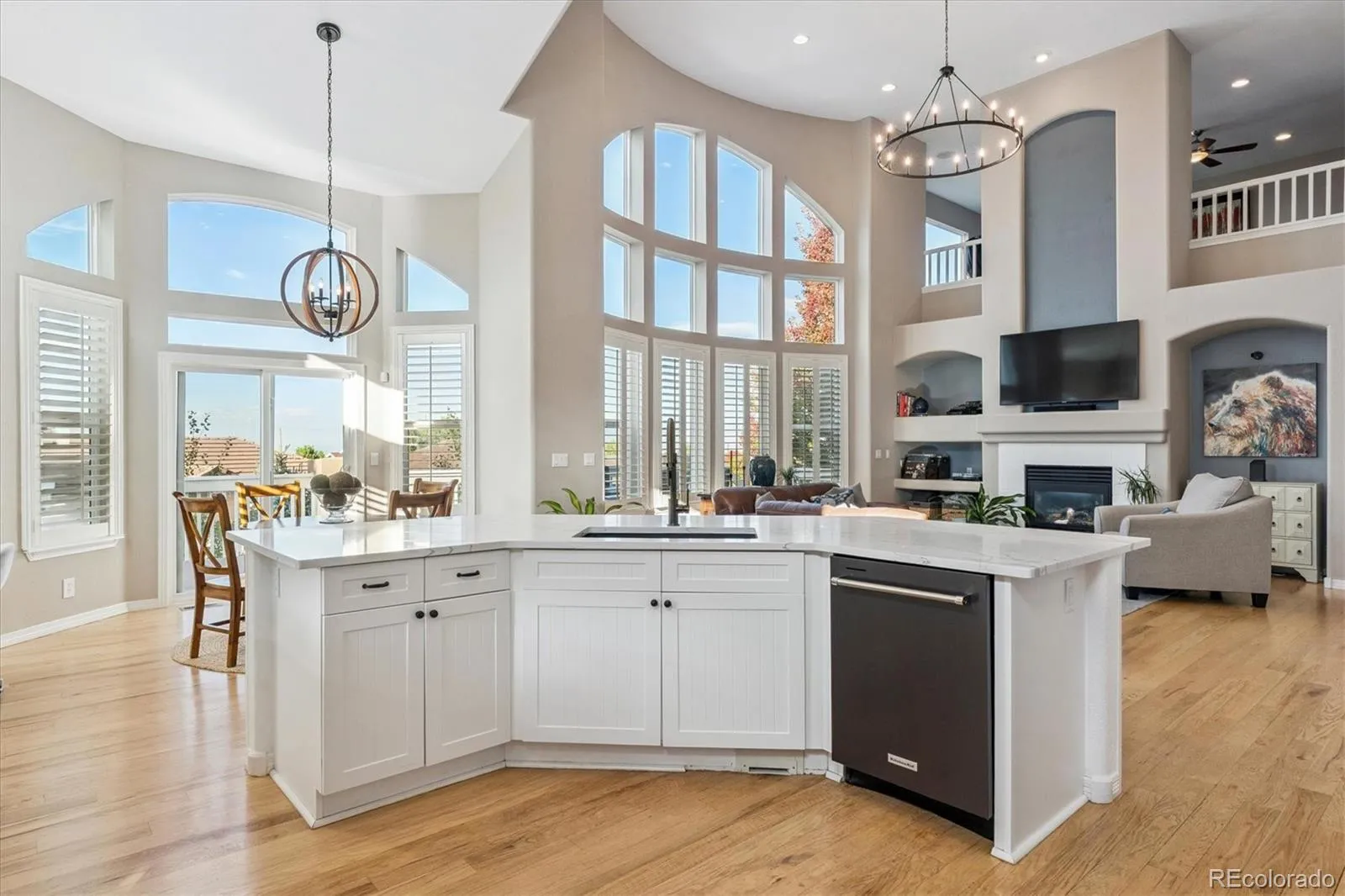 Step into your dream home, perfectly set on a quiet cul-de-sac, where modern comfort meets with panoramic views of the mountains, city skyline, and Tech Center! With 6 bedrooms, 5 baths, and almost 5,500 square feet of beautifully updated living space, this home blends comfort, elegance, and versatility. The main floor welcomes you with vaulted ceilings, wide plank hardwood floors, and an airy open layout. The gourmet kitchen shines with new stainless steel appliances, sleek countertops, a stylish backsplash, ample cabinet space, and an island with bar seating. The adjoining family room features soaring ceilings and a cozy fireplace, flowing effortlessly onto a large deck perfect for summer fireworks and sunset watching. The main-level primary suite is your own sanctuary, with a fully remodeled five-piece bath featuring a two-person soaking tub, walk-in shower, and a spacious closet. Upstairs, you’ll find three more bedrooms, including a Jack-and-Jill setup with double sinks, a beautifully remodeled full bath, and a massive loft with postcard-worthy views. The walk-out basement is a showstopper with its own kitchenette, great room with fireplace, media area, en-suite guest bedroom, a gym-ready sixth bedroom, second laundry room, and plenty of storage. Step outside to a covered patio and a large yard filled with mature trees—ideal for relaxing or entertaining. Other highlights include a 3-car garage with new smart doors, a new furnace and central A/C installed in 2024, resurfaced deck in 2023, 90% new windows and sliders, central vacuum, newer exterior paint, and a full sprinkler system. Just moments from scenic open space, this home has everything you’ve been looking for—and more.