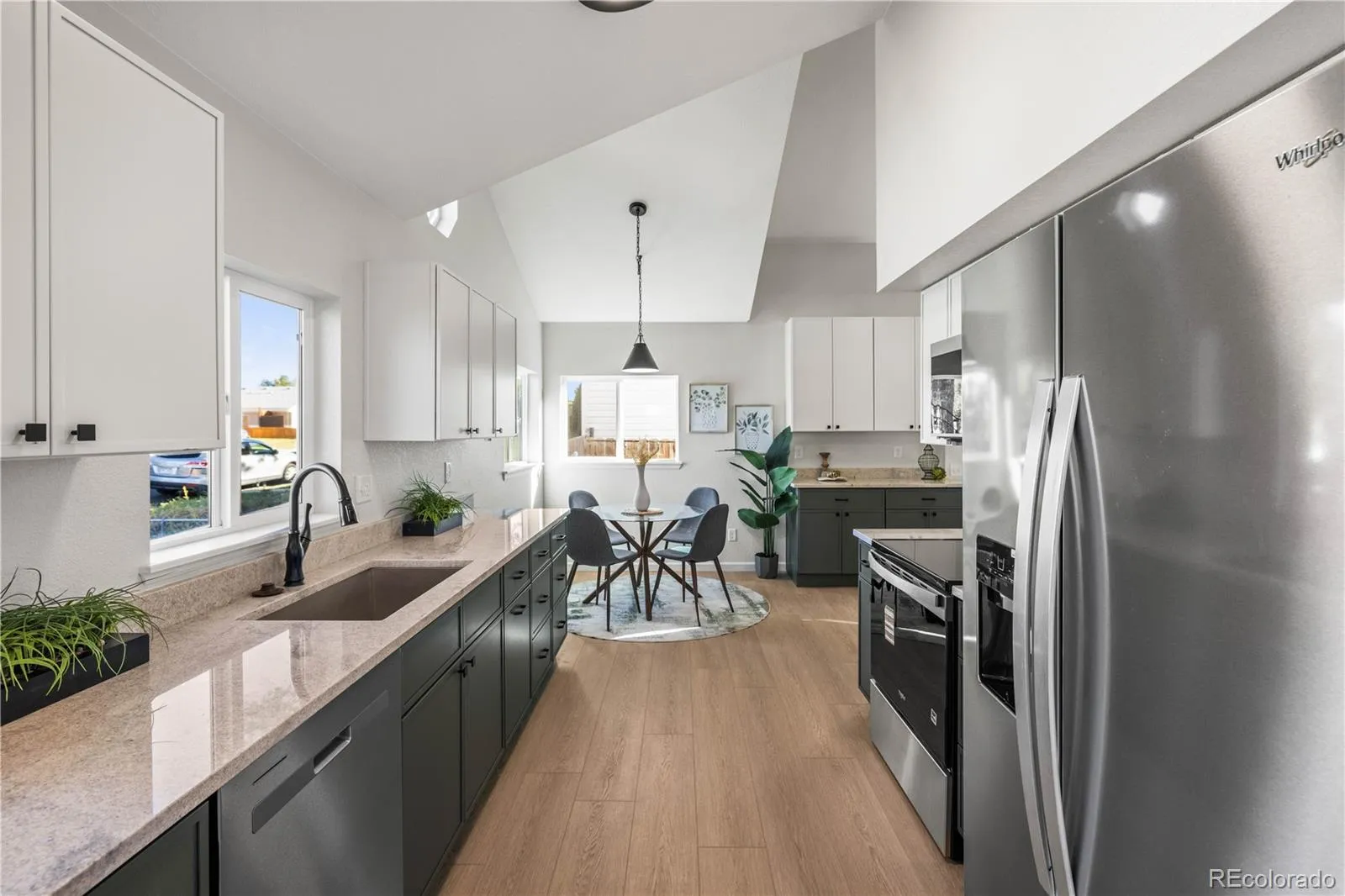 Step into this beautifully updated, spacious 3 Bedroom, 3 Bathroom Home where every major system and surface has been refreshed in 2025. Enjoy peace of mind with a brand-new Owens Corning roof, Alside windows, a fully upgraded electrical system including new panel with GFCI breakers, and all-new Delta plumbing fixtures. Comfort comes easy with a new Trane furnace and Trane heat pump/A/C for efficient heating and cooling. Inside and out, this home shines with fresh paint, Shaw luxury vinyl plank flooring, new carpet, and a complete Whirlpool appliance package in the updated kitchen to compliment the Granite countertops and Highland cabinets. Exterior improvements include updated fencing and a partial retaining wall, adding function and curb appeal. With every detail thoughtfully addressed—from mechanicals to finishes—this home is truly move-in ready, combining modern comfort with lasting quality. Less than 1.5 miles to Sloans Lake and restaurants like Cholon, Gusto, the Patio, Odell’s Brewing. Next to 6th Avenue with quick access to the mountains and Interstate 25. Less than a mile to the Perry Lightrail Station. A garage could be added to the back of the home, inquire with Listing Agent for more information. LOWEST PSF FINISHED in Villa Park! Don’t miss out on this great home! View the video tour here: https://www.youtube.com/shorts/OK5DjvSLQL4