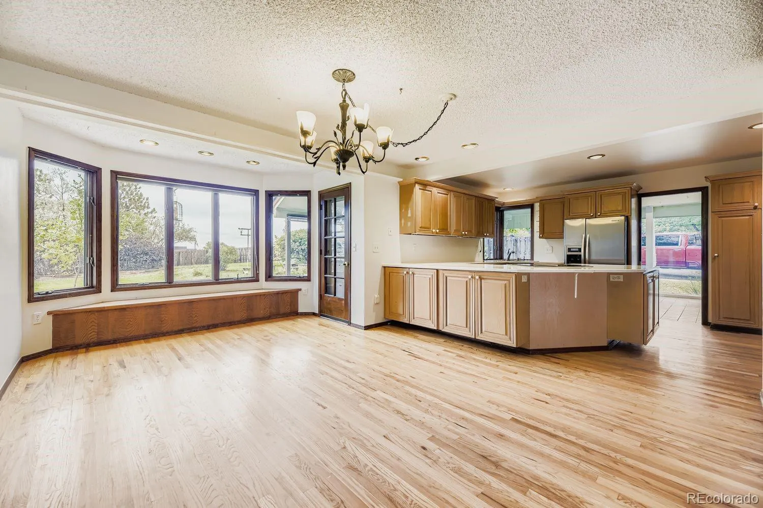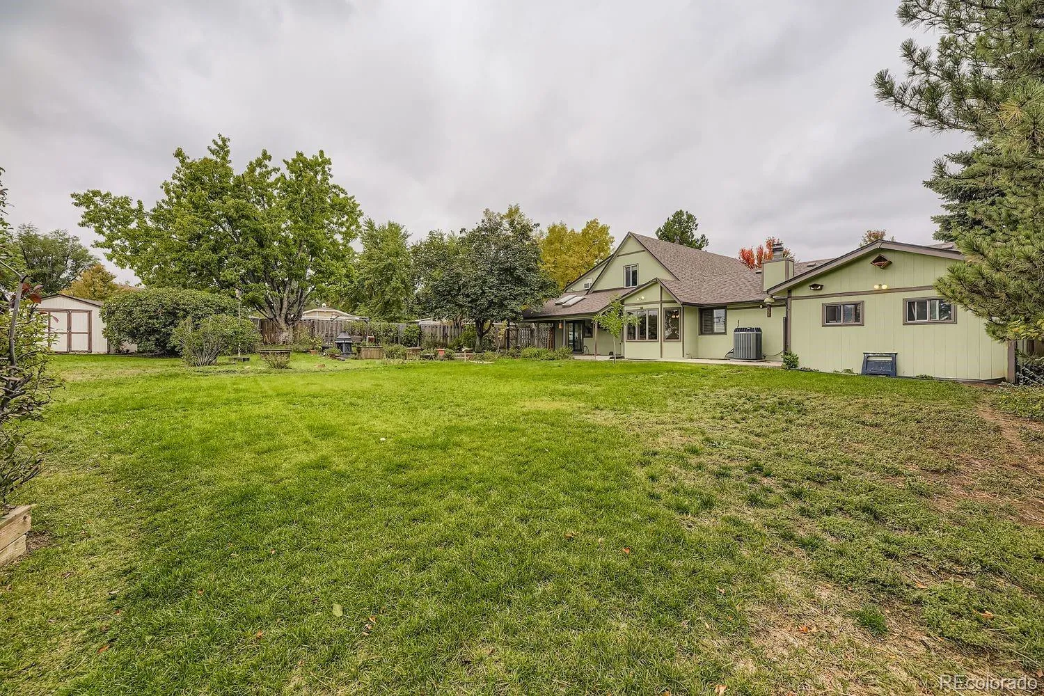 Great Opportunity in a well-established neighborhood. Almost 3,000 Sq Ft of living space!! One of the largest lots in Columbine West that backs up to undeveloped land. Fantastic location with easy access to shopping, dining and recreation. Main Floor Primary Bedroom and Laundry make one-level living easy. Additional Bedrooms upstairs share a Full Bath. Newer Roof, mature landscaping and tons of storage space including a couple of crawl spaces and a Workshop attached to the back of the Garage. Relax in the private & peaceful back yard under the Covered Patio.