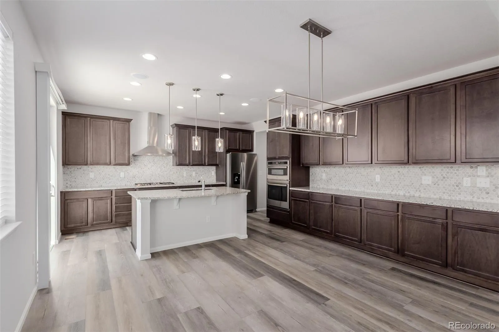 Inside, soaring ceilings, abundant natural light, and a warm neutral palette create an inviting atmosphere. Thoughtful details like soft carpet, luxury vinyl plank flooring, and a cozy fireplace in the family room set the stage for both relaxation and entertaining. Gather in the formal living room or savor time together in the gourmet kitchen featuring granite counters, a designer tile backsplash, high-end stainless steel appliances, and an oversized island perfect for casual dining and conversation.