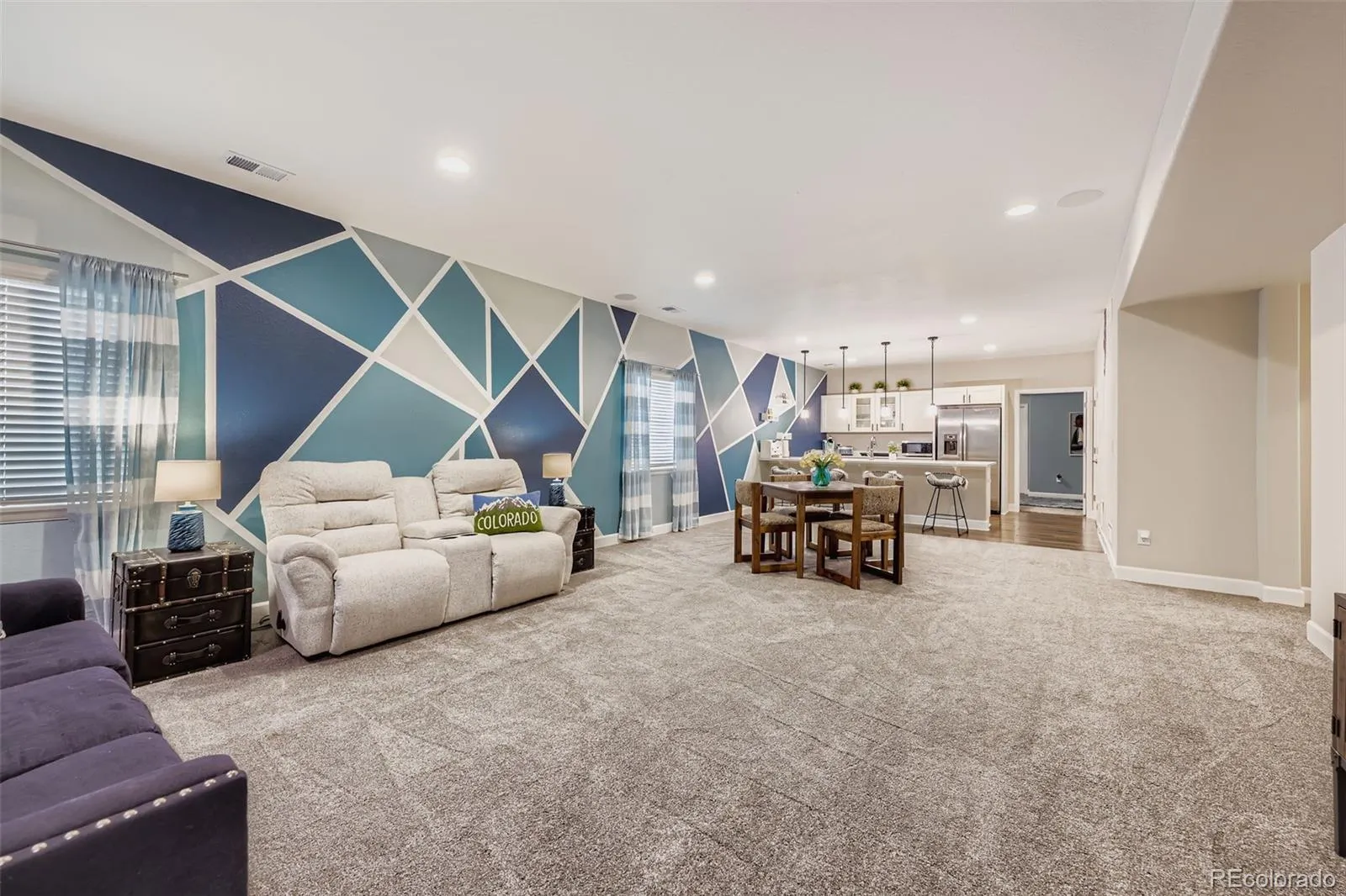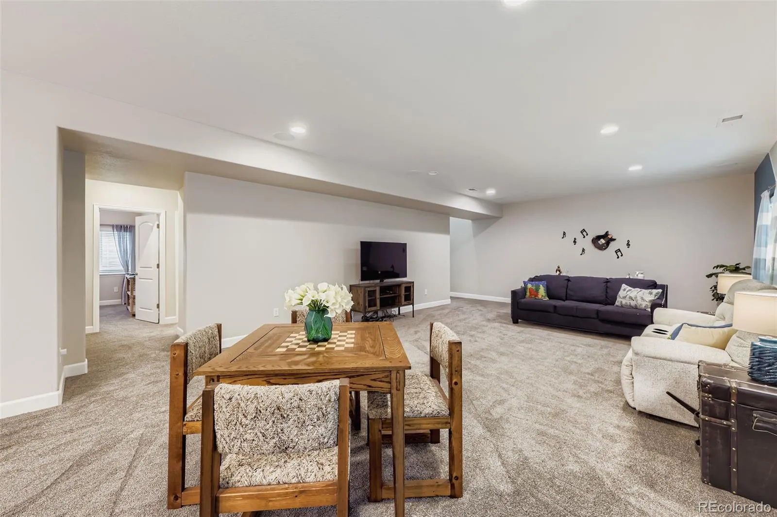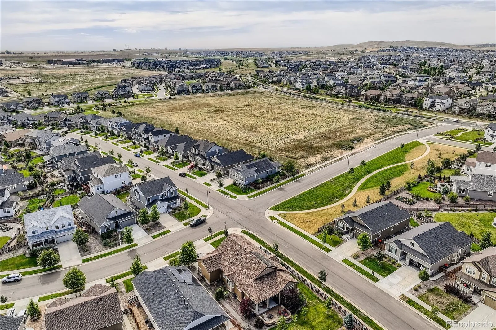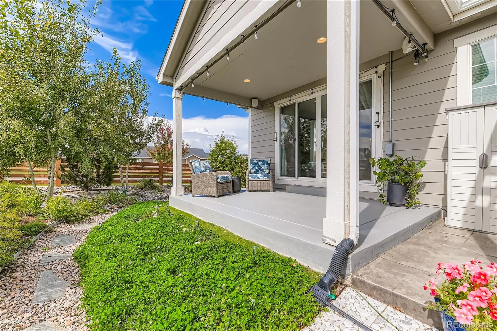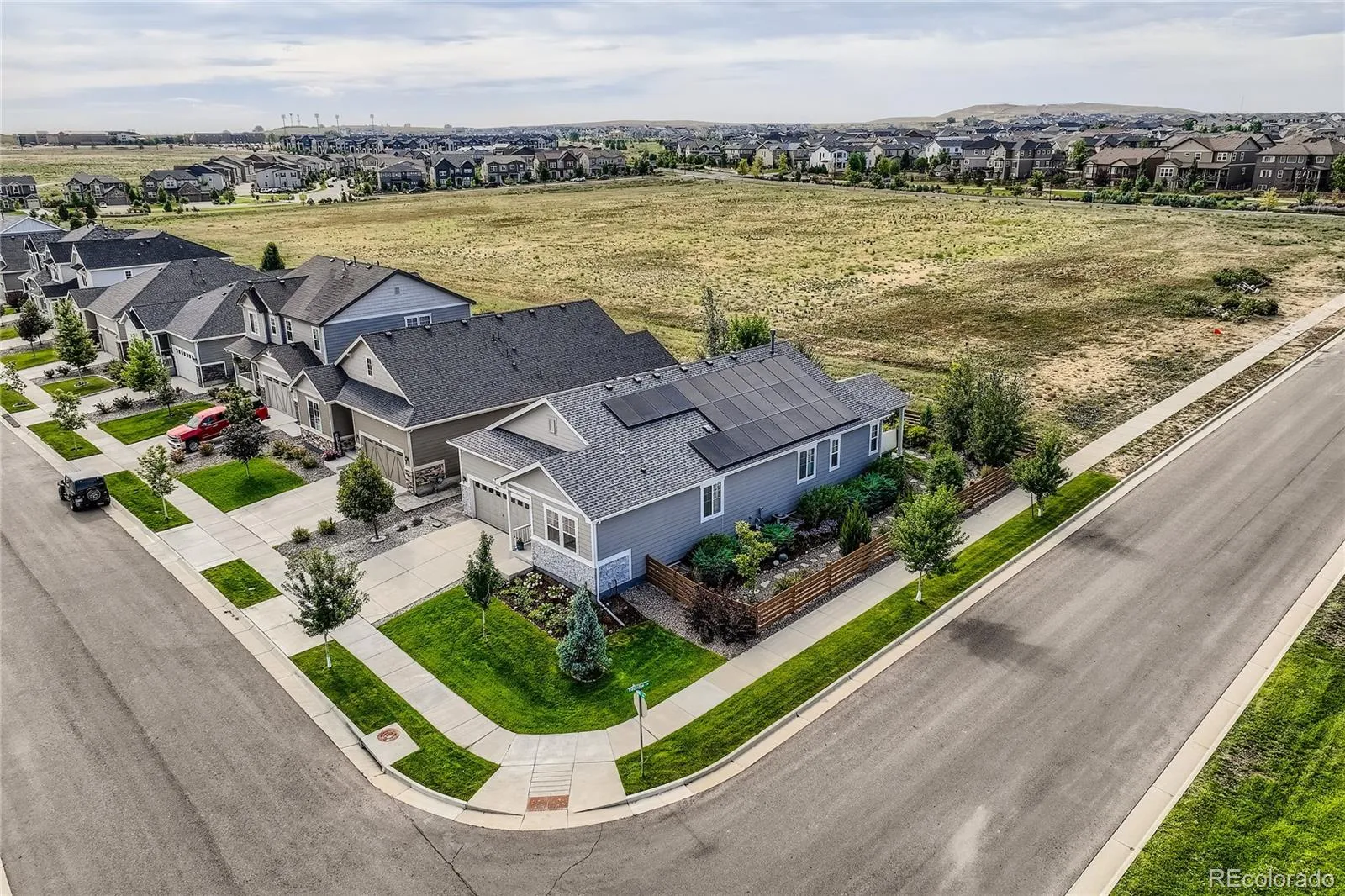 Welcome to this exceptional and nearly-new ranch located on a premium corner lot in Collier Hills offering unparalleled privacy with no homes directly behind (land scheduled for an elementary school). Meticulously constructed, this residence incorporates nearly every available builder upgrade and is offered at a significant value, priced well below new construction. The home is further enhanced by the seller’s addition of a fully paid for active solar system ensuring low utility bills. The upgraded gourmet kitchen is a chef’s dream, featuring an expansive center island, solid wood cabinetry, top-of-the-line appliances, quartz countertops, and large pantry. Flowing seamlessly from the kitchen the living room offers a stylish tile fireplace, integrated surround sound, and direct access to your private outdoor oasis: a 2-tier covered patio with pergola and a vibrant xeriscaped yard showcasing over 100 native perennial flowering plants and bushes. The oversized primary suite is a retreat with a coffered ceiling, spacious walk-in closet, and an upgraded 5-piece deluxe bath with a separate soaking tub and shower. Two additional main-floor bedrooms offer flexibility, with one perfectly suited as a study/home office. A convenient large main-floor laundry/mud room offers one level living with the washer and dryer being included. The finished basement offers a remarkable secondary living space with 9-foot ceilings, a large wet bar designed like a full kitchen (with quartz counters and extensive cabinetry), a spacious recreation room with surround sound, two additional bedrooms, and a versatile exercise/hobby room. The finished two-car garage features a 220-volt Powerhub for convenient electric vehicle charging, epoxy floor and additional storage space. Throughout the home you’ll find engineered wood floors, upgraded carpet, quartz countertops, and more. A dream home move in ready. Colliers Hill is a planned community with pools, clubhouse, parks, playgrounds, and trails.