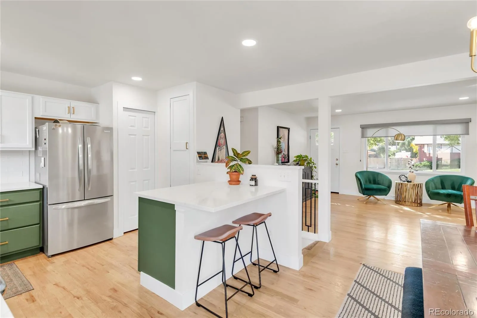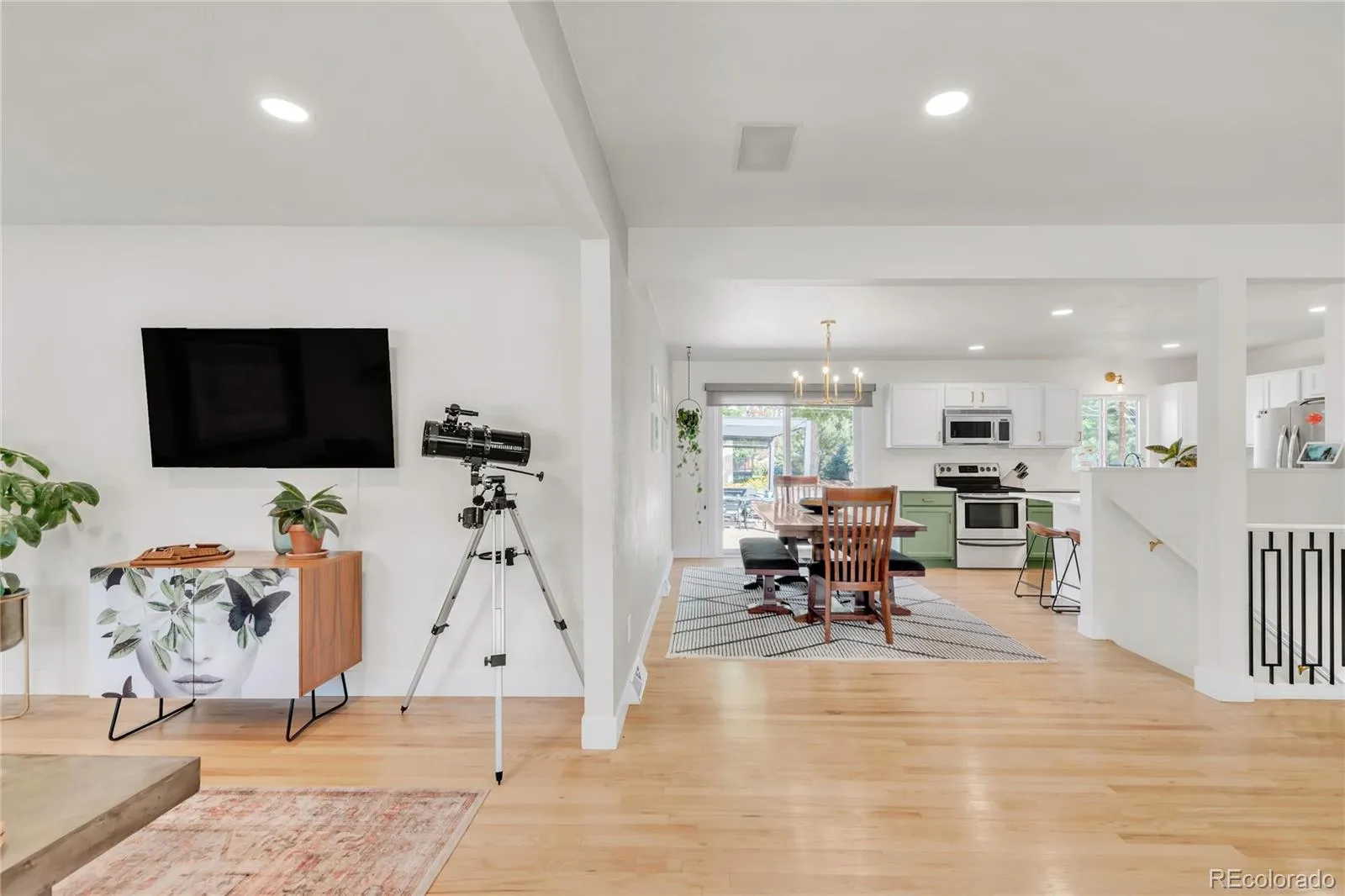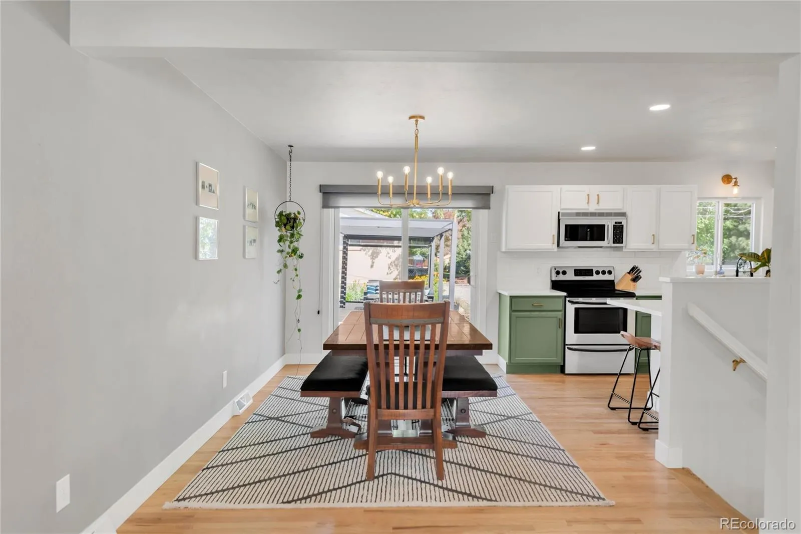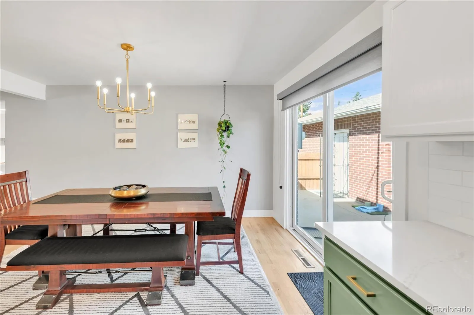 Just off the dining area, you’ll find a sliding door that opens to a spacious backyard patio adorned with a charming pergola. This outdoor space extends your entertainment options and provides a perfect backdrop for summer gatherings or quiet evenings on perfect Colorado summer nights.