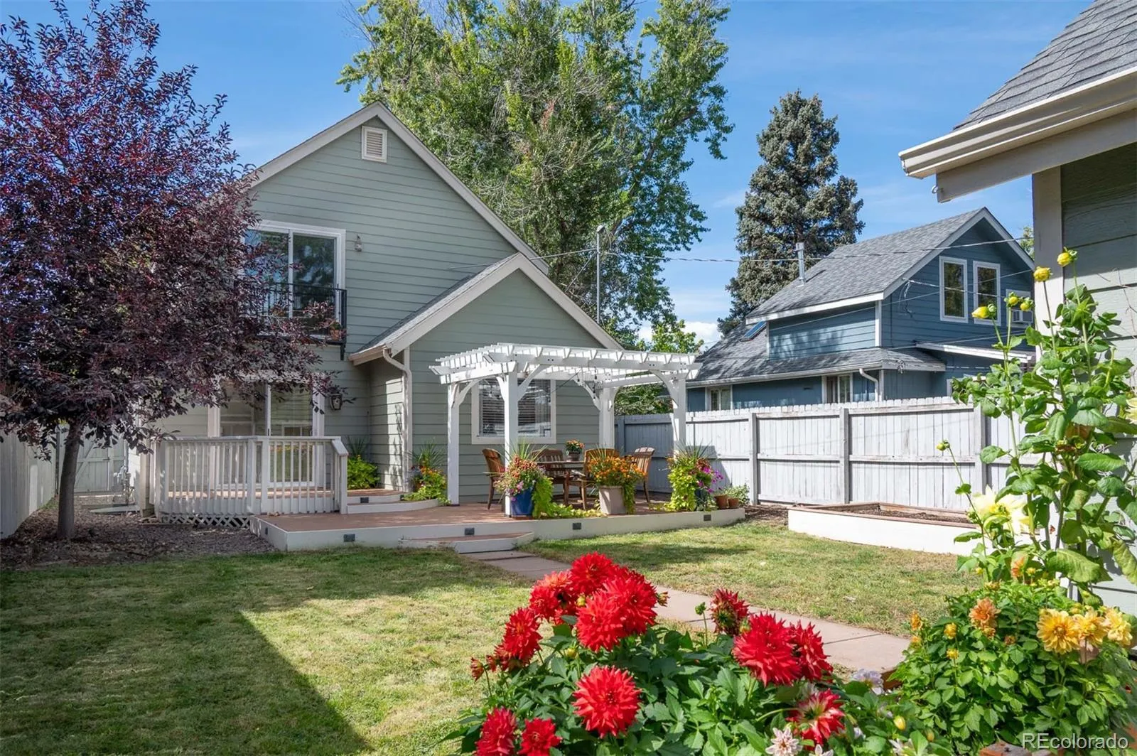 Style, light, and location are the hallmarks of this delightful story and a half cottage situated a block and a half from gorgeous Harvard Gulch Park, and mere blocks to the restaurants, coffee shops and stores on South Downing St. and Platt Park. You’ll be smitten with its bright and open floor plan, vaulted ceilings, and skylights that create a warm and welcoming ambiance. Newly refinished hardwood floors run throughout the main floor which includes open Living and Dining areas and a fantastic, well designed Kitchen featuring granite countertops and stainless appliances. There are also two spacious bedrooms on the main floor, one with added built-ins that makes a perfect office. The upstairs is dedicated to a peaceful Primary Suite with a five piece Primary Bathroom and walk-in closet. The fully finished basement is a great hangout for guests with a true Bedroom with egress, a great three quarters Bathroom, and cozy Family/Entertainment Room. This home has such a great layout. Outside, lovely native plant, water-wise landscaping contributes to the exceptional street presence of this darling home, and the large and private back yard with it’s fabulous two-tiered deck, pergola, and raised planters for gardening is the piece de resistance. The perfect amount of space, inside and out. An oversized two car garage is the cherry on top. New carpet throughout as well. Voila!
