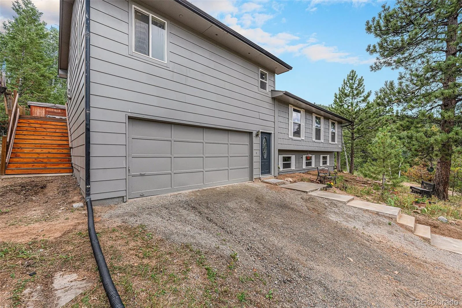 Opportunity Knocks! After repaired value of about $900k. Estimate of repair about $150k. Customize your dream home for below market value! Assumable Loan at an Ultra-Low 2.25% Interest Rate. Experience privacy, space, and modern comfort with this 3-bedroom, 3-bathroom mountain home plus dedicated office—set on over 5 acres just off Highway 285 and only 30 minutes from Denver. Enjoy easy access to public parks, open space, and scenic trails while living in a true mountain retreat. The home features a spacious upper-level primary suite with a fully updated ensuite bathroom, complete with a jetted tub, separate shower, and dual sinks. French doors open to a private deck and hot tub, the perfect place to unwind. The main level offers two additional bedrooms, a fully remodeled full bath, a cozy family room with large picture windows, and an updated kitchen with modern finishes and functional layout. A wood-burning stove adds warmth and charm—ideal for staying comfortable during the winter months. The garden level includes a large bonus room that can serve as a second living area, game room, or workout space, along with a separate office and another recently remodeled bathroom. Additional features include an electric hookup for a generator (generator negotiable) and plenty of room for horses, outbuildings, or recreational use. A rare opportunity to own a move-in-ready mountain property with tasteful updates, outdoor access, and an assumable 2.25% interest rate, schedule your showing today!
