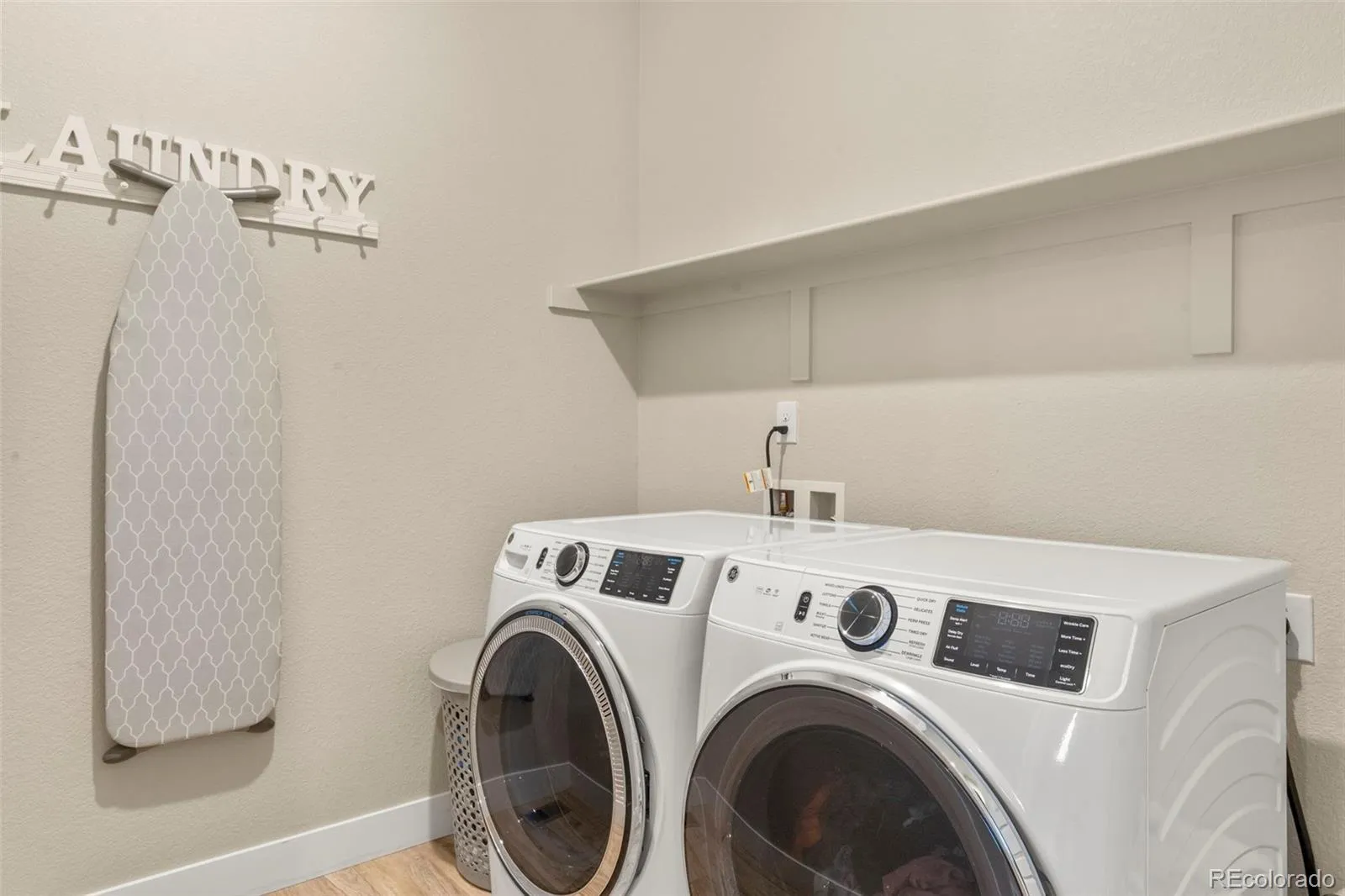 Stunning single-level ranch in Castle Rock’s Macanta community, designed for open living and seamless indoor-outdoor connection. At the heart of the home, a breath-taking open concept kitchen, dining, and living area is filled with natural light from numerous windows, three expansive sliding doors in the dining area, plus an additional set of sliders in the great room. Luxury vinyl plank floors and quartz finishes set the tone, while the gourmet kitchen features GE stainless appliances and a striking backsplash.