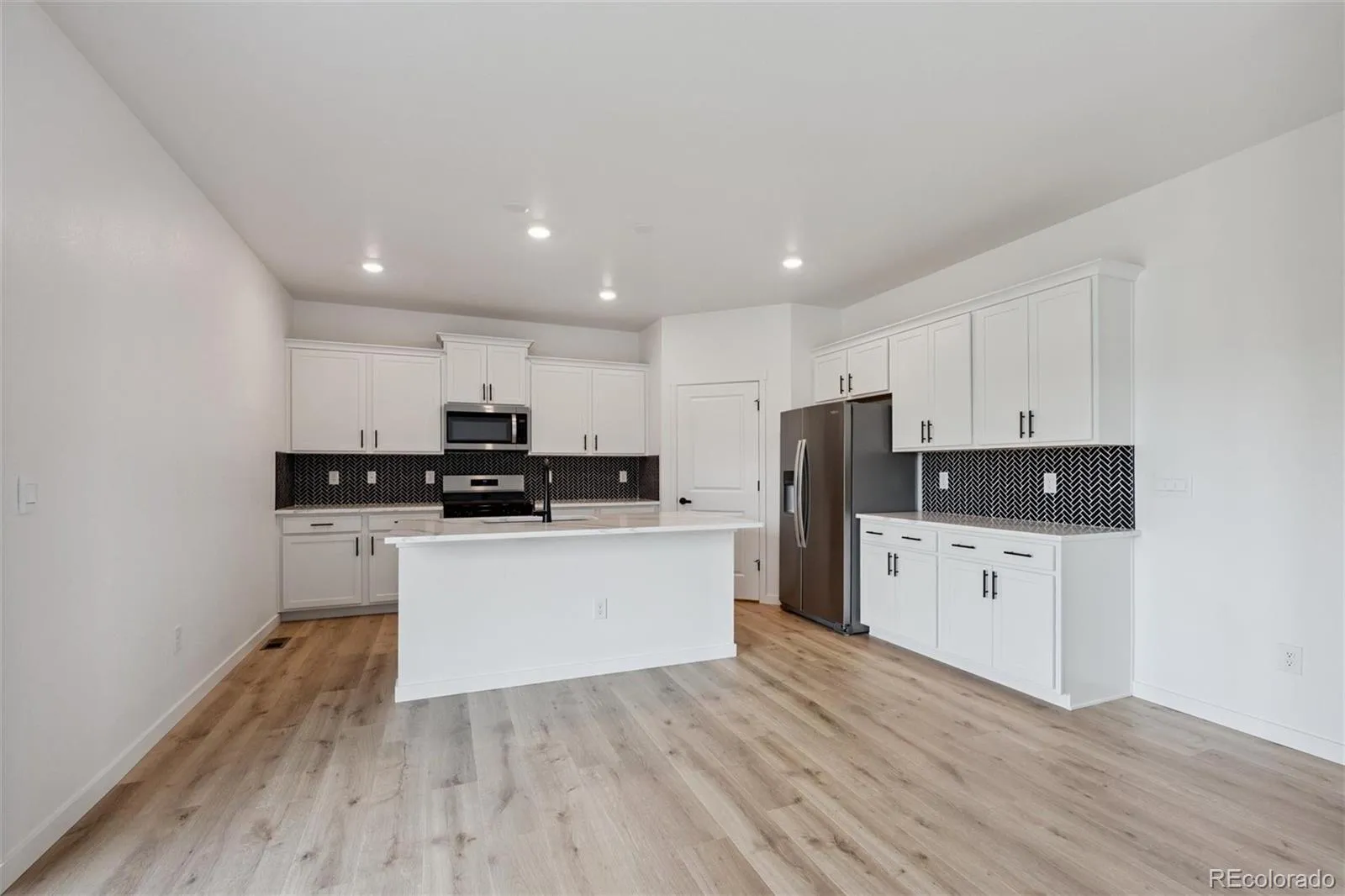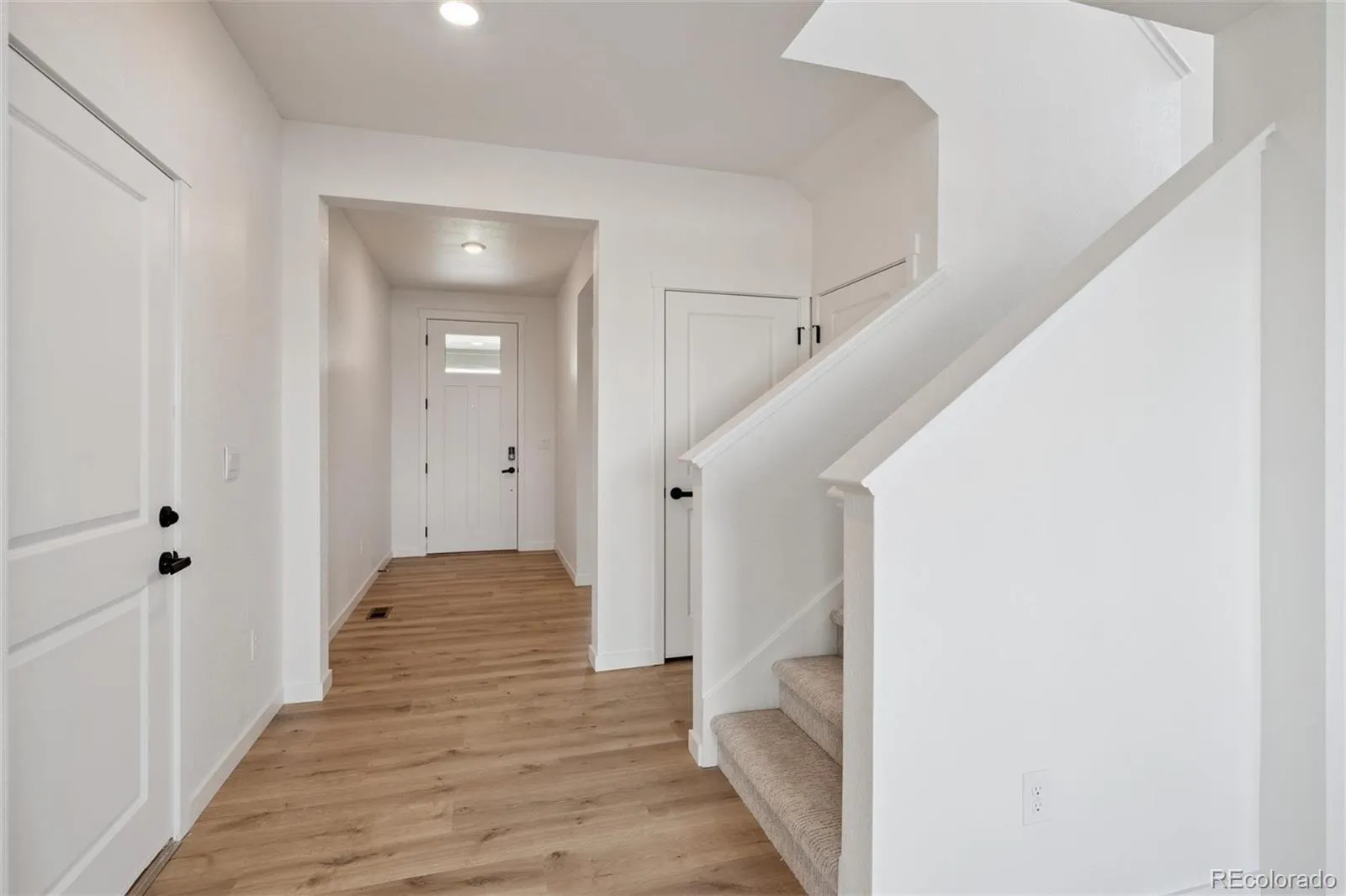 Find all the space you need in the Hennessy floor plan located in Hansen Farm in SE Fort Collins with no Metro District! Inside this inviting 5-bedroom, 4-bath home, you’ll find a loft, walk-in closets and 2,718 sq.ft. of living space. As you enter through the front door you will see a secondary bedroom that can be used as a study or flex space. Continuing down the hallway, you will see the guest bathroom and a coat closet and access to the stairs leading you to the second floor. This open concept floor plan flows seamlessly allowing the heart of the home to feel functional. Step into the great room that features expansive 9′ level ceilings. Homeowners enjoy the design and functionality the kitchen provides from the meal prepping space to the storage space this new home has it all. The kitchen offers premium cabinetry, large counterspace with a sharp Horton E – Modern White interior package, quartz countertops, LUXE kitchen appliances with range hood and gas range along with a large corner pantry. An added bonus is the built-in island that includes the sink and dishwasher, plus the ability to serve as a table or serving area. When it is time to wind down, the upstairs becomes the perfect haven. The laundry room with cabinets is tucked away and close to all the rooms making chores easy. You also find three spacious secondary bedrooms with walk-in closets and one has its own full bathroom. The primary bedroom has plenty of space, a connected bathroom with a double vanity sink, a separate space for the toilet, and a large walk-in closet.***Estimated Delivery Date: November. Photos are representative and not of actual property***